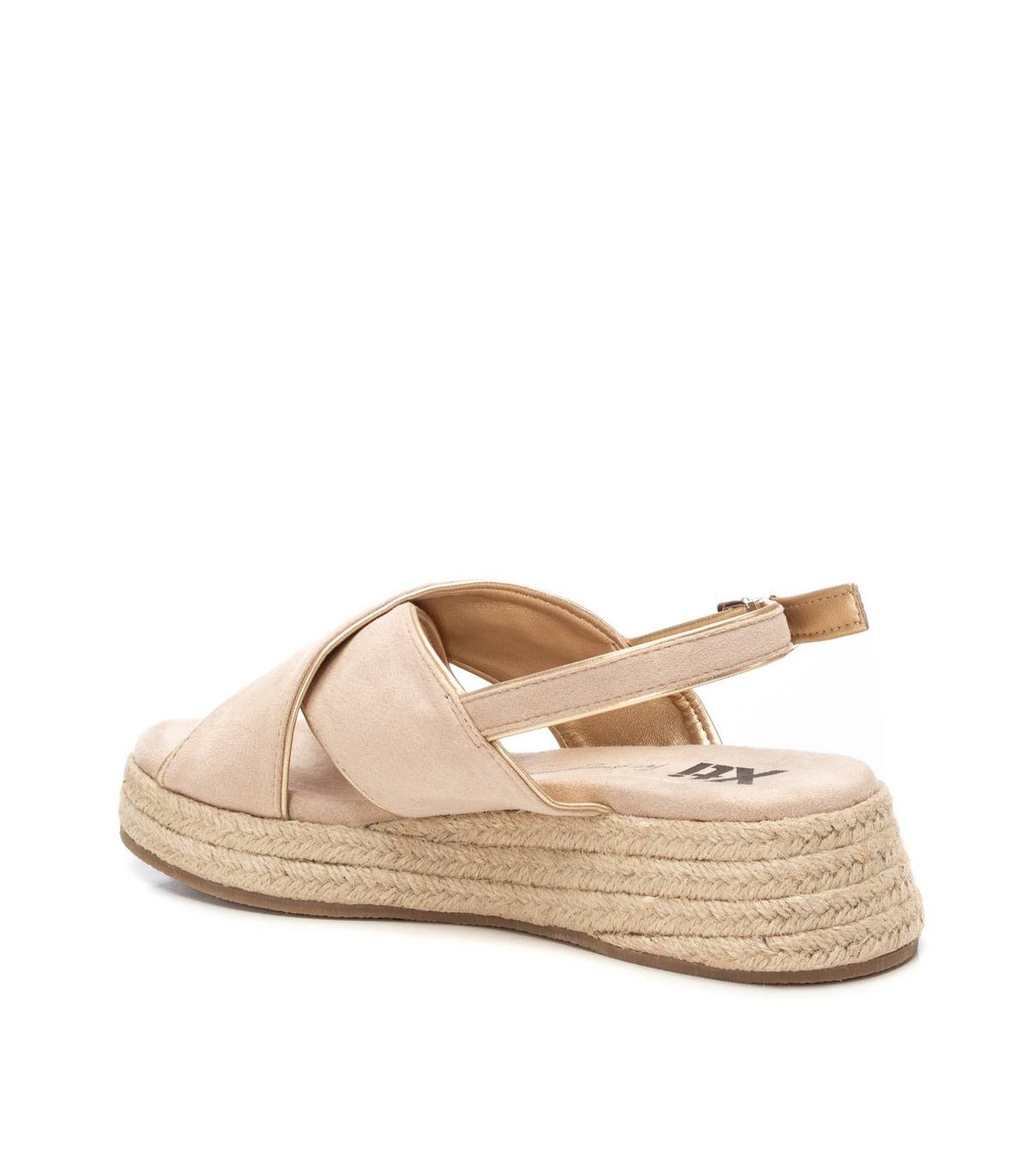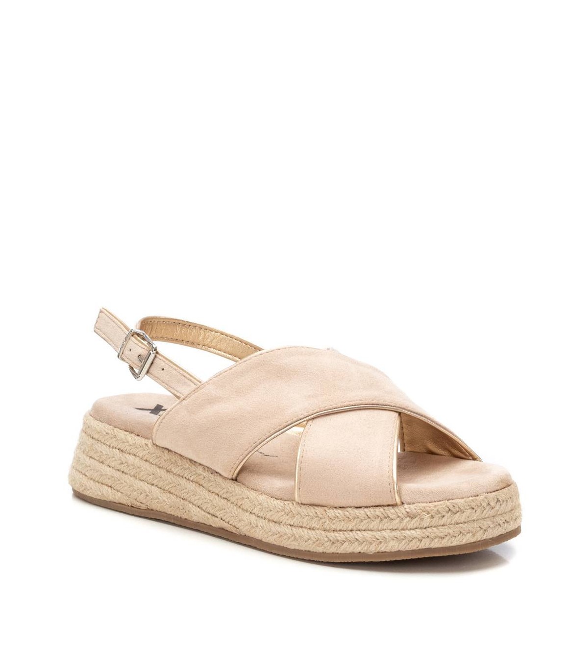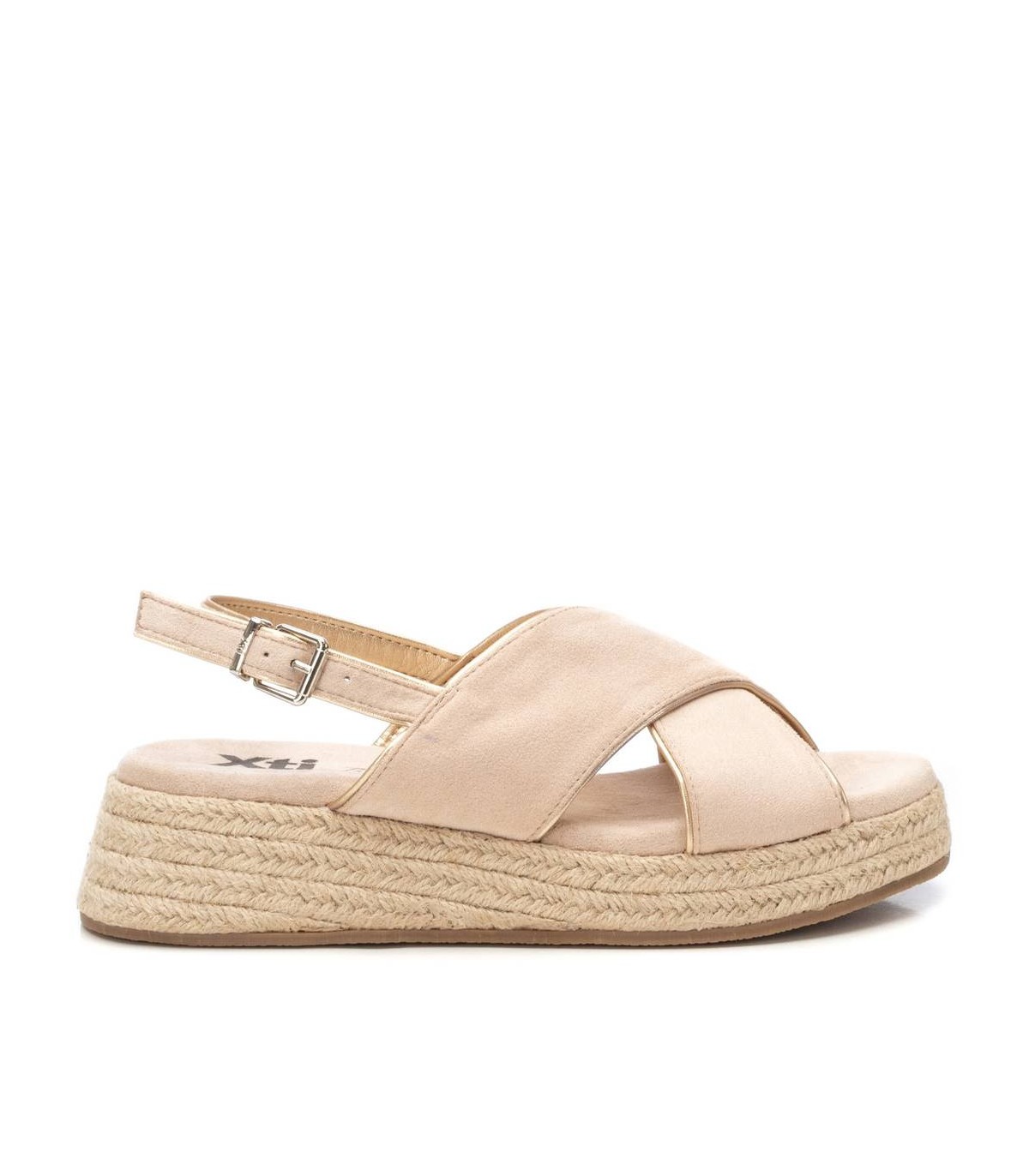 Sandalia de mujer, de la marca Xti Basic. Elegante cruce y pulsera para sujetar al tobillo fabricada en material textil. Bonita cuña recubierta en yute y suela de goma antideslizante.
