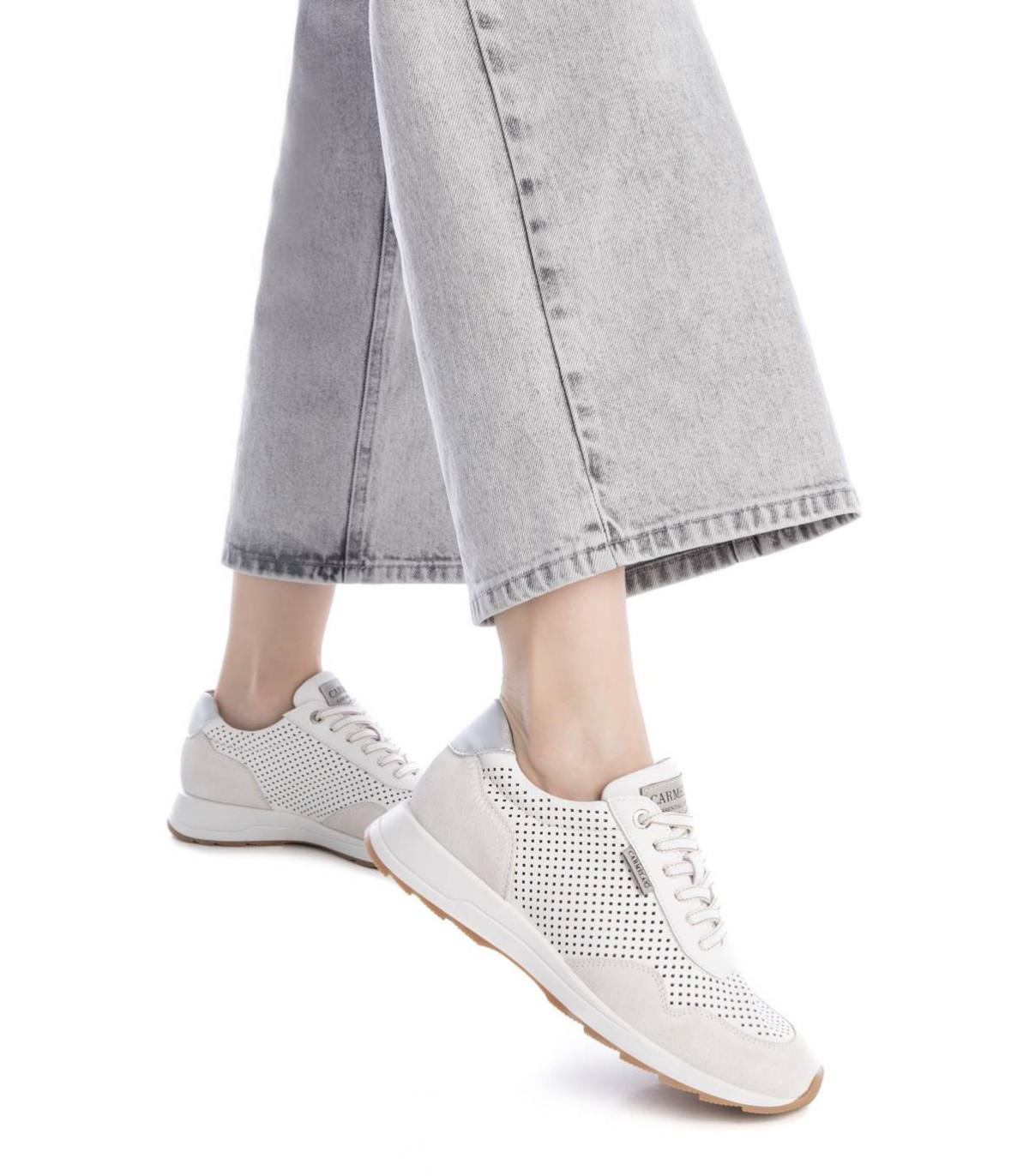 Zapatilla de mujer, marca Carmela. Fabricado en piel de alta calidad. Cierre mediante cordones ajustables para mayor comodidad. Suela gruesa dentada antideslizante. Con plantilla extraíble.