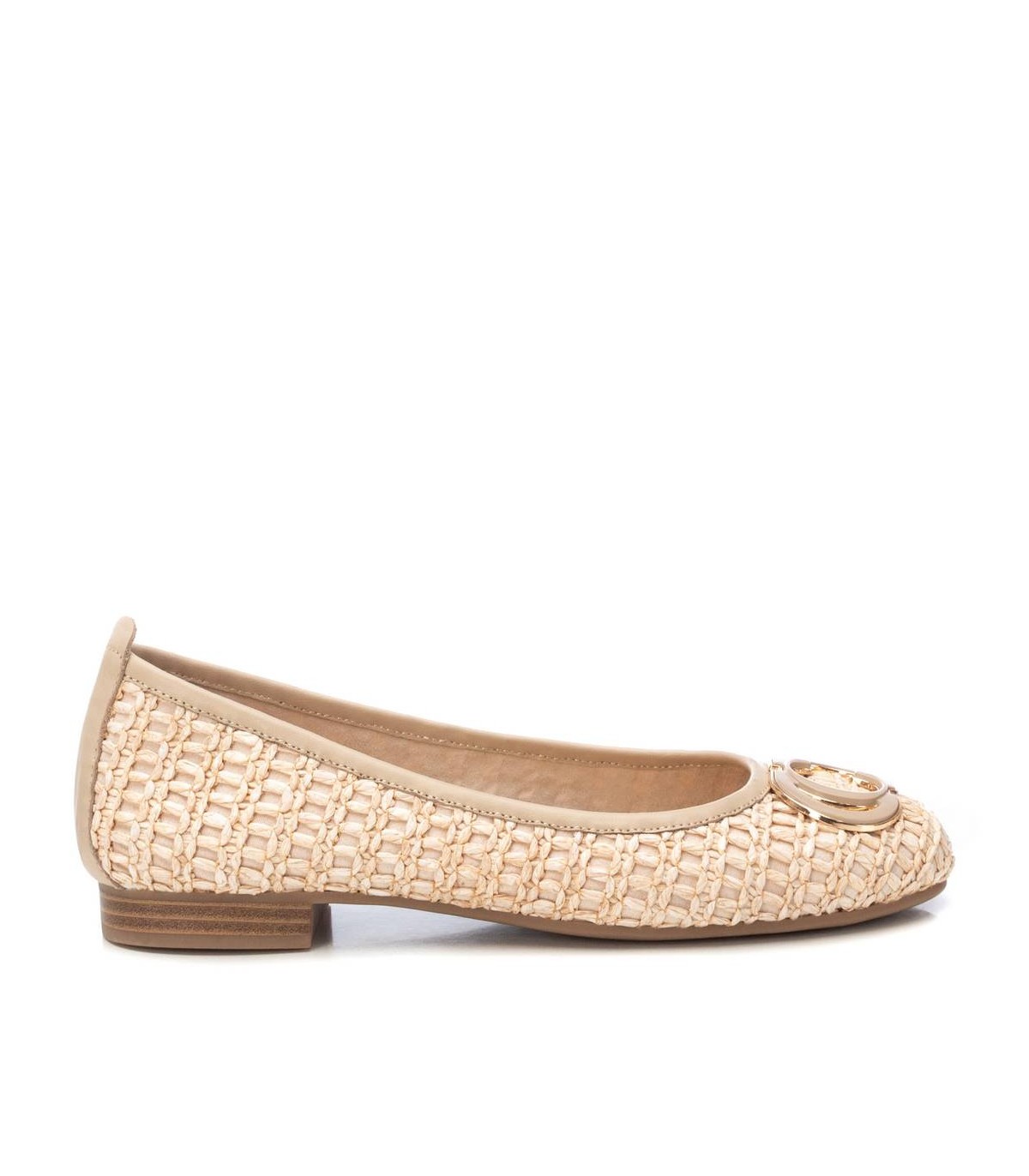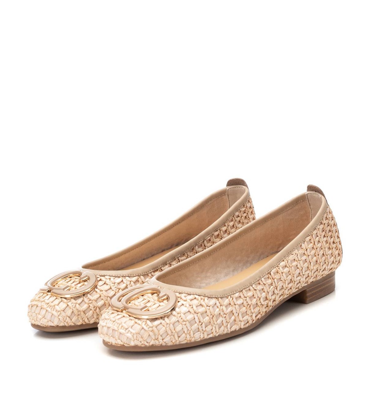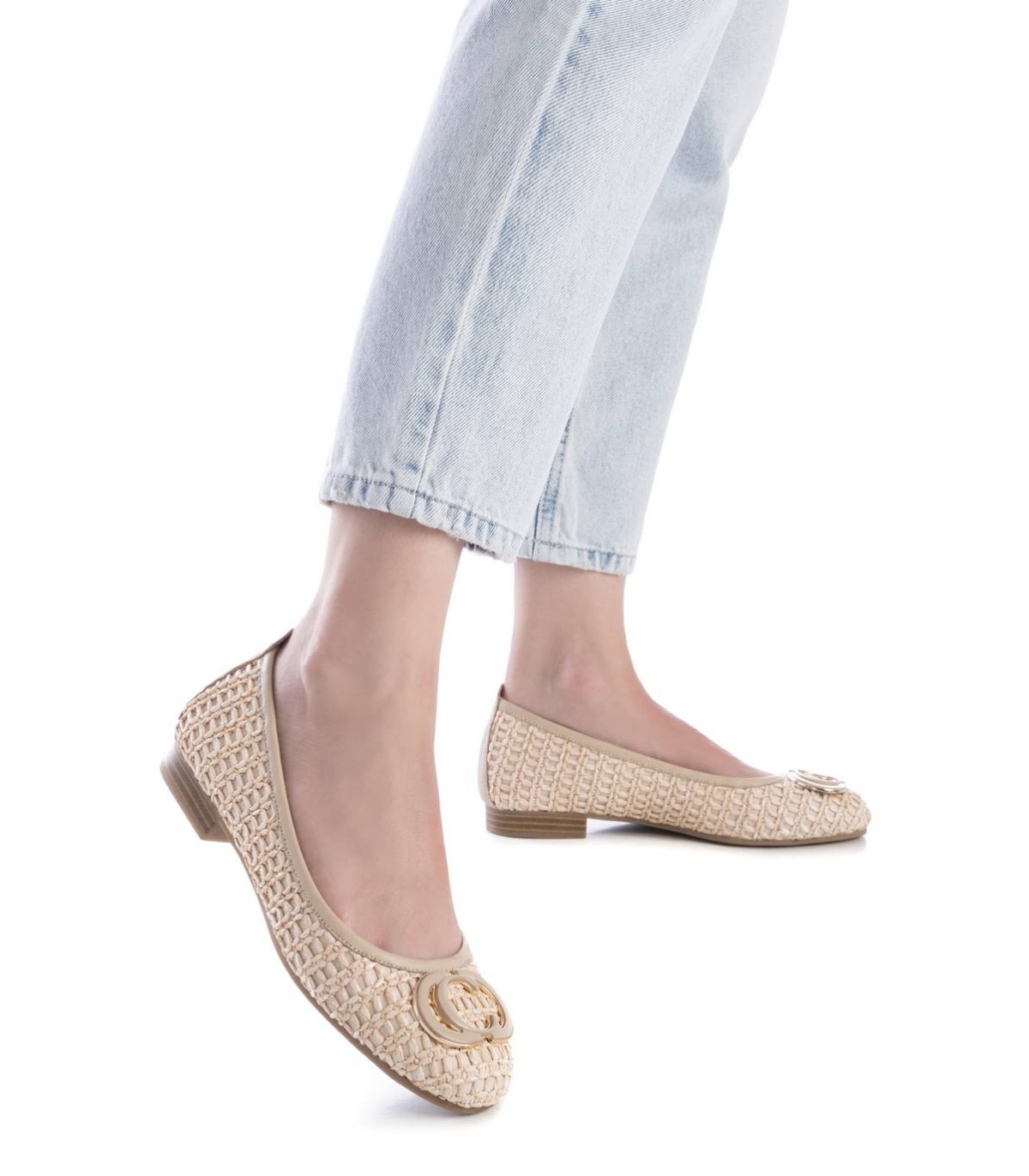 Bailarina de mujer, marca Carmela. Fabricado en rafia de alta calidad. Frente decorativo, diseño elegante y sofisticado. Tirador trasero para facilitar la puesta. Modelo imprescindible esta temporada.