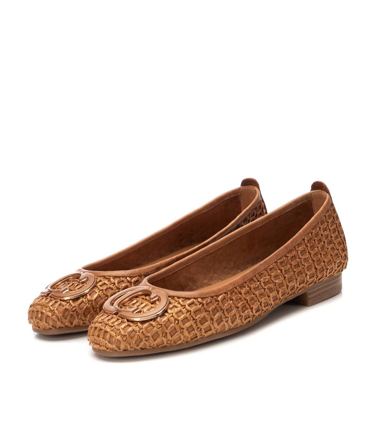 Bailarina de mujer, marca Carmela. Fabricado en rafia de alta calidad. Frente decorativo, diseño elegante y sofisticado. Tirador trasero para facilitar la puesta. Modelo imprescindible esta temporada.