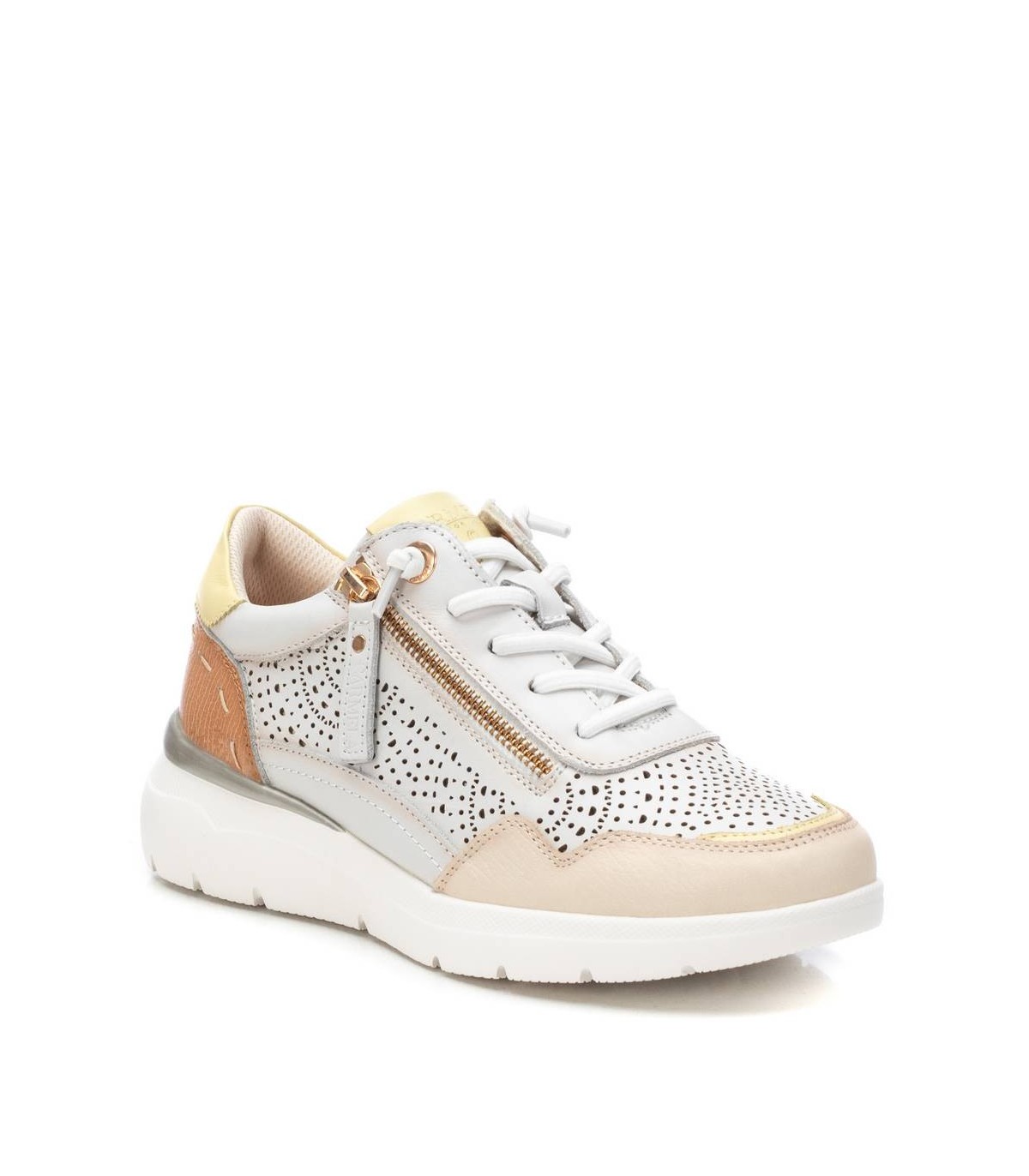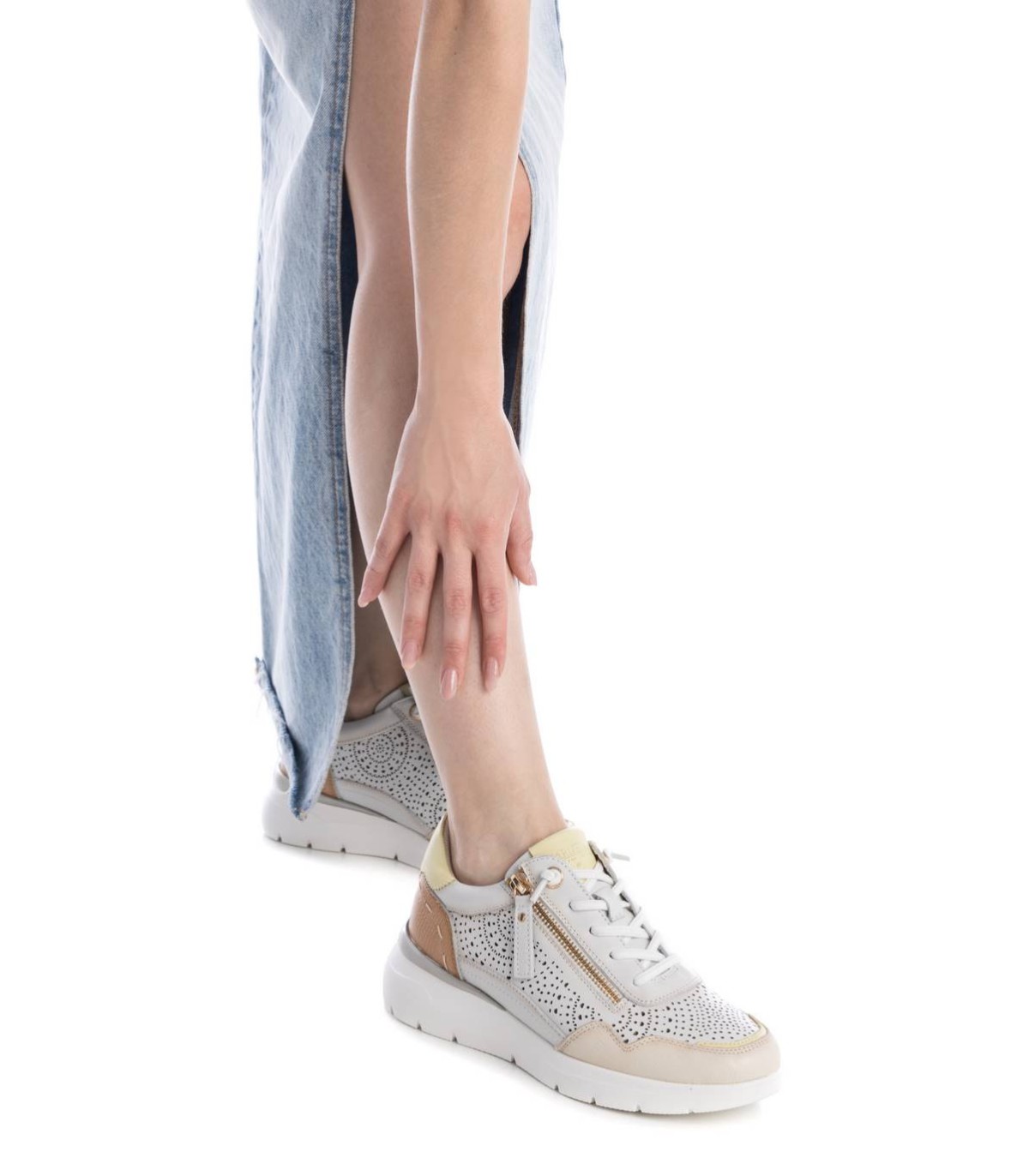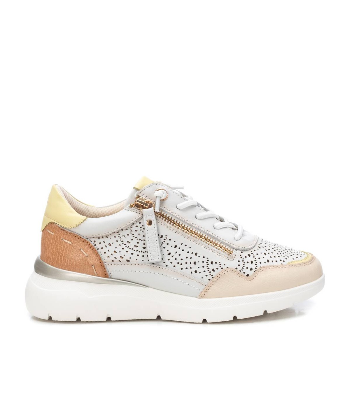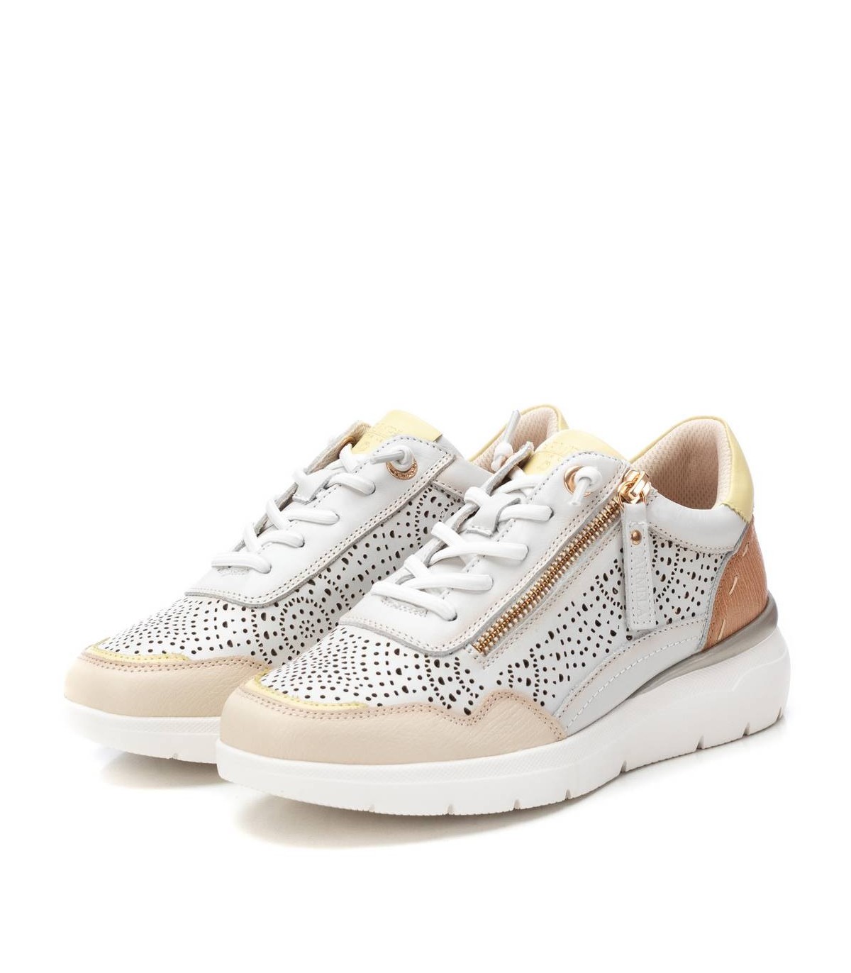 Zapatilla de mujer, marca Carmela. Fabricado en piel de alta calidad. Diseño calado decorativo ideal para esta temporada. Con plantilla extraíble. Cierre mediante cremallera lateral y cordones regulables para mayor comodidad. Cómoda planta y gruesa suela dentada antideslizante.