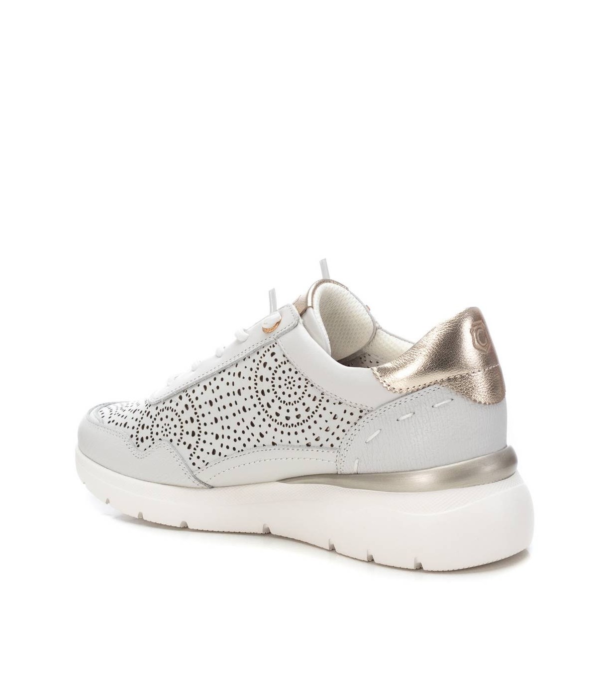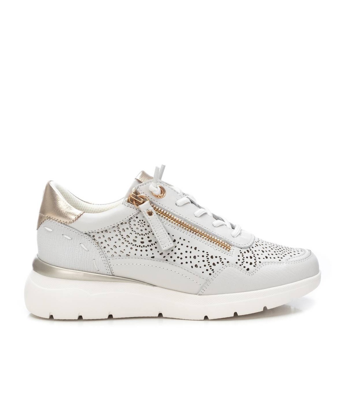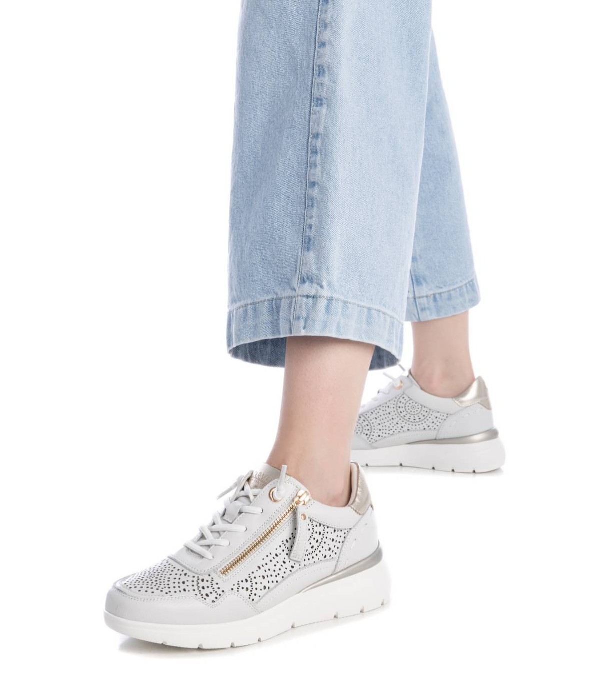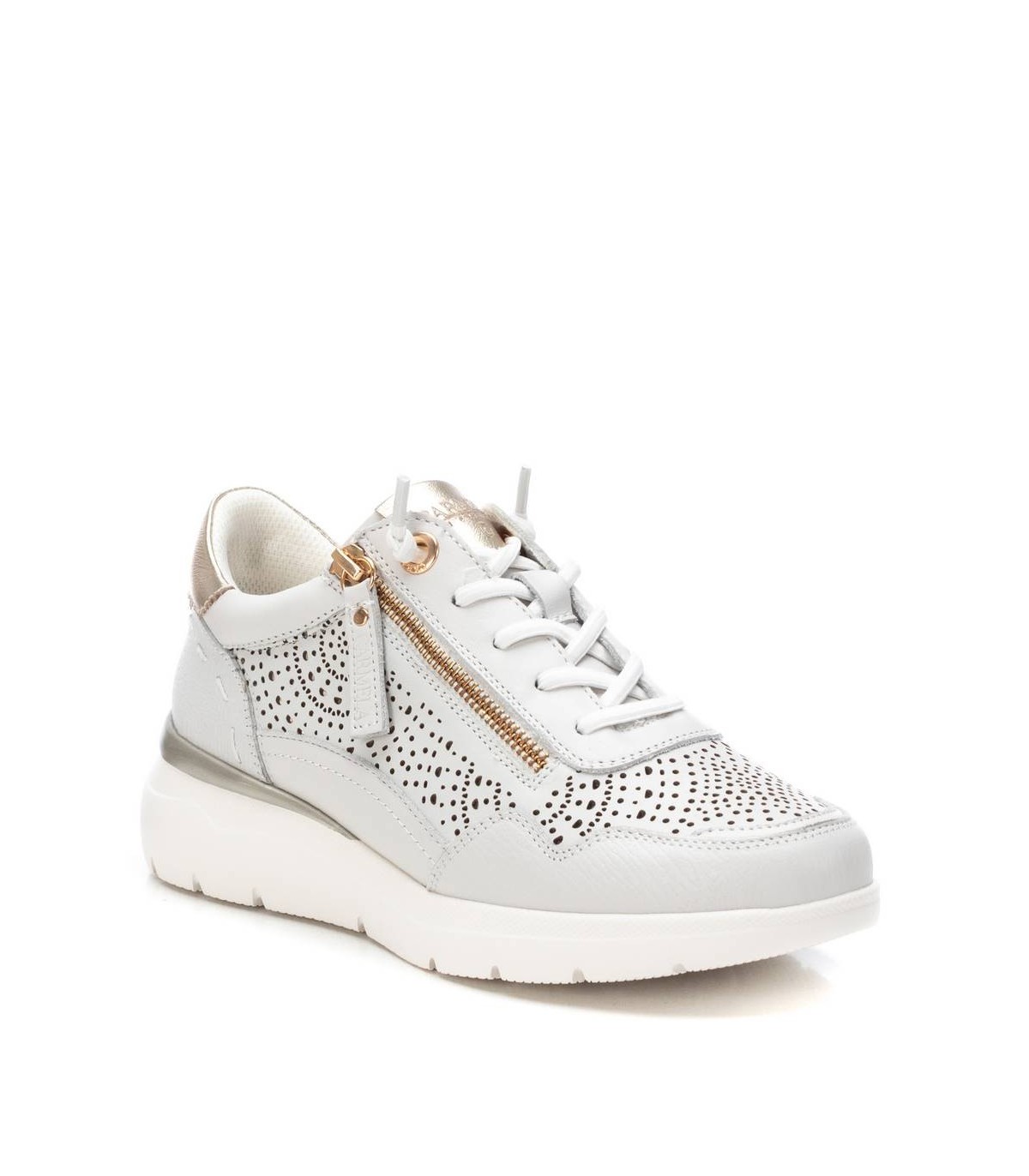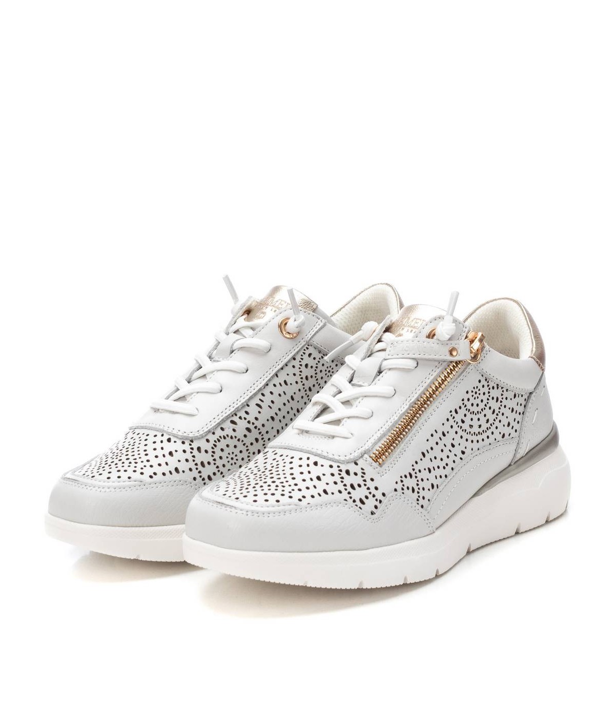 Zapatilla de mujer, marca Carmela. Fabricado en piel de alta calidad. Diseño calado decorativo ideal para esta temporada. Con plantilla extraíble. Cierre mediante cremallera lateral y cordones regulables para mayor comodidad. Cómoda planta y gruesa suela dentada antideslizante.