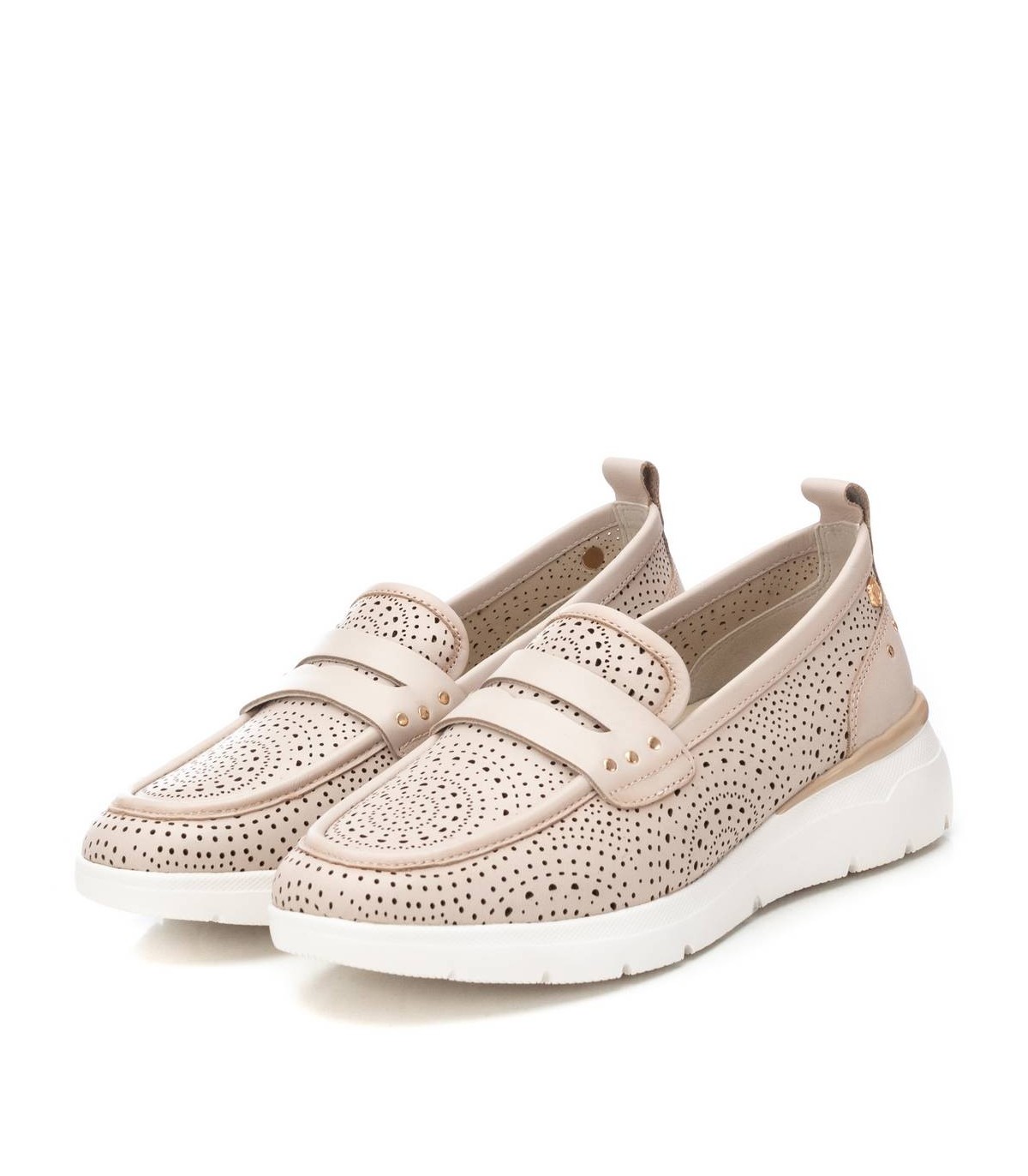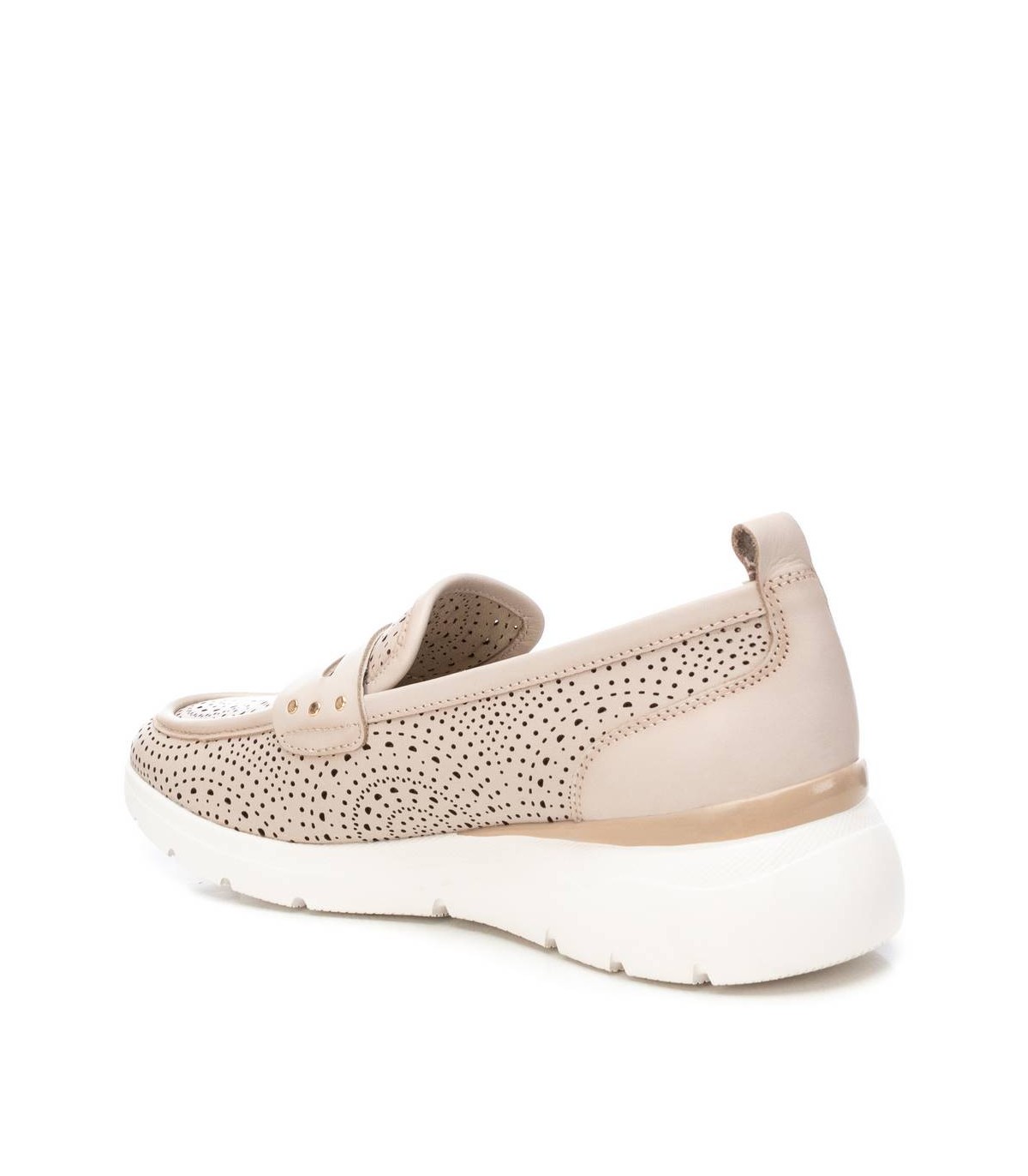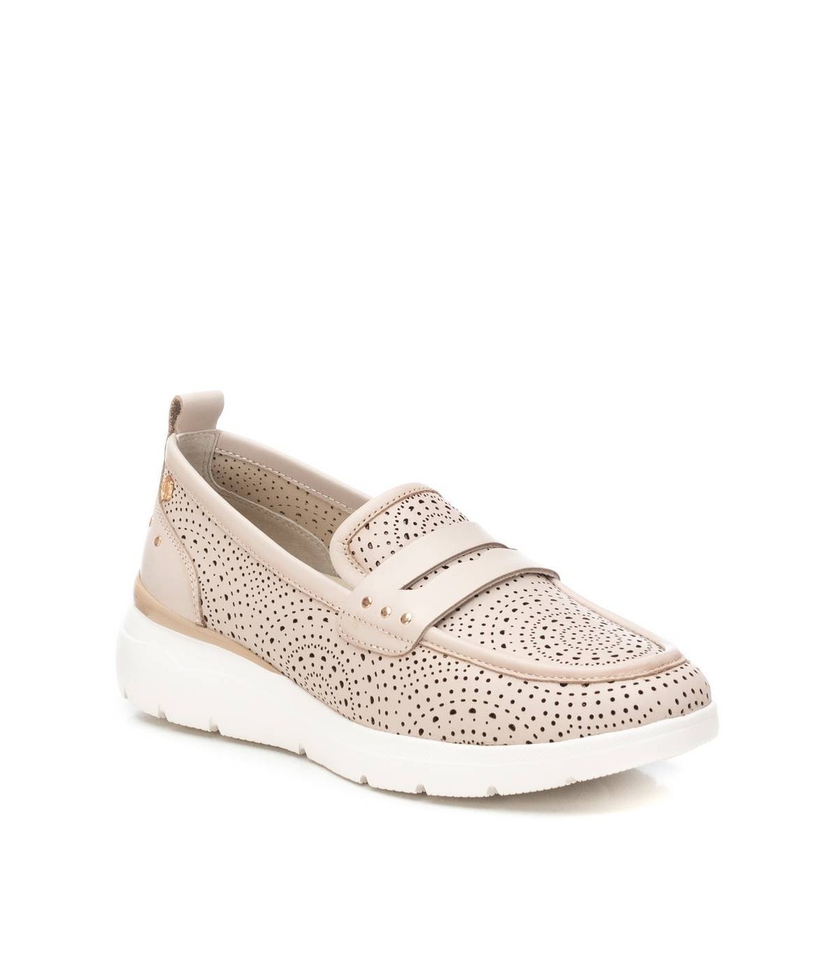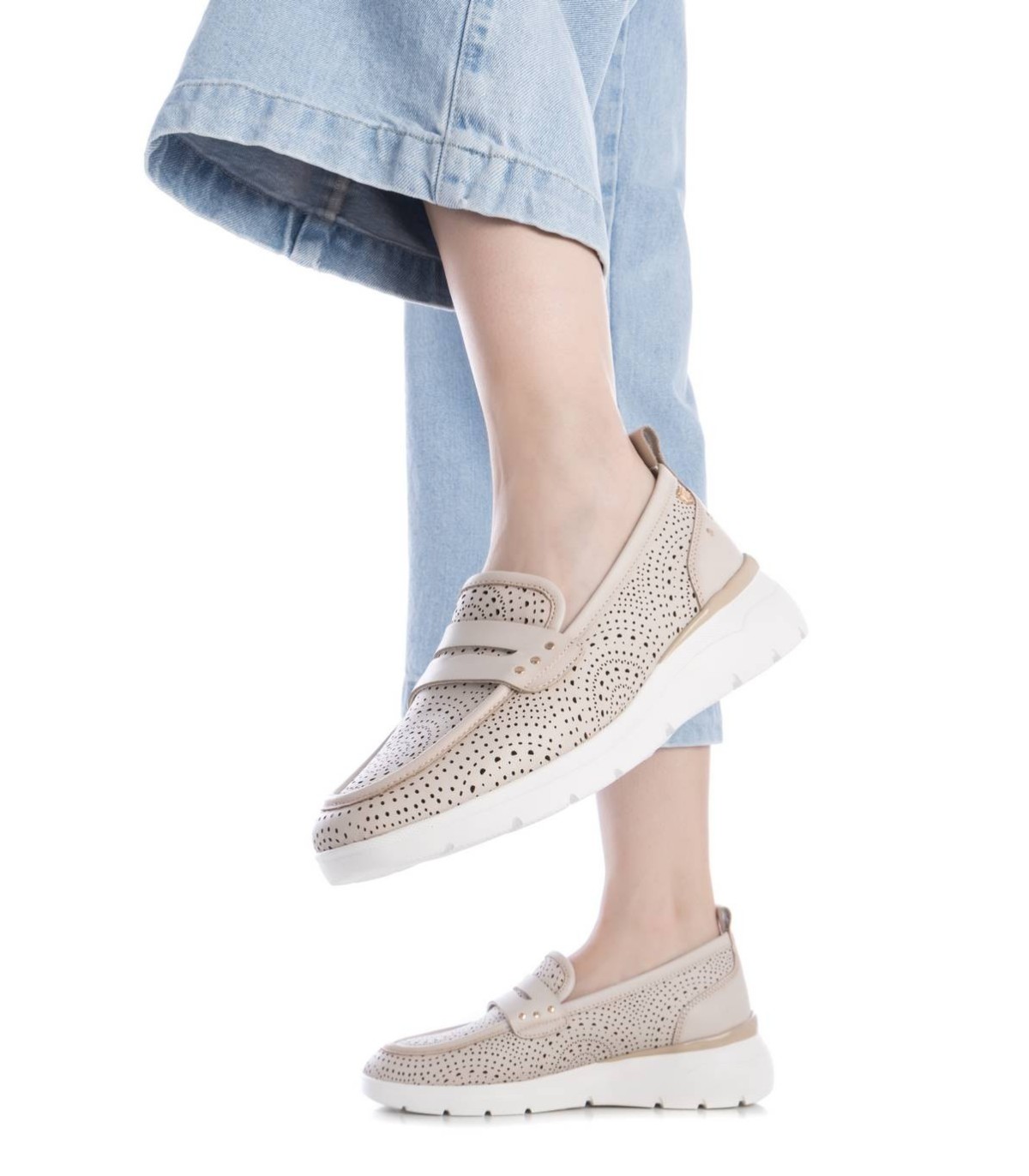 Mocasín de mujer, marca Carmela. Fabricado en piel de alta calidad con diseño en picados. Con plantilla extraíble. Tirador trasero para facilitar la puesta. Piso deportivo con volumen y suela de goma antideslizante.