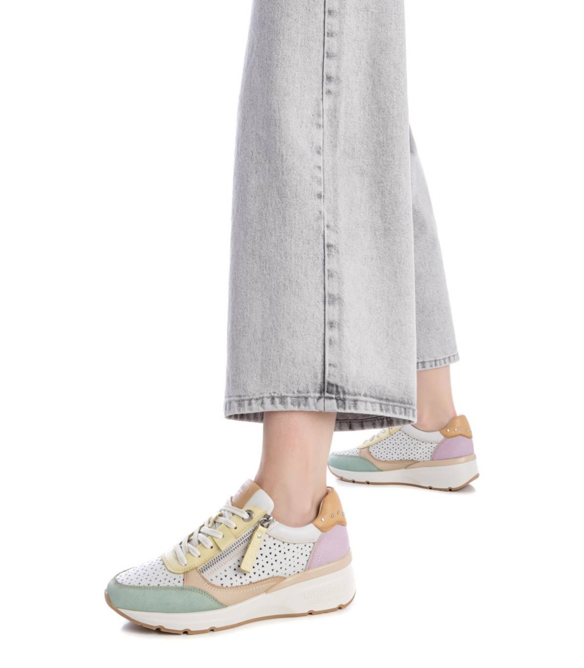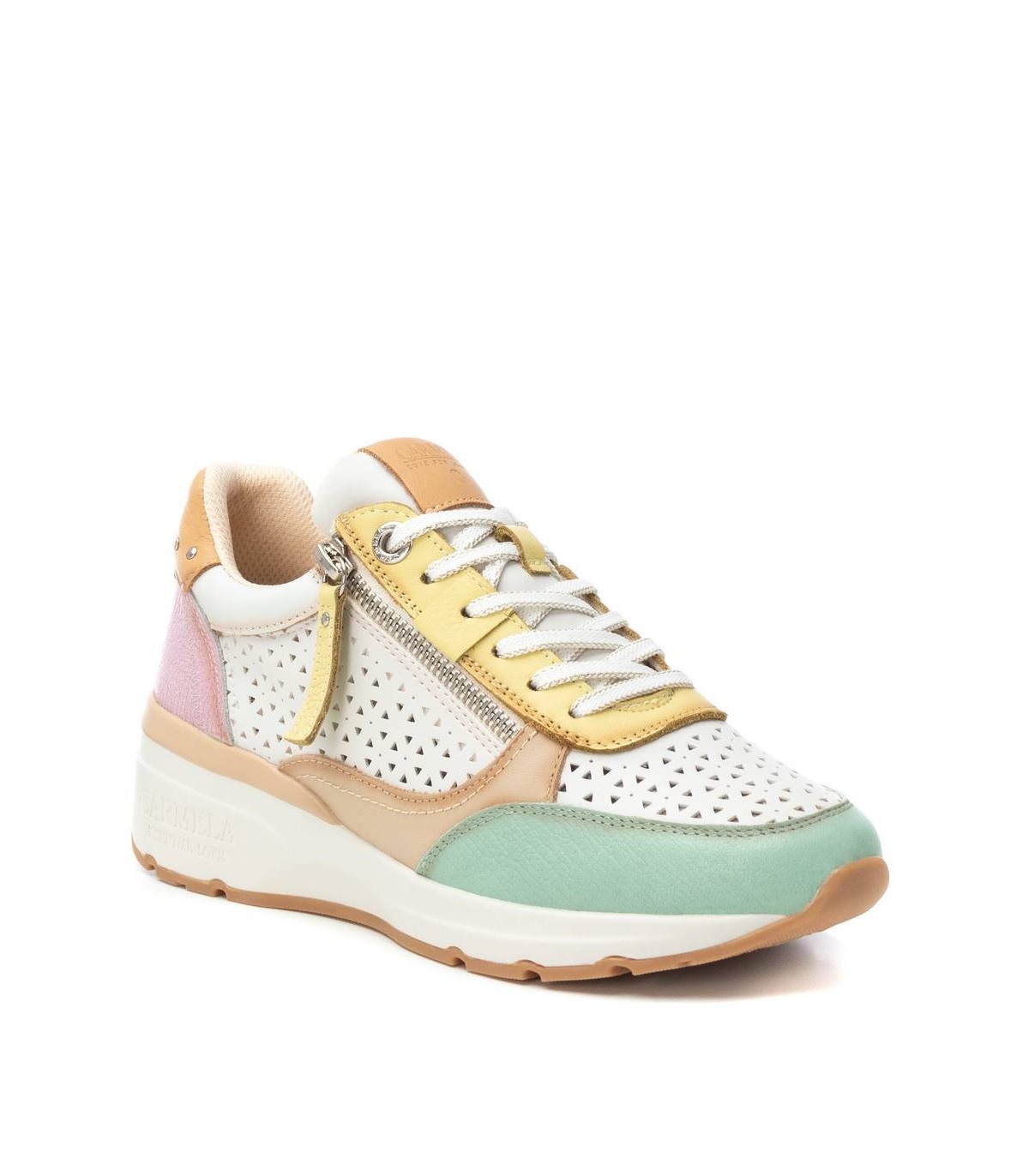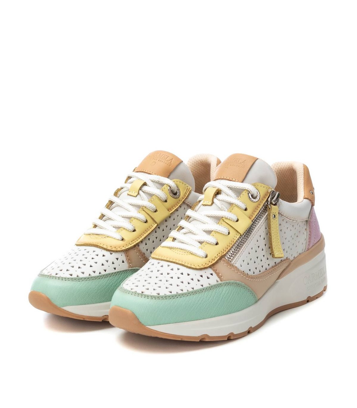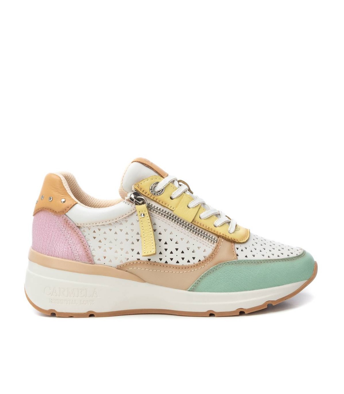 Zapatilla de mujer, marca Carmela. Fabricada en piel de alta calidad. Con plantilla extraíble. Diseño calado ideal para esta temporada. Cierre mediante cremallera lateral y cordones regulables para mayor comodidad. Suela gruesa de goma antideslizante.