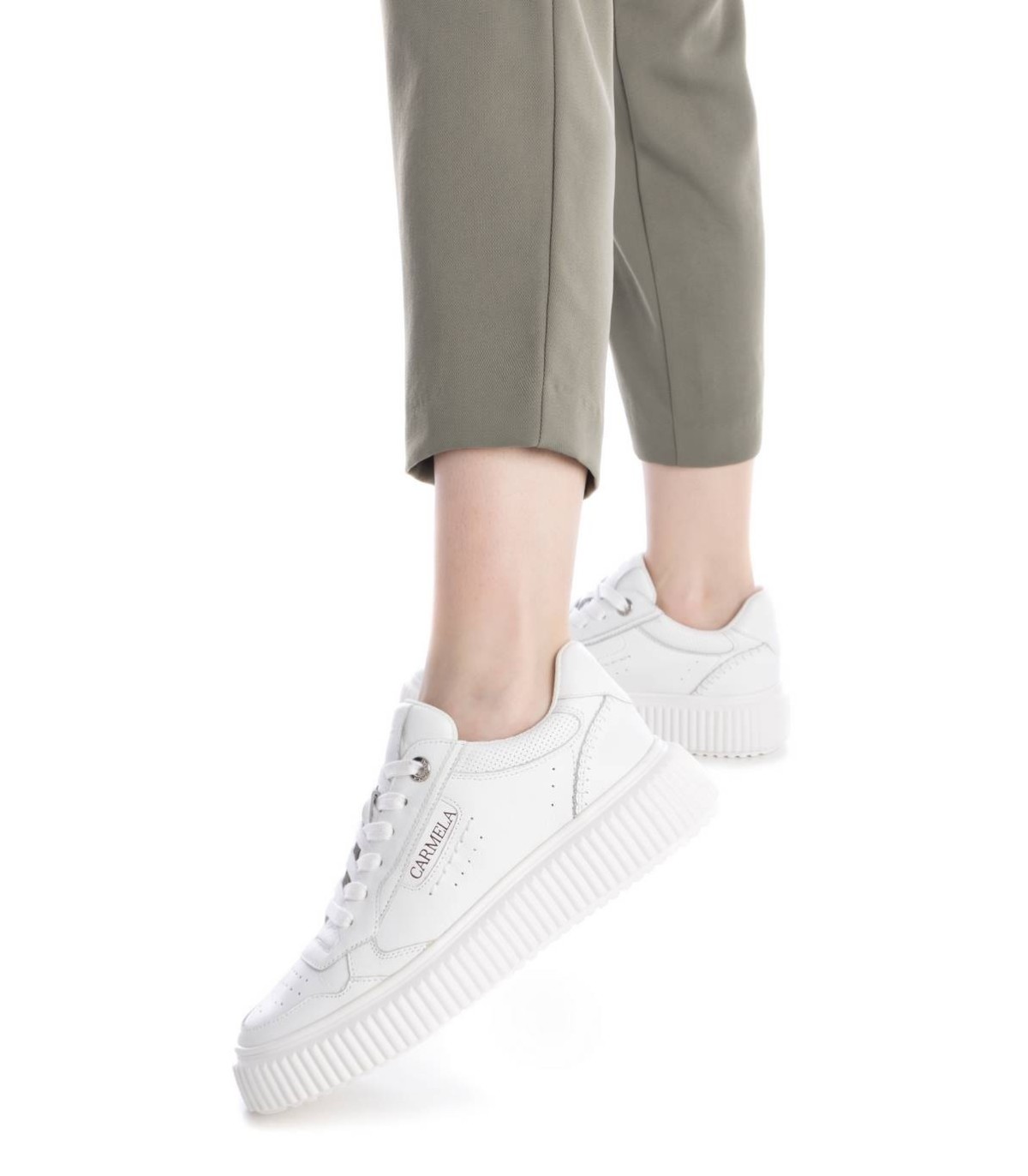 Zapatilla de mujer, marca Carmela. Fabricado en piel de alta calidad. Cierre mediante cordones ajustables. Tirador trasero que facilita la puesta. Suela de goma antideslizante. Con plantilla extraíble.