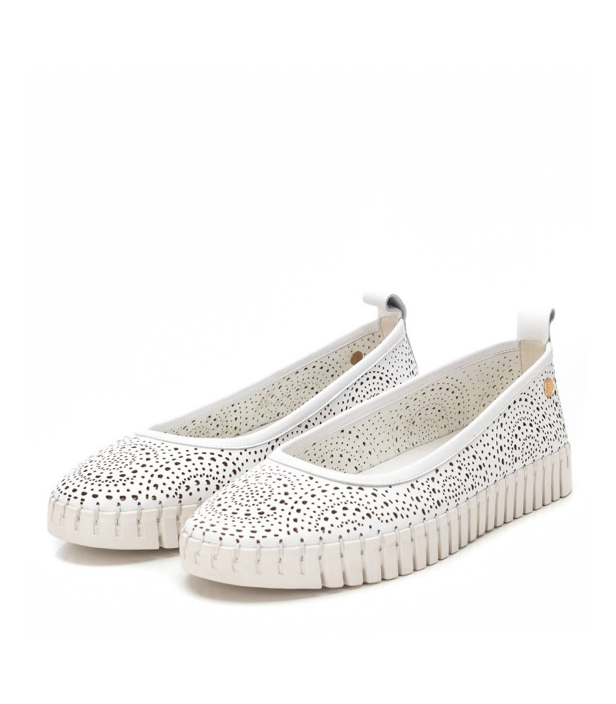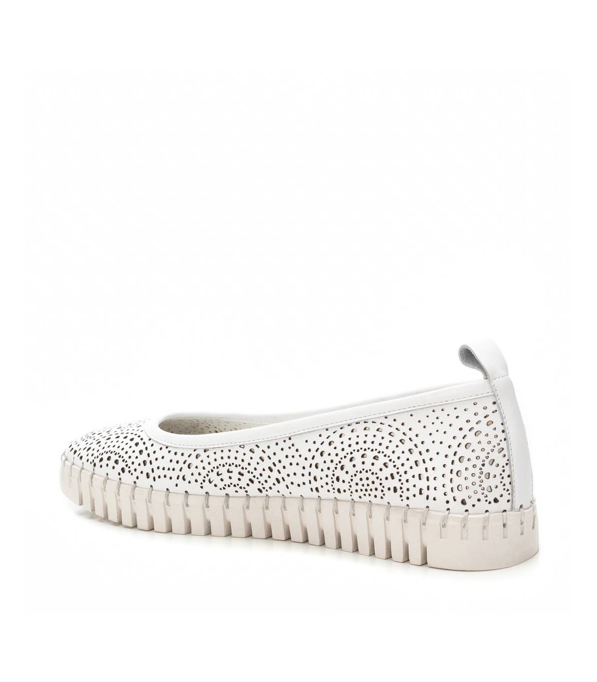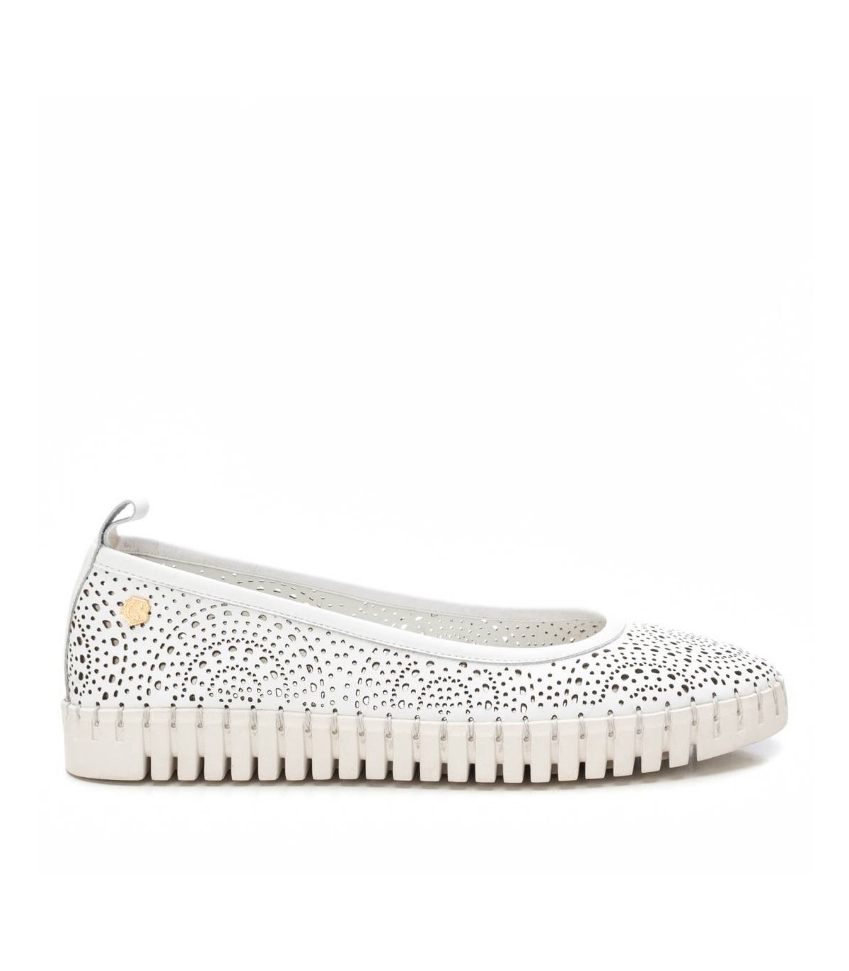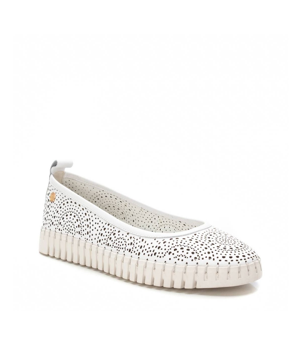 Bailarina de mujer, de la marca Carmela. Fabricado en piel de alta calidad. Diseño calado. Tirador trasero para facilitar el calce. Cómoda planta confort y suela antideslizante. Con plantilla extraíble.