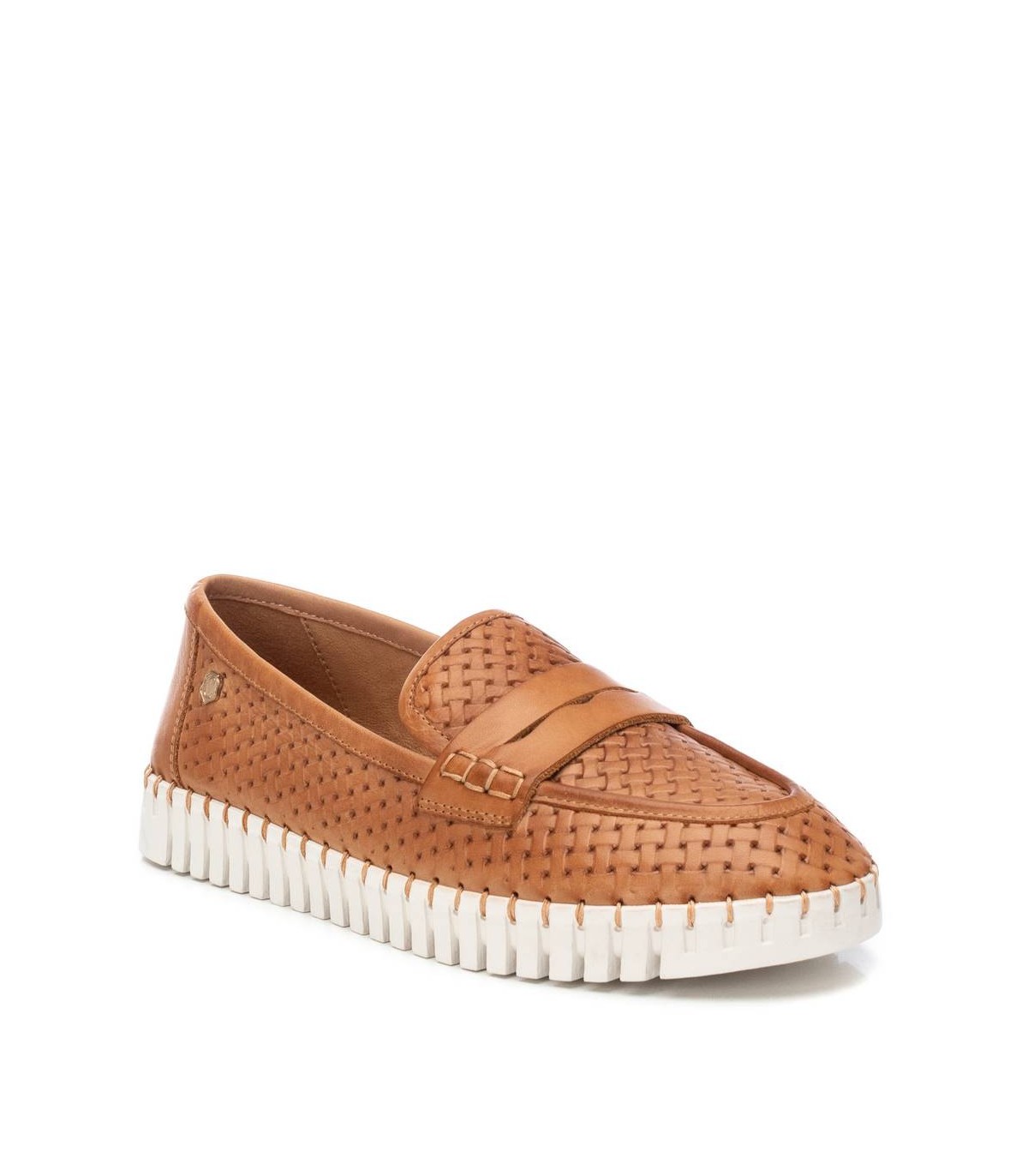 Mocasín de mujer, de la marca Carmela. Fabricado en piel de alta calidad. Diseño calado. Cómoda planta confort y suela antideslizante. Con plantilla extraíble.