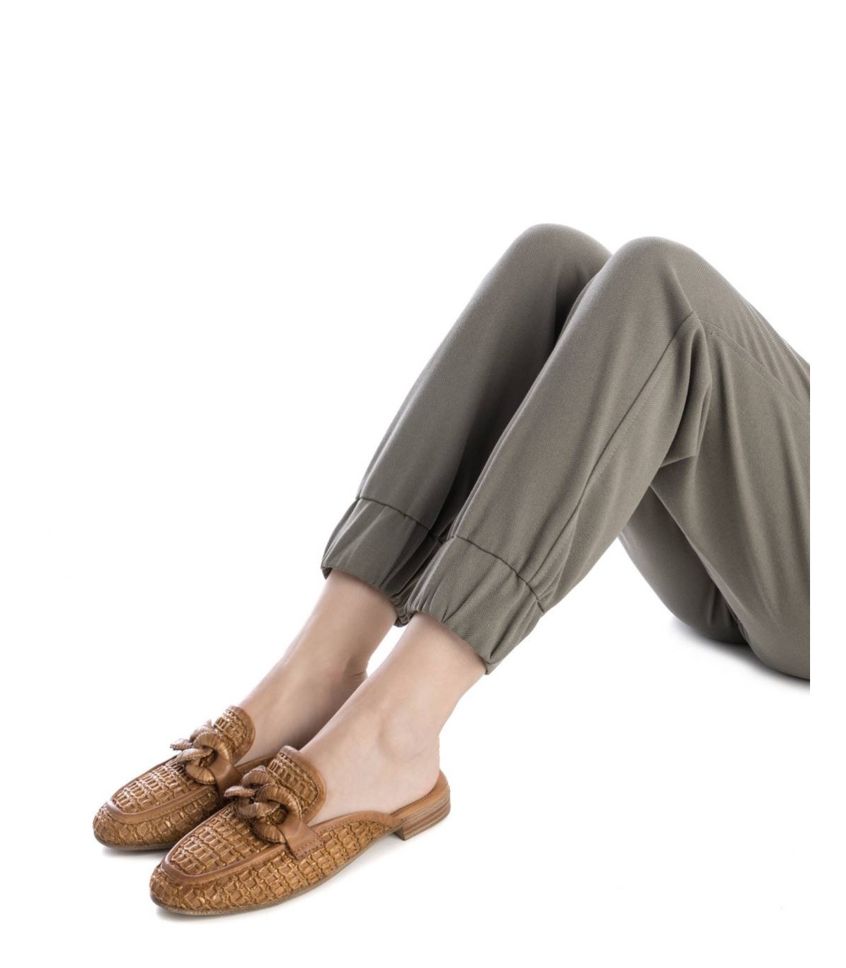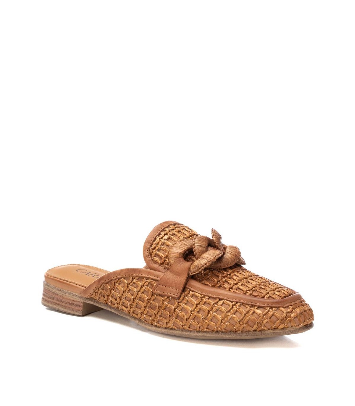 Zueco de mujer, de la marca Carmela. Diseño calado tipo rejilla. Con pieza decorativa al frente para darle mayor toque sofisticado. Suela plana antideslizante.