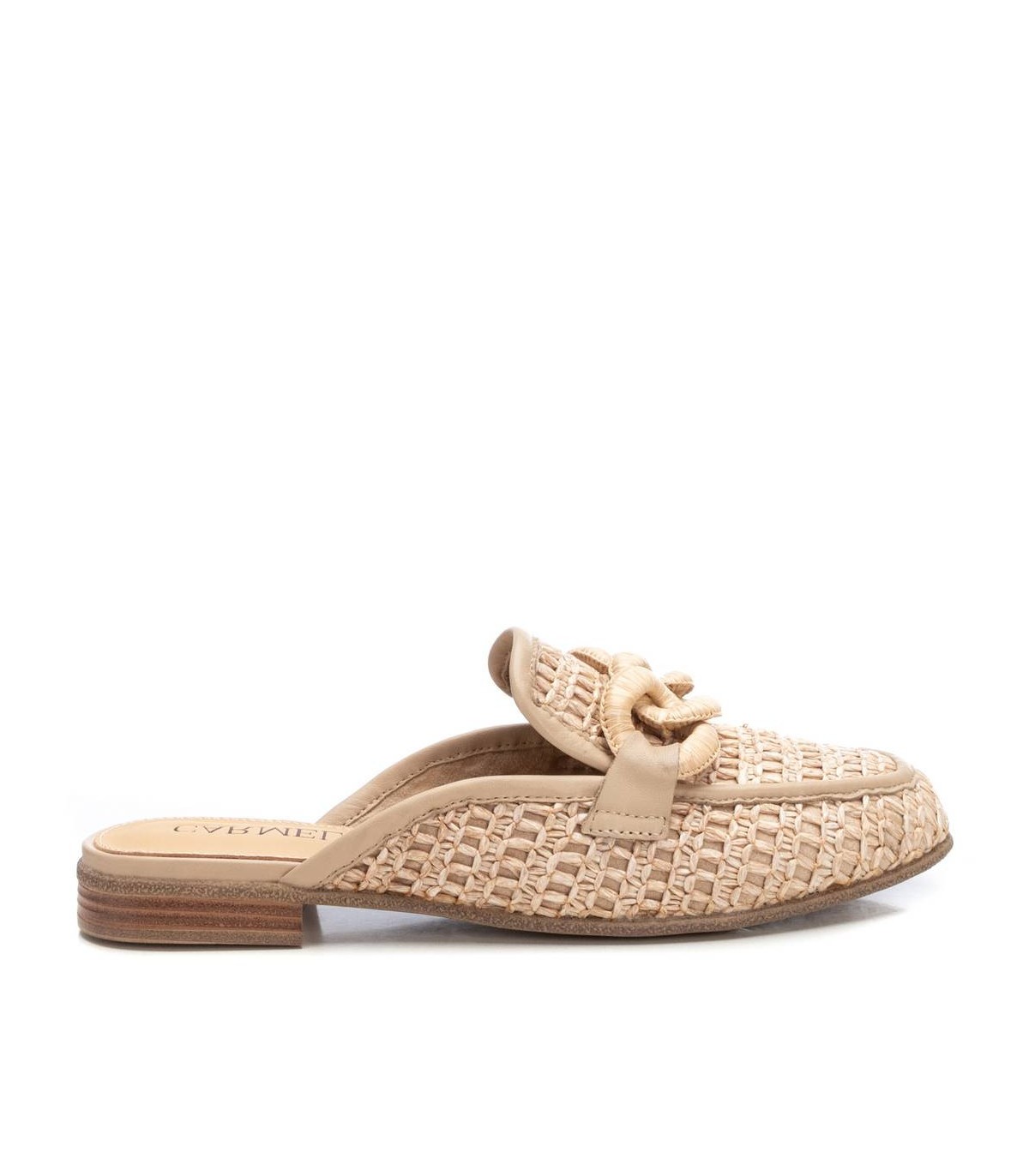 Zueco de mujer, de la marca Carmela. Diseño calado tipo rejilla. Con pieza decorativa al frente para darle mayor toque sofisticado. Suela plana antideslizante.