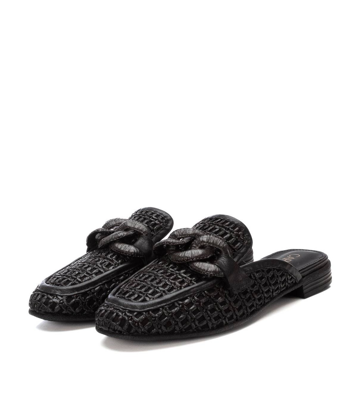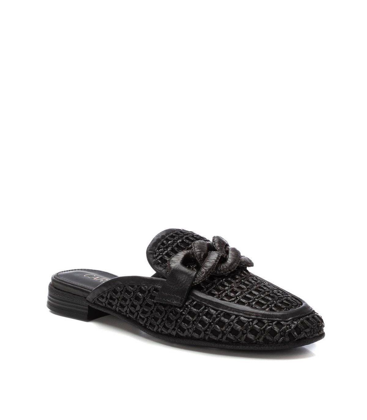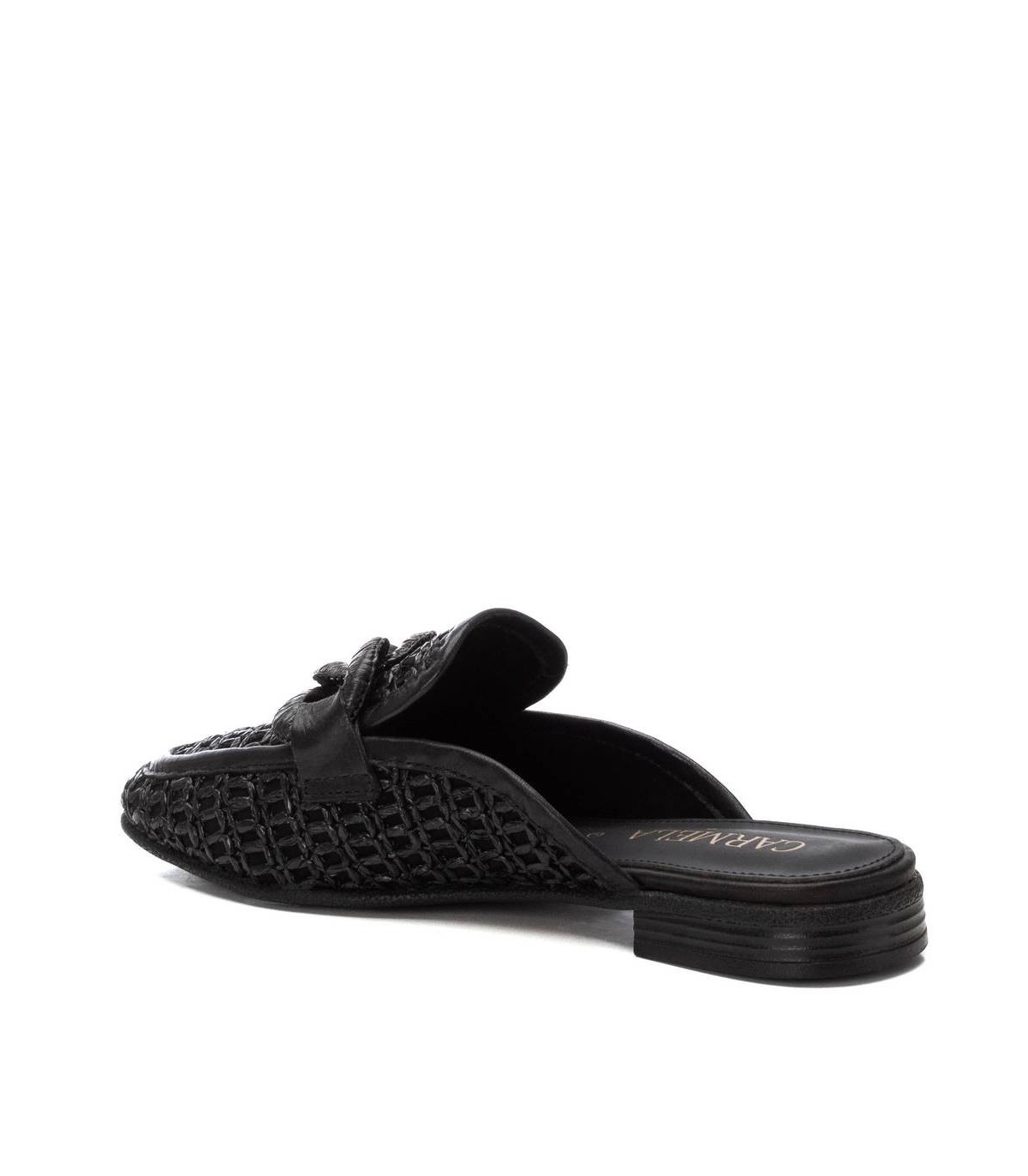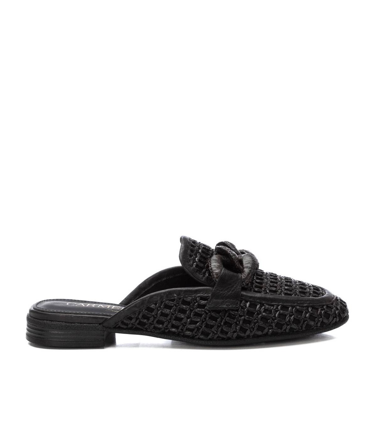 Zueco de mujer, de la marca Carmela. Diseño calado tipo rejilla. Con pieza decorativa al frente para darle mayor toque sofisticado. Suela plana antideslizante.