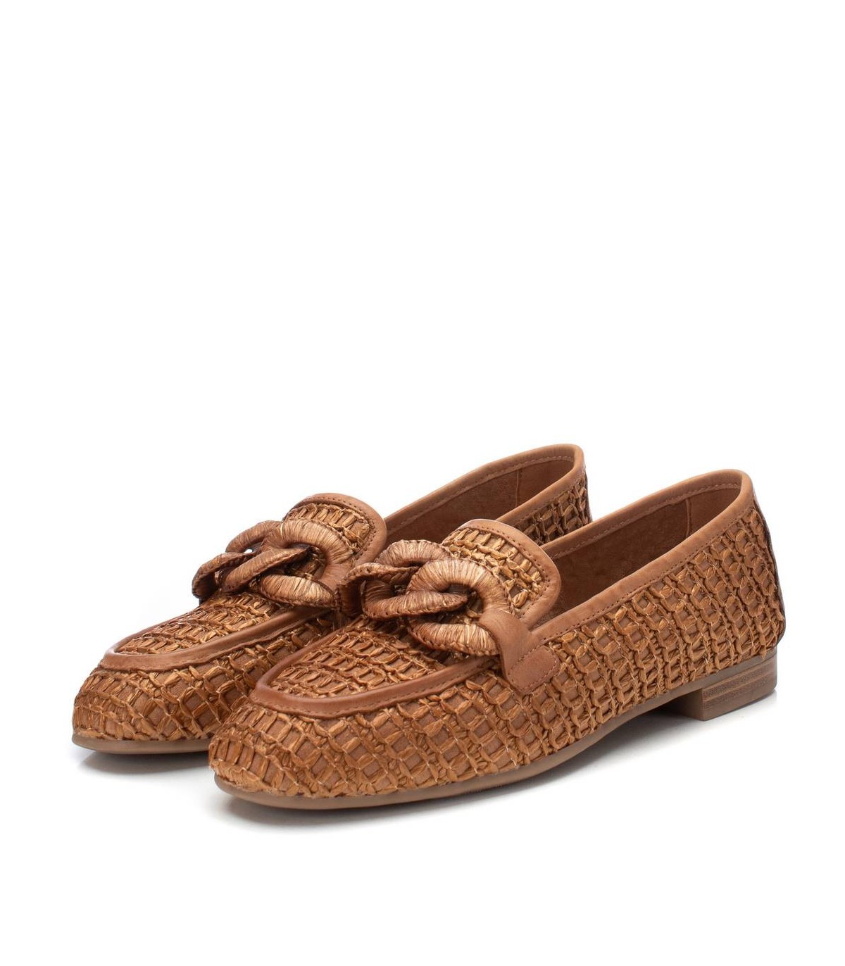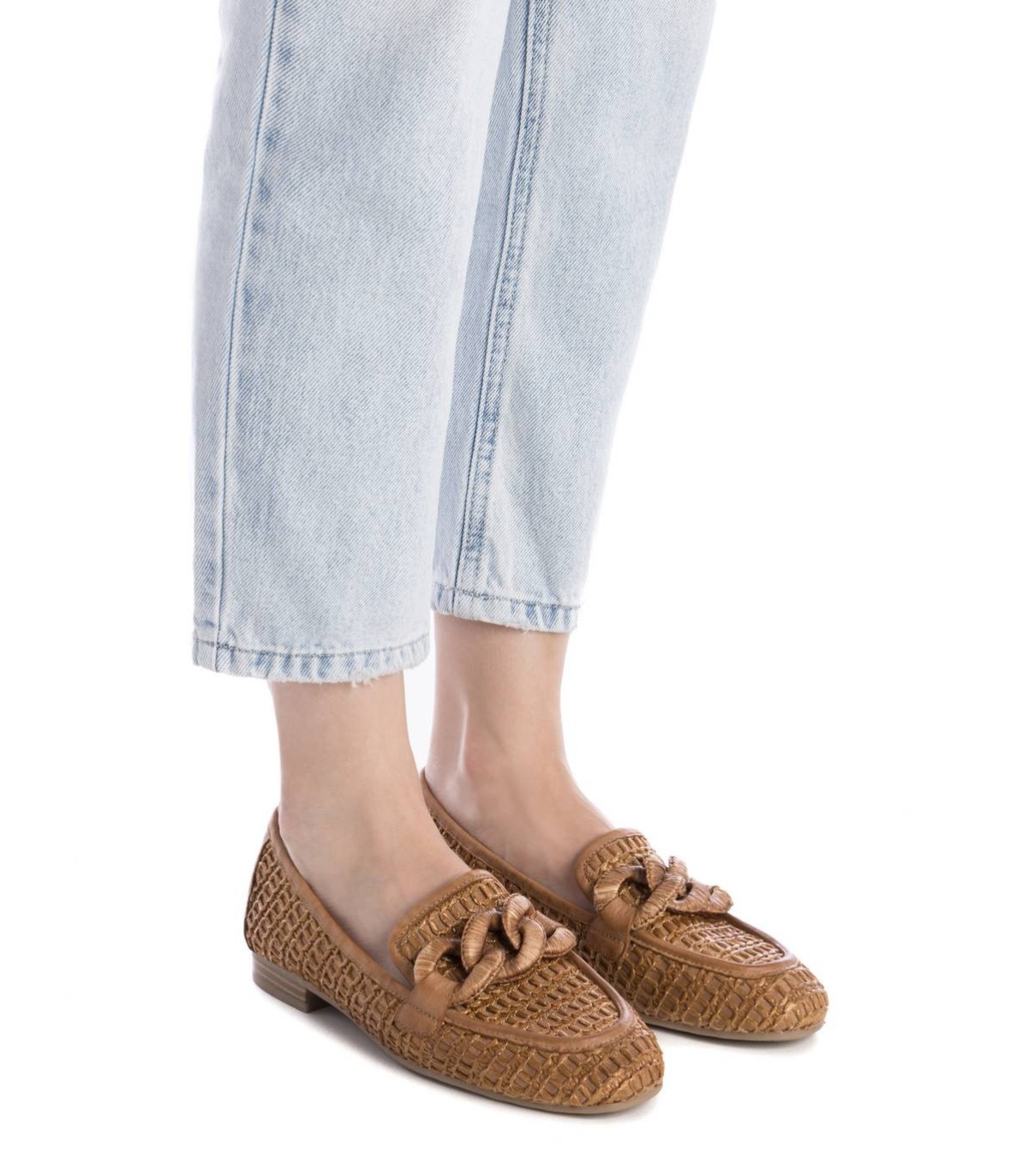 Mocasín de mujer, de la marca Carmela. Con su diseño a modo rejilla. Pieza metálica al frente para darle un toque más sofisticado. Suela plana antideslizante. Con plantilla extraíble.