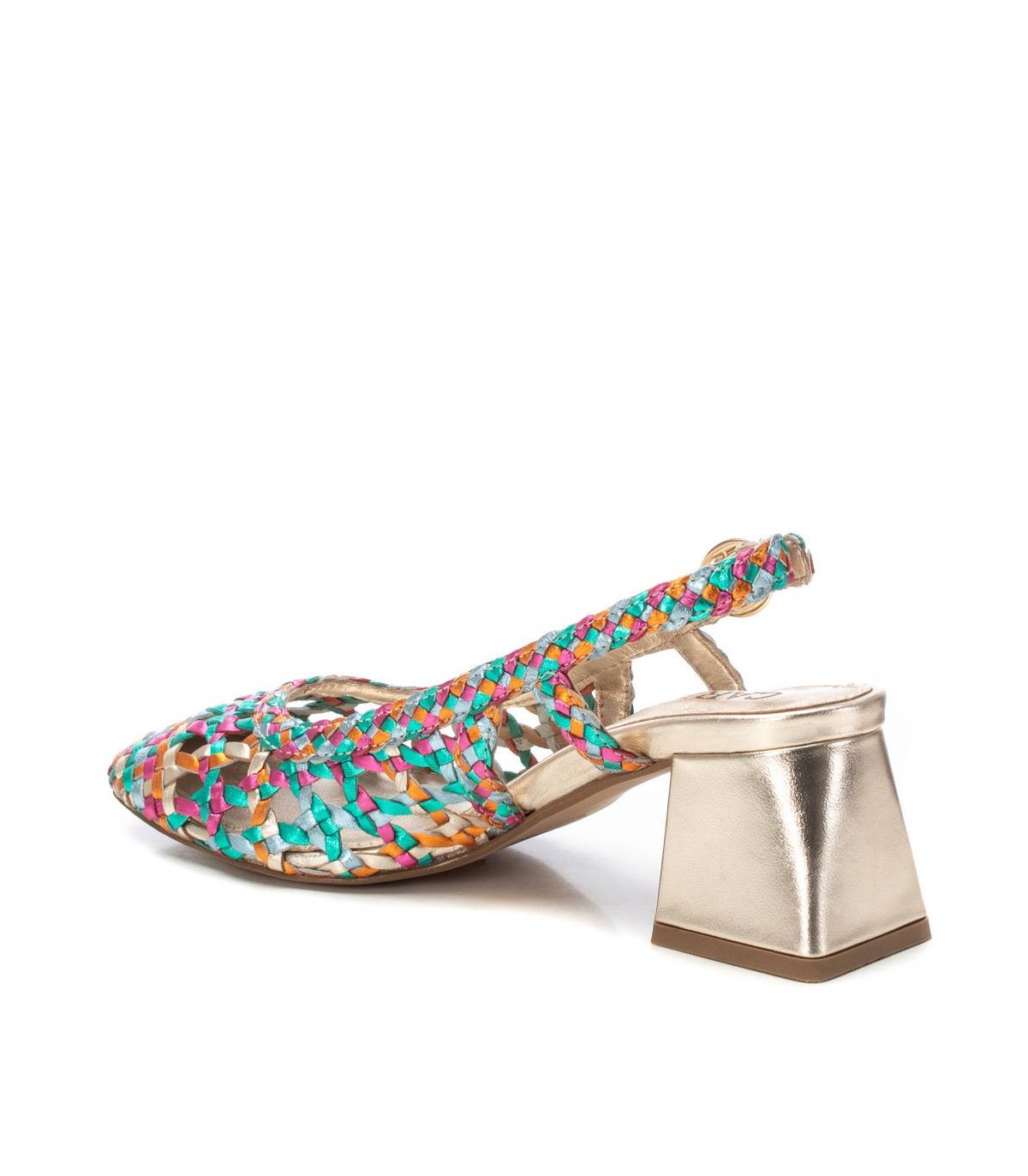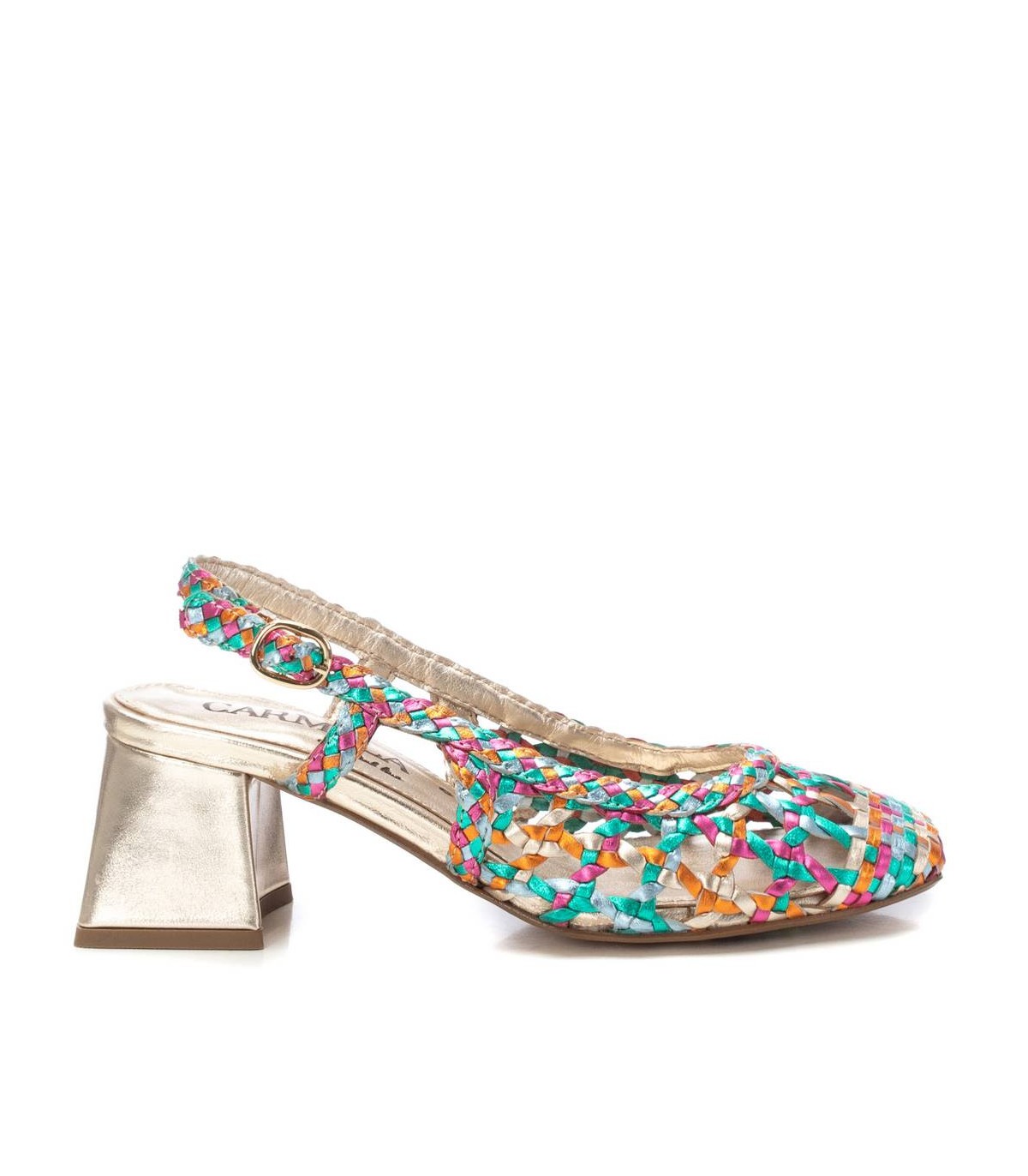 Zapato de mujer, de la marca Carmela. Con diseño calado tipo rejilla. Tacón ancho de 5 centímetros. Suela de goma antideslizante. Ideal para elevar tus looks esta temporada.