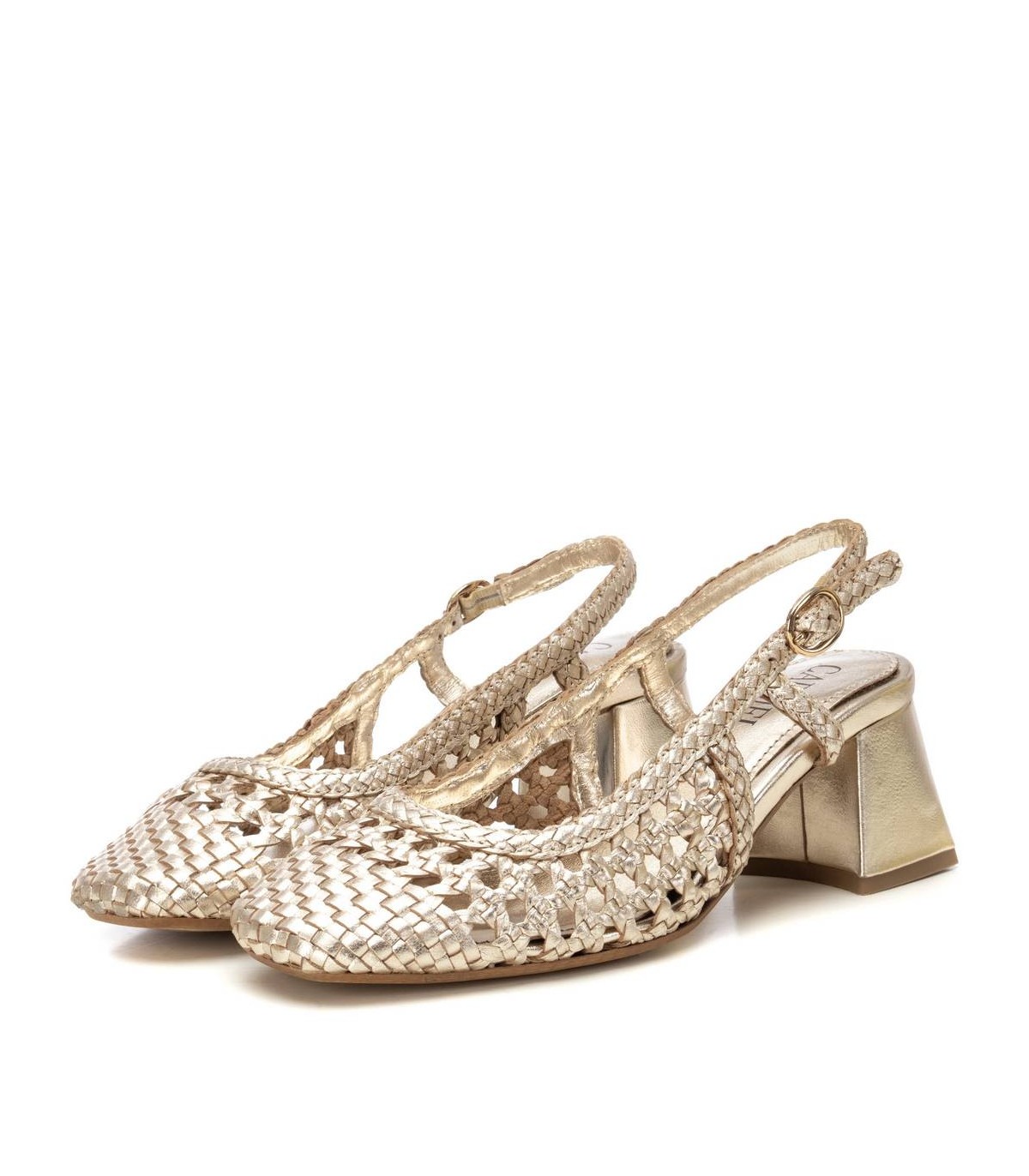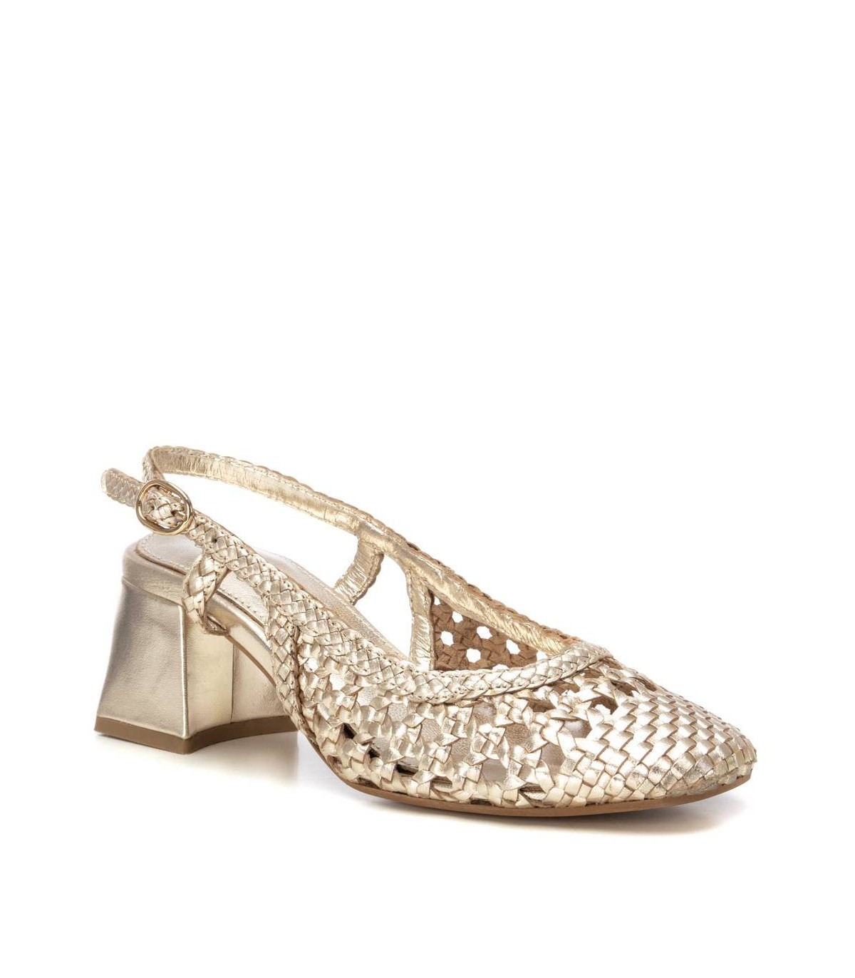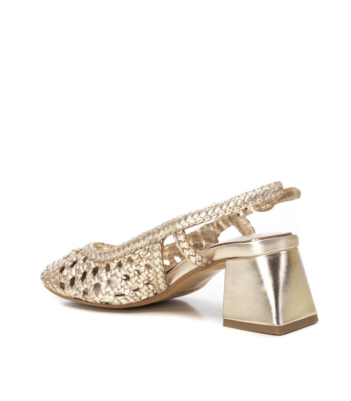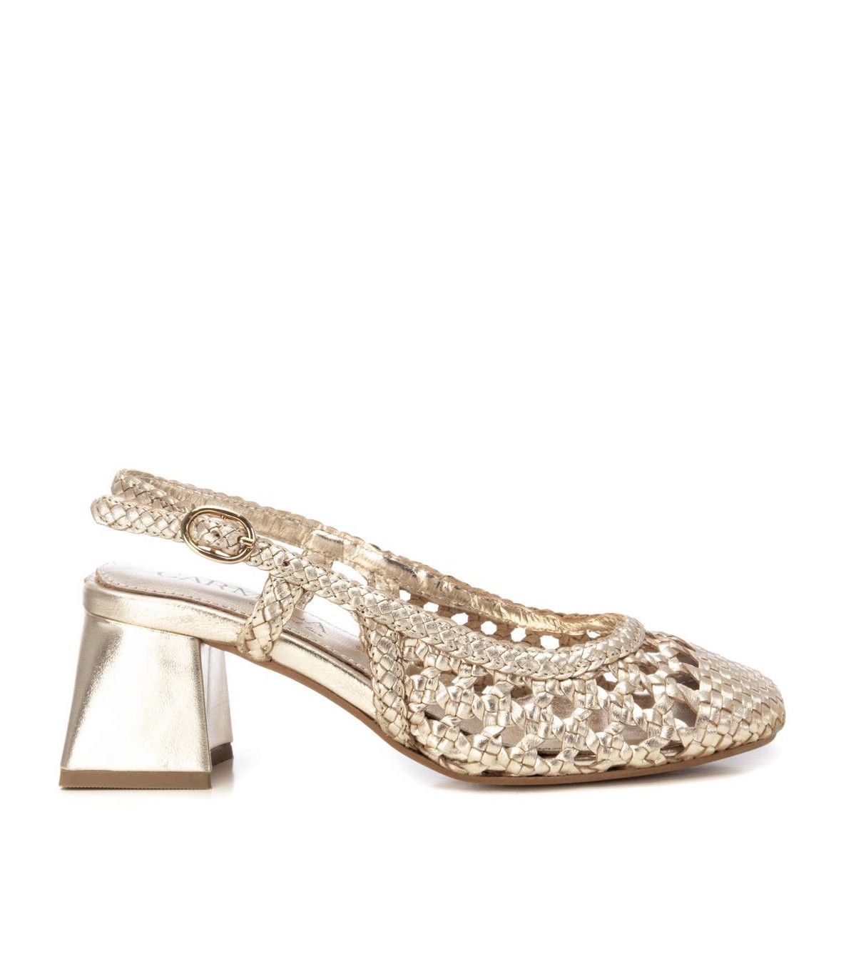 Zapato de mujer, de la marca Carmela. Con diseño calado tipo rejilla. Tacón ancho de 5 centímetros. Suela de goma antideslizante. Ideal para elevar tus looks esta temporada.