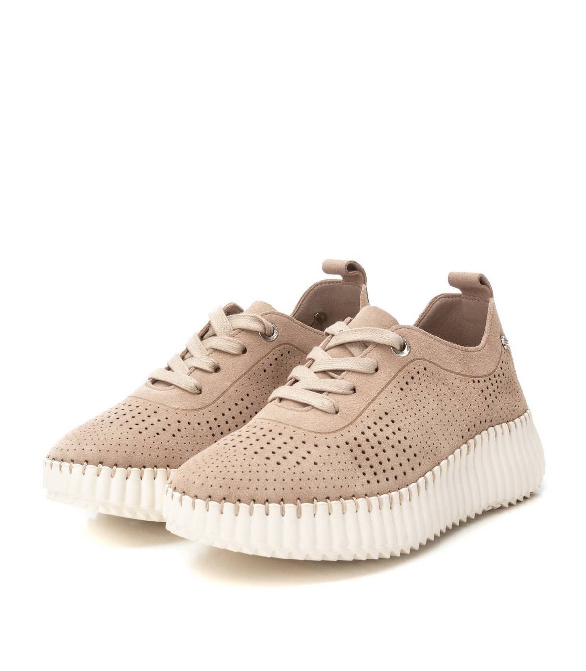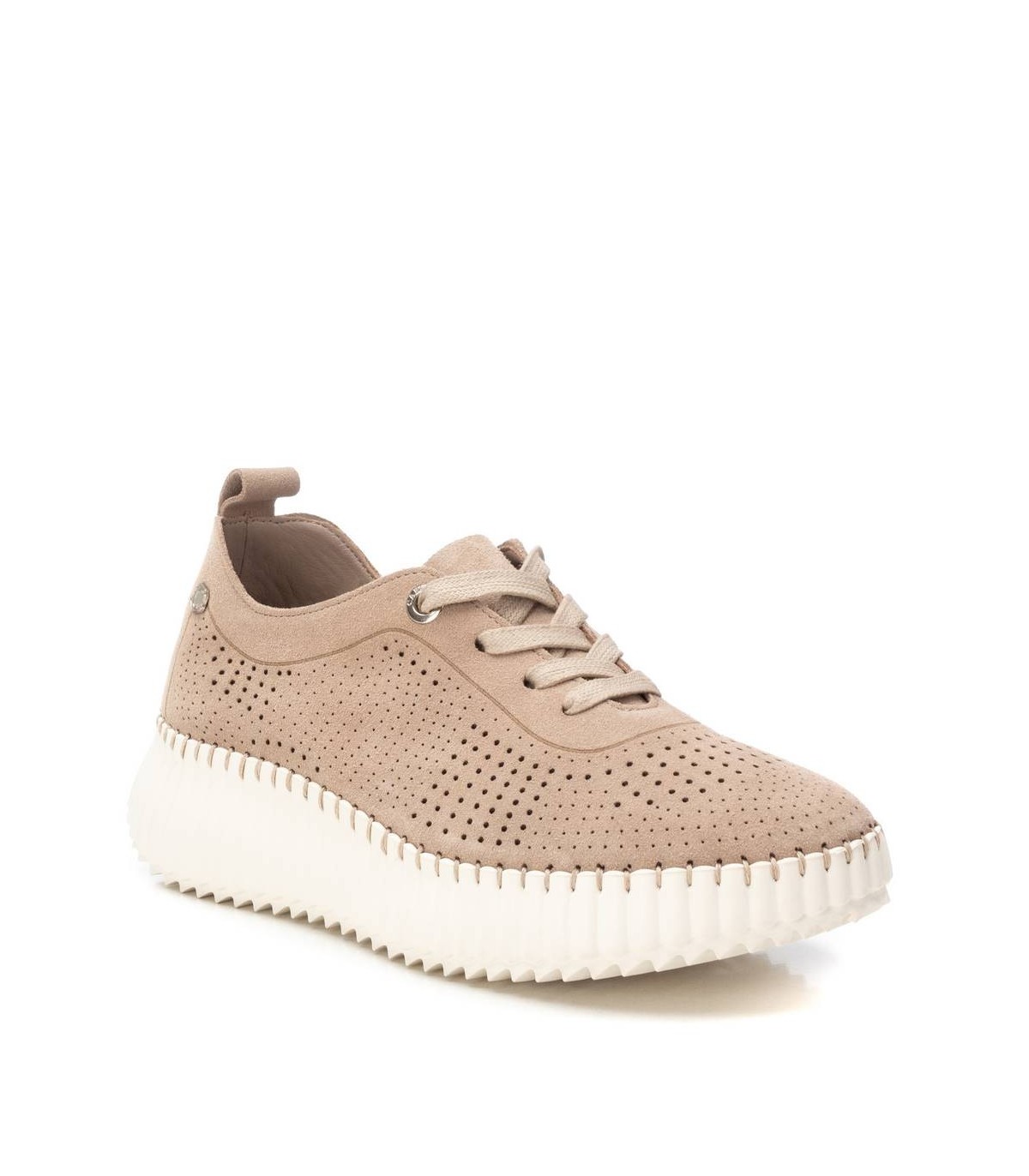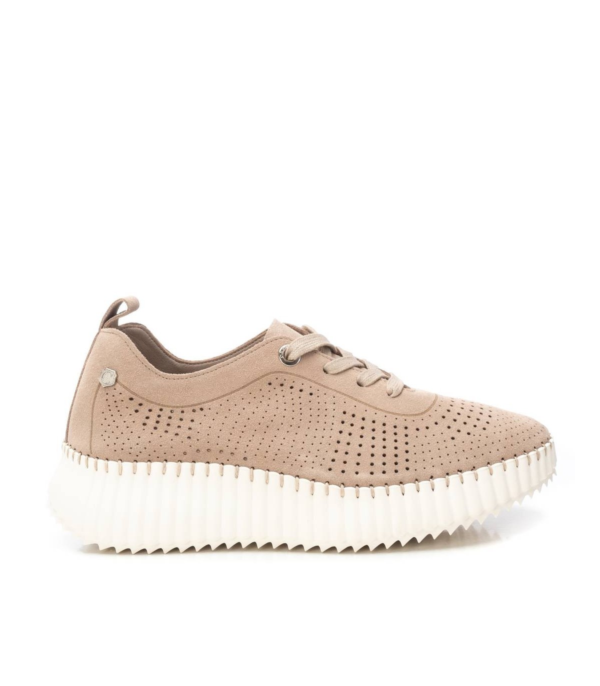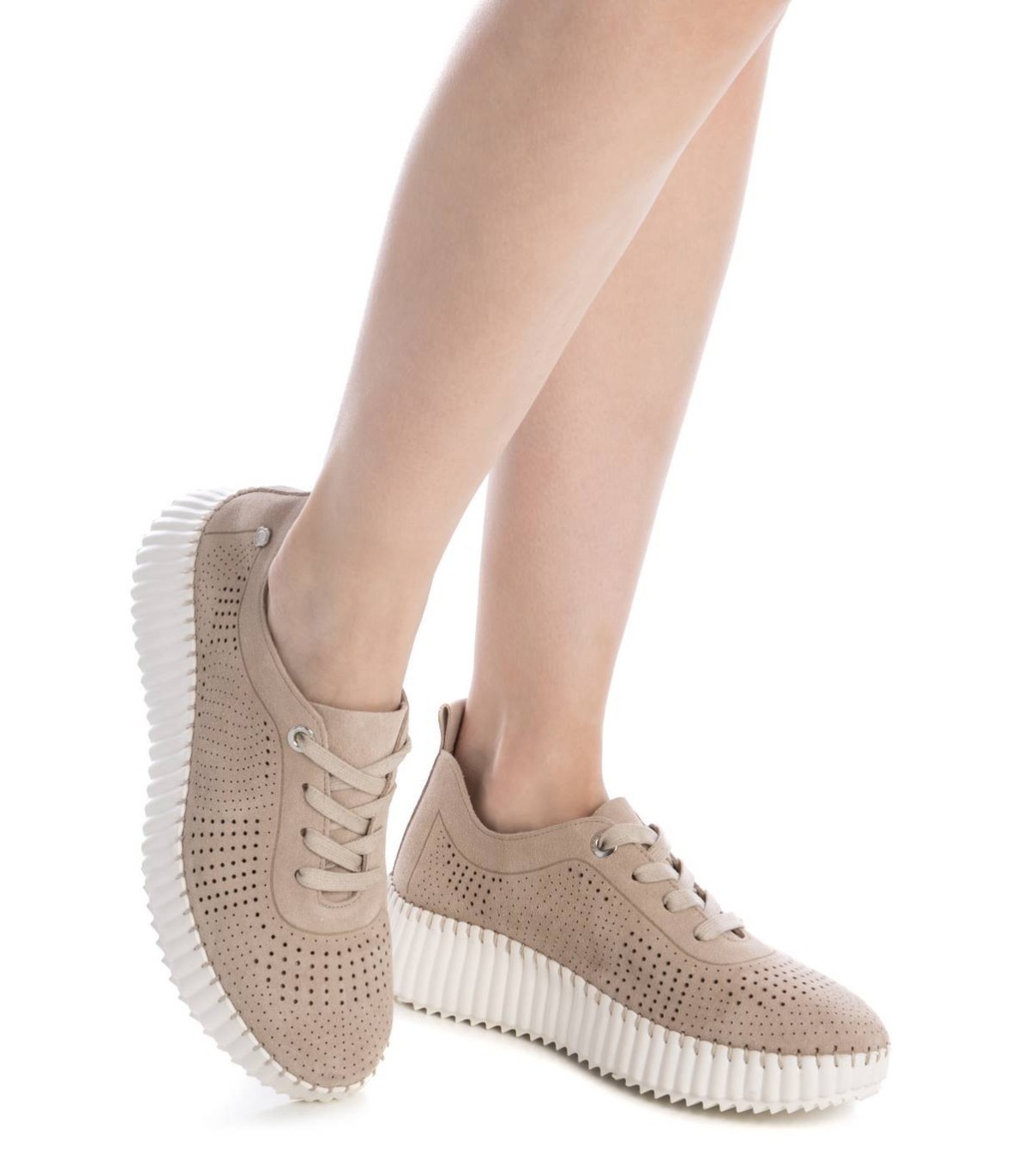 Zapatilla de mujer, de la marca Carmela. Fabricada en serraje de alta calidad. Con plantilla extraíble. Cierre mediante cordones ajustables. Calado en los laterales y puntera. Suela de goma gruesa antideslizante.