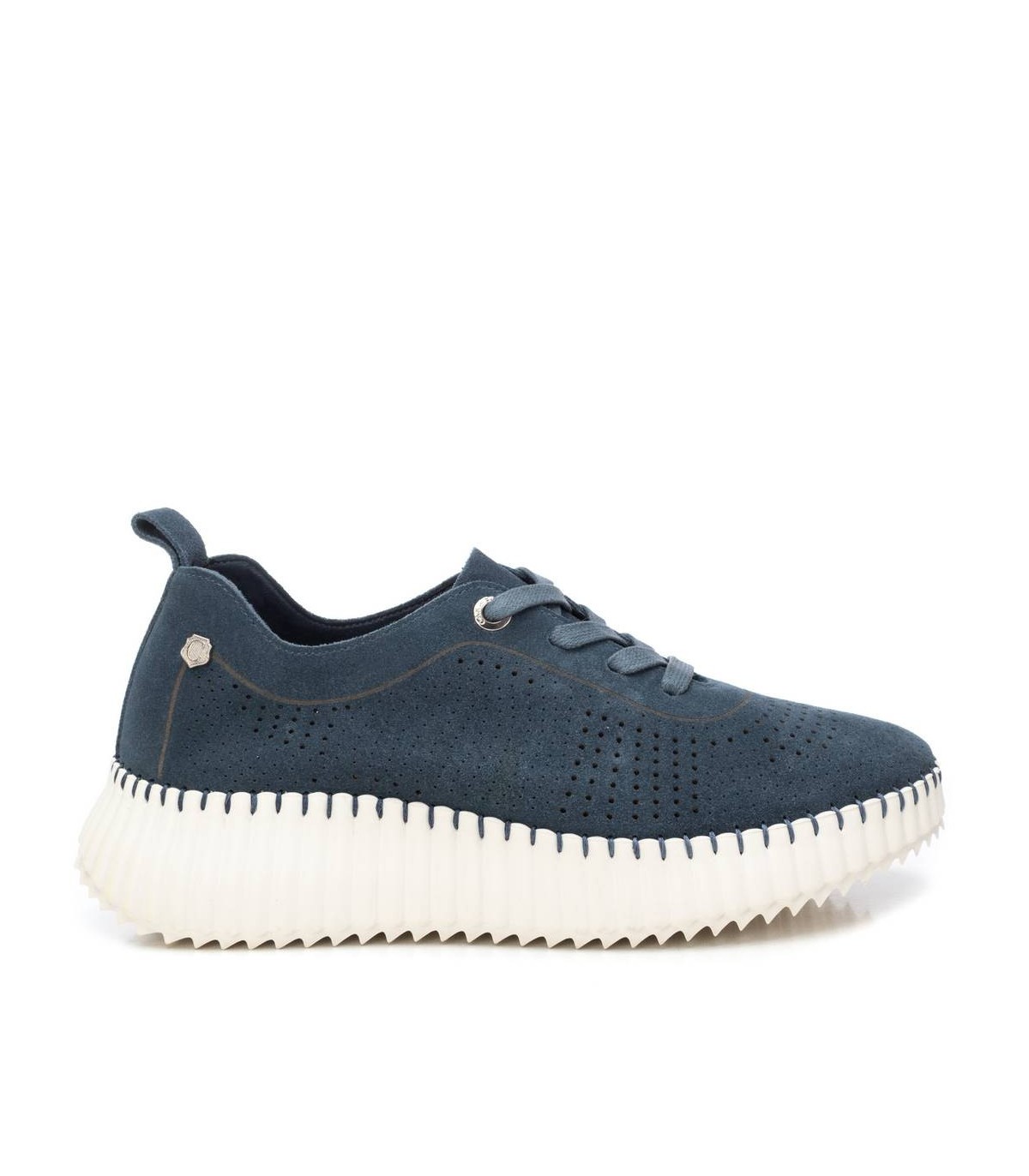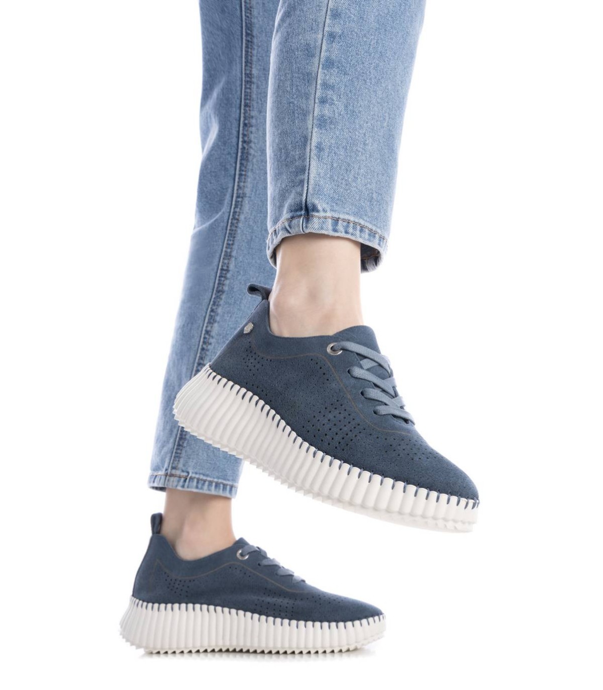 Zapatilla de mujer, de la marca Carmela. Fabricada en serraje de alta calidad. Con plantilla extraíble. Cierre mediante cordones ajustables. Calado en los laterales y puntera. Suela de goma gruesa antideslizante.