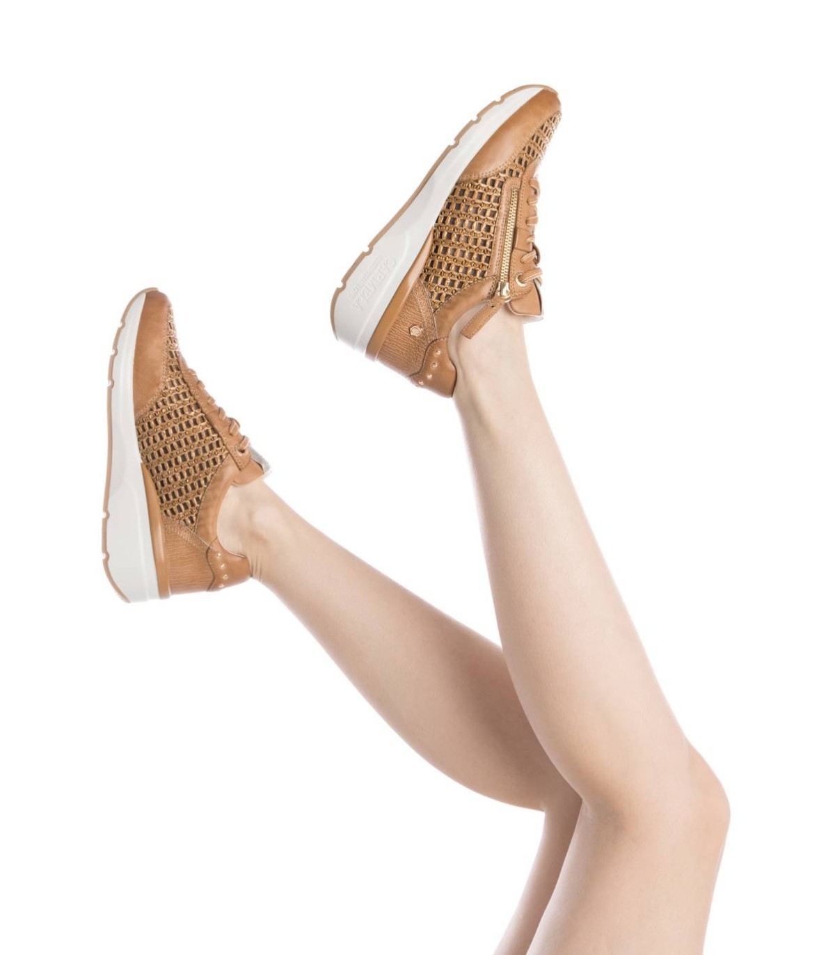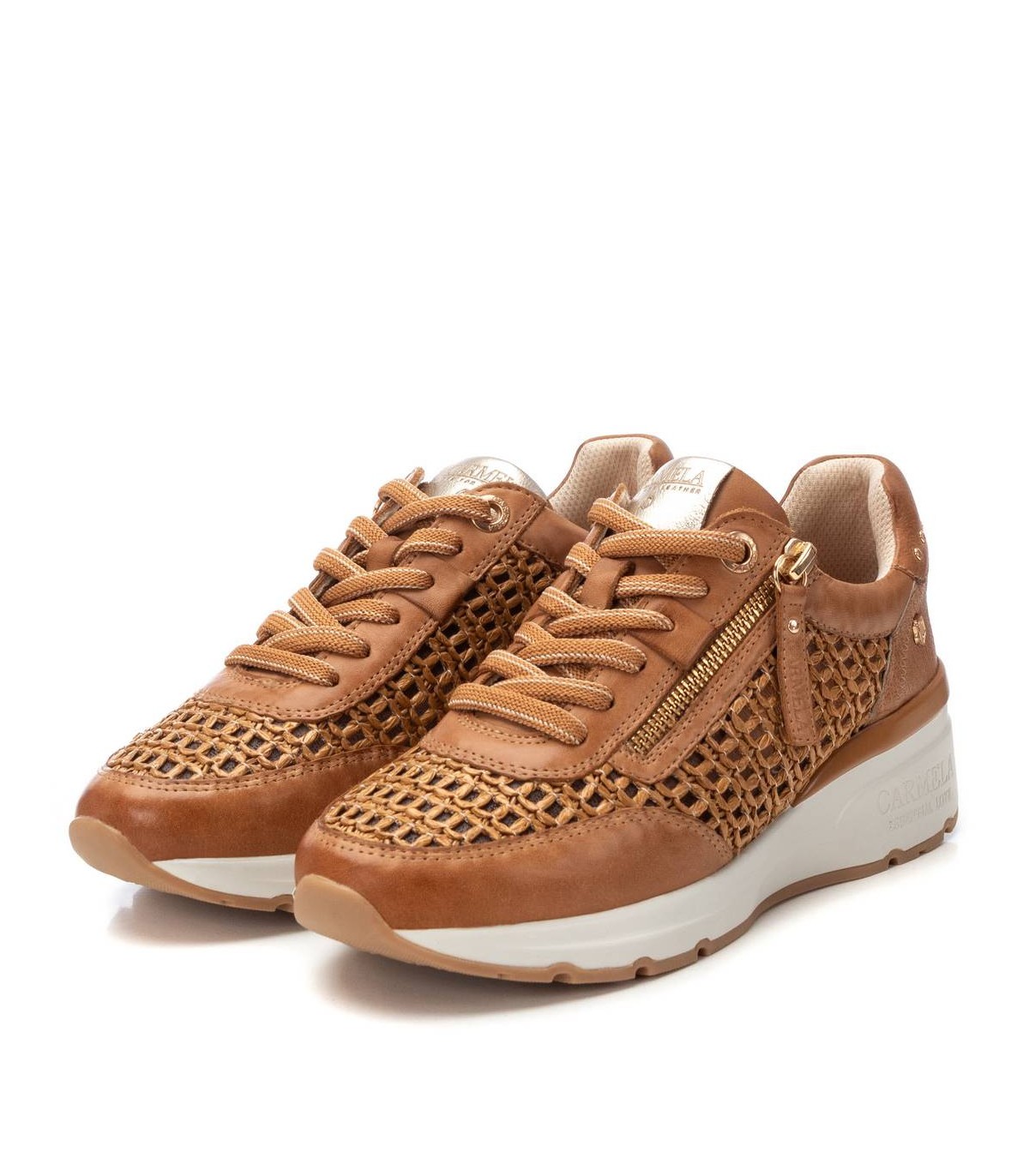 Zapatilla de mujer, de la marca Carmela. Fabricada en piel de alta calidad. Cierre mediante cordones ajustables y cremallera. Con material de rejilla en lateral y puntera. Suela de goma antideslizante. Con plantilla extraíble.