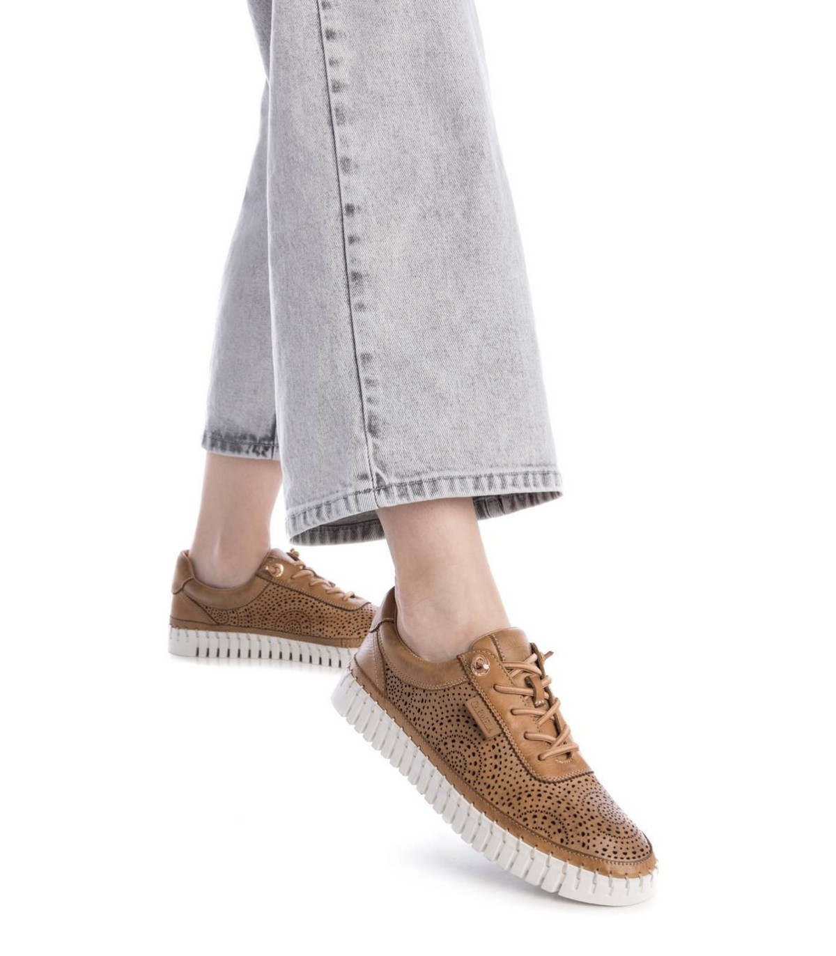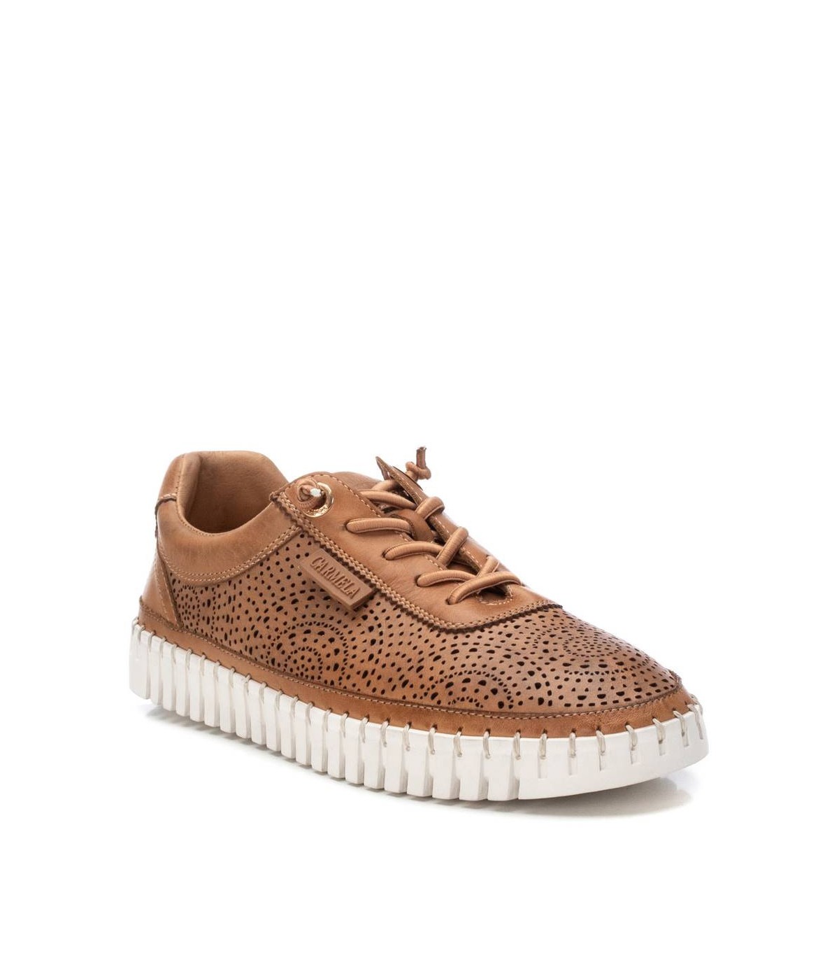 Zapatilla casual de mujer, de la marca Carmela. Fabricada en piel de alta calidad. Diseño calado ideal para esta temporada. Cierre mediante cordonera ajustable. Suela de goma antideslizante. Con plantilla extraíble.