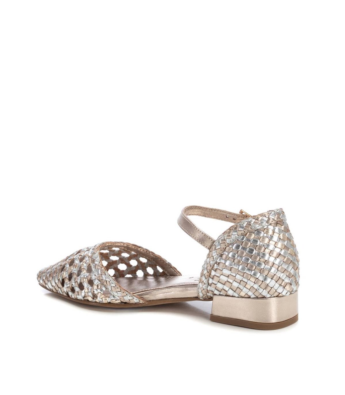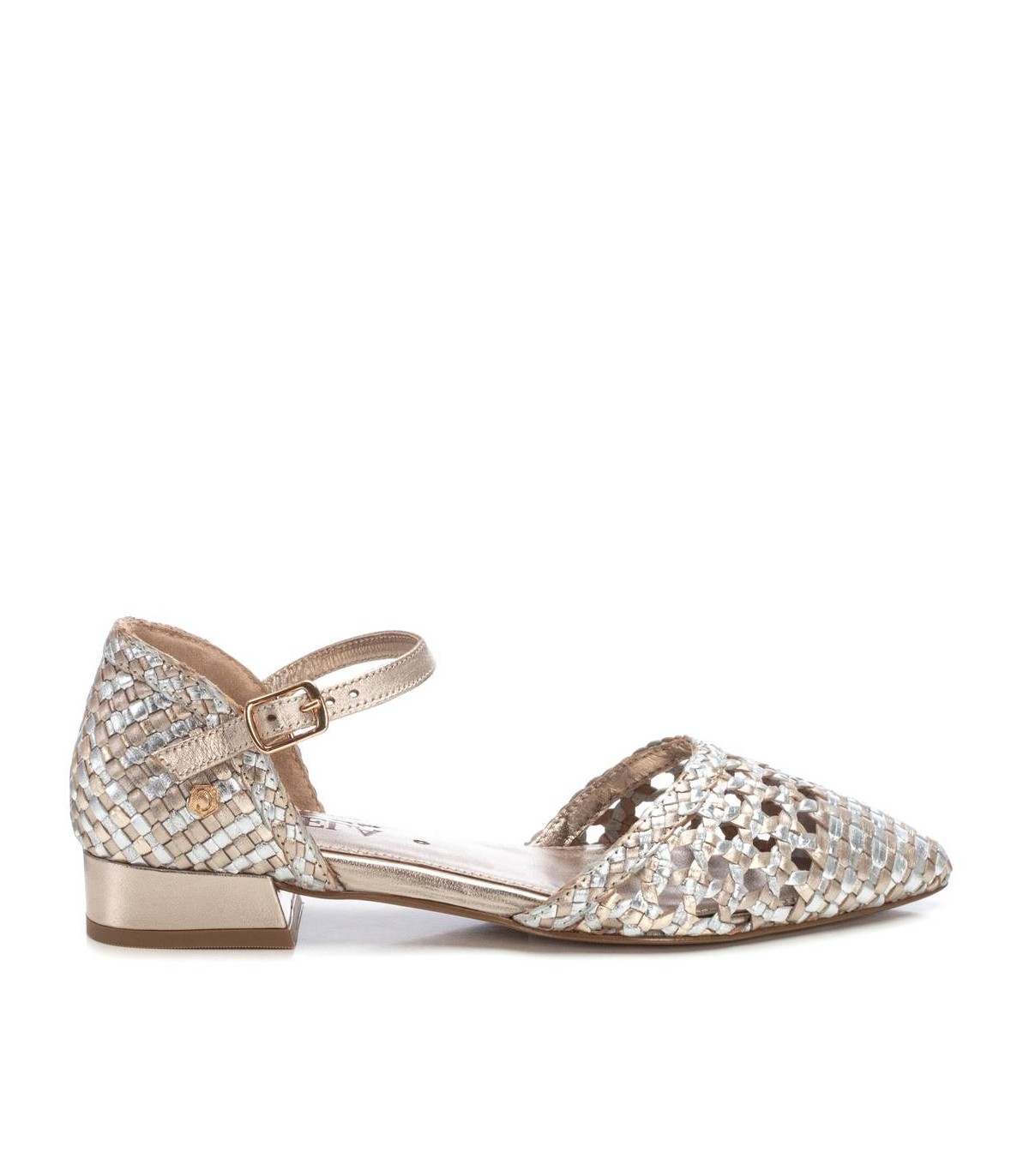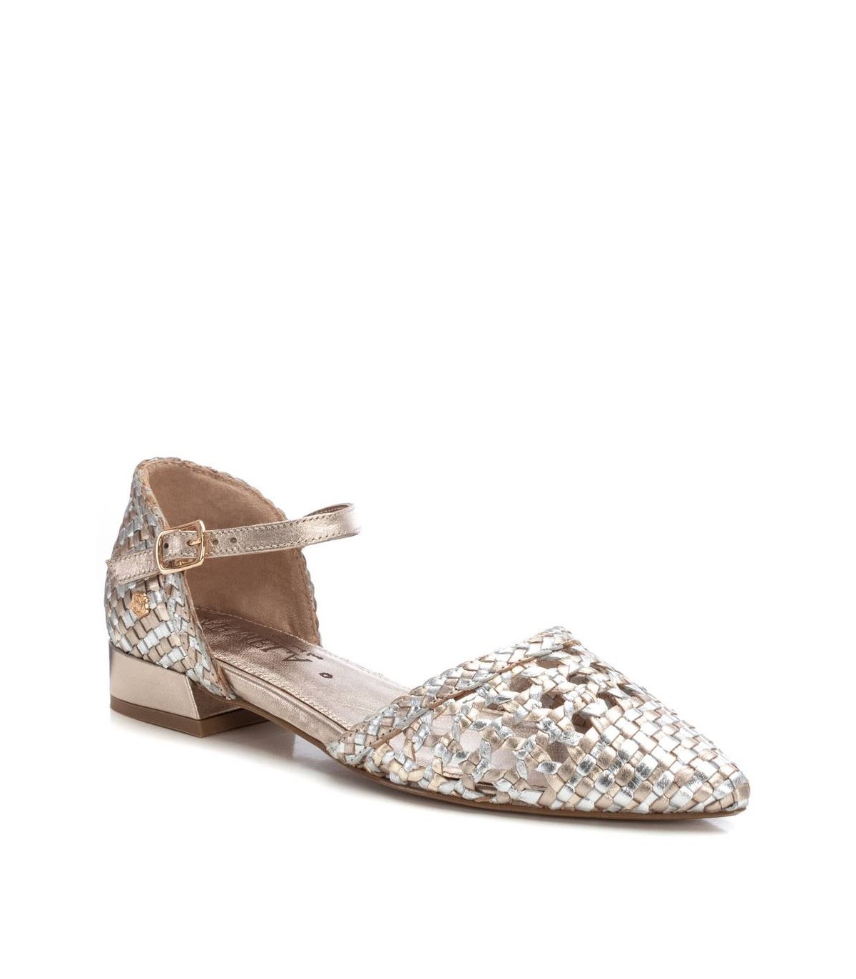Bailarina de mujer, de la marca Carmela. Fabricado en piel de alta calidad con acabado metalizado. Cierre mediante correa al tobillo con hebilla. Suela de goma antideslizante.