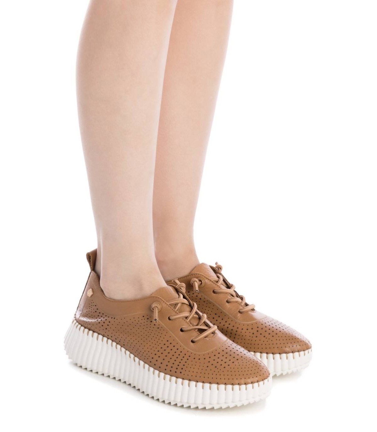 Zapatilla de mujer, marca Carmela. Fabricada en piel de alta calidad. Diseño básico e imprescindible para esta temporada. Gruesa suela de goma antideslizante y cómoda planta. Cierre mediante cordones ajustables.