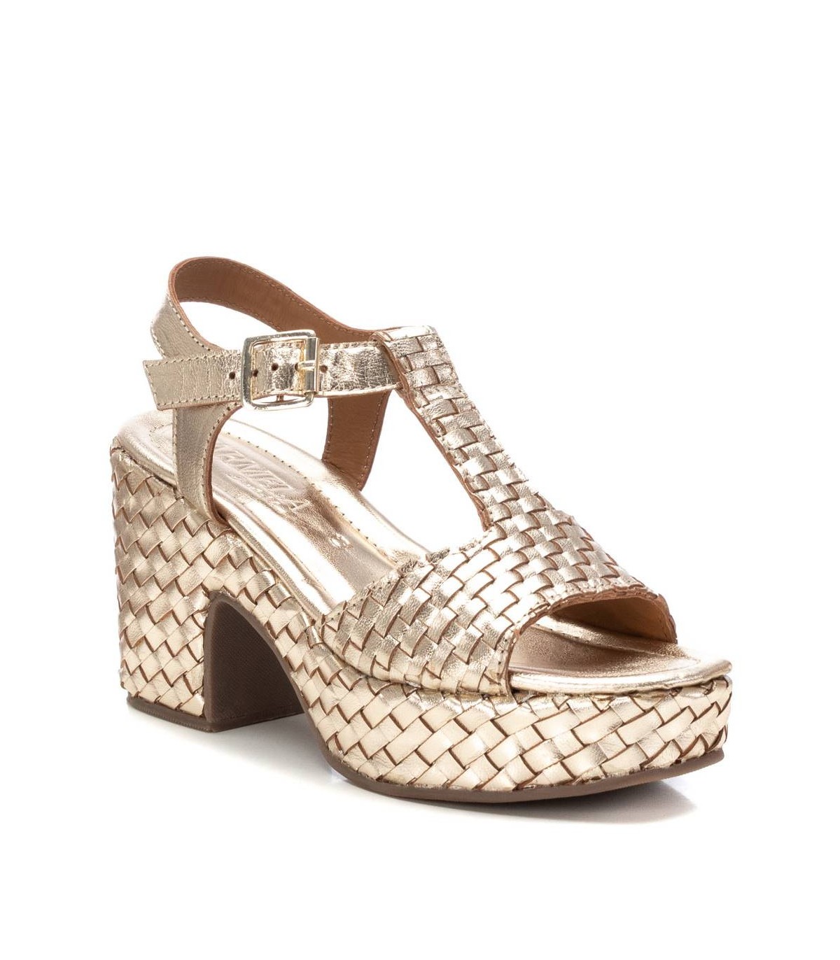 Sandalia de mujer, marca Carmela. Fabricado en piel de alta calidad. Diseño trenzado con sujeción al tobillo cierre mediante hebilla. Tacón ancho de 9 cm, con plataforma delantera para mayor comodidad. Cómoda planta y suela antideslizante.