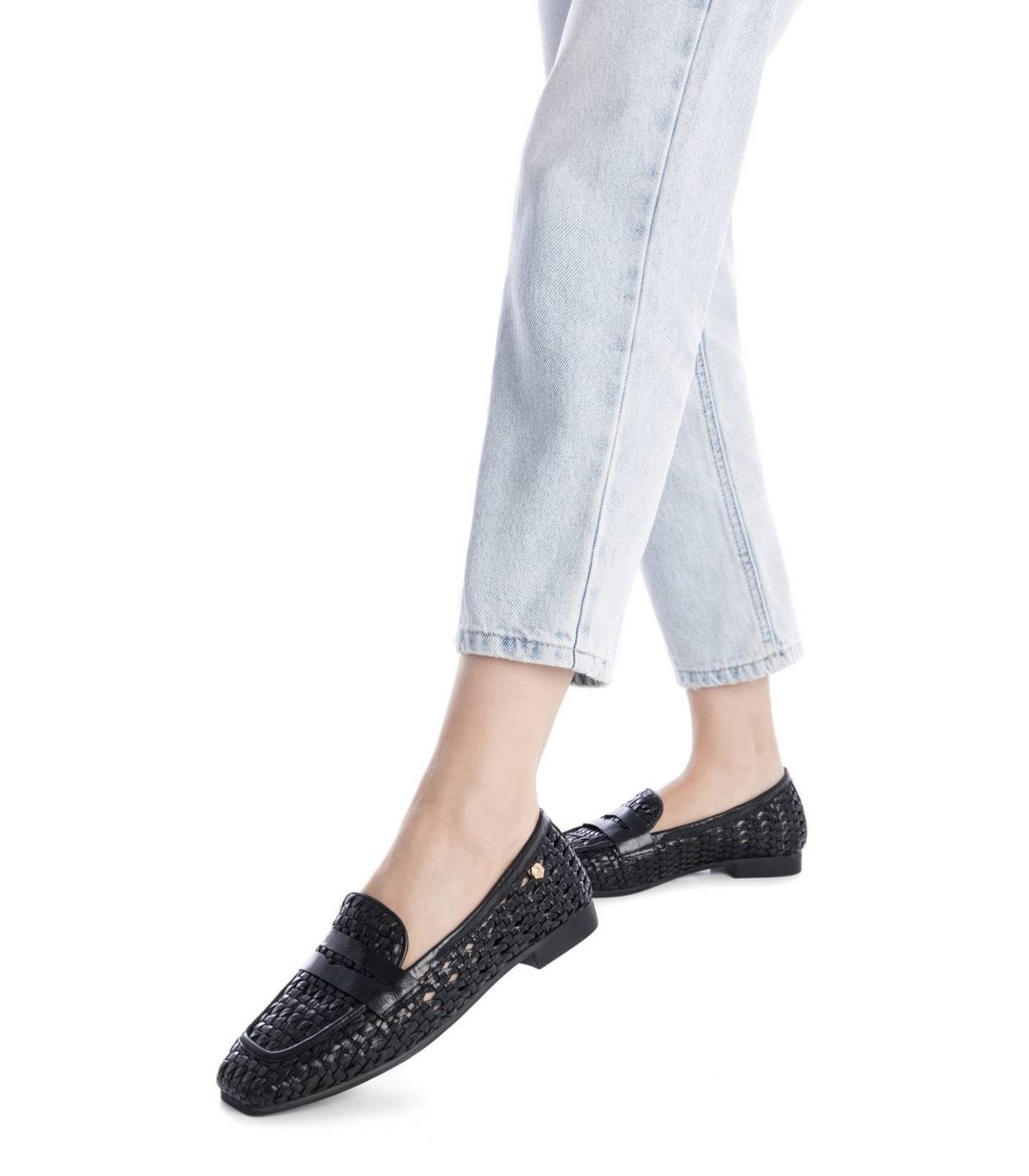 Mocasín de mujer, marca Carmela. Fabricado en piel de alta calidad con diseño entrelazado. Cómoda planta acolchada y suela antideslizante.