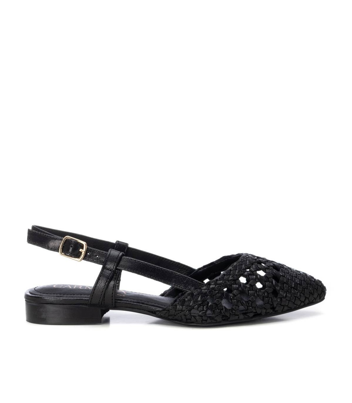 Bailarina de mujer, marca Carmela. Fabricada en piel de alta calidad. Cierre mediante correa al tobillo con hebilla. Suela de goma antideslizante.