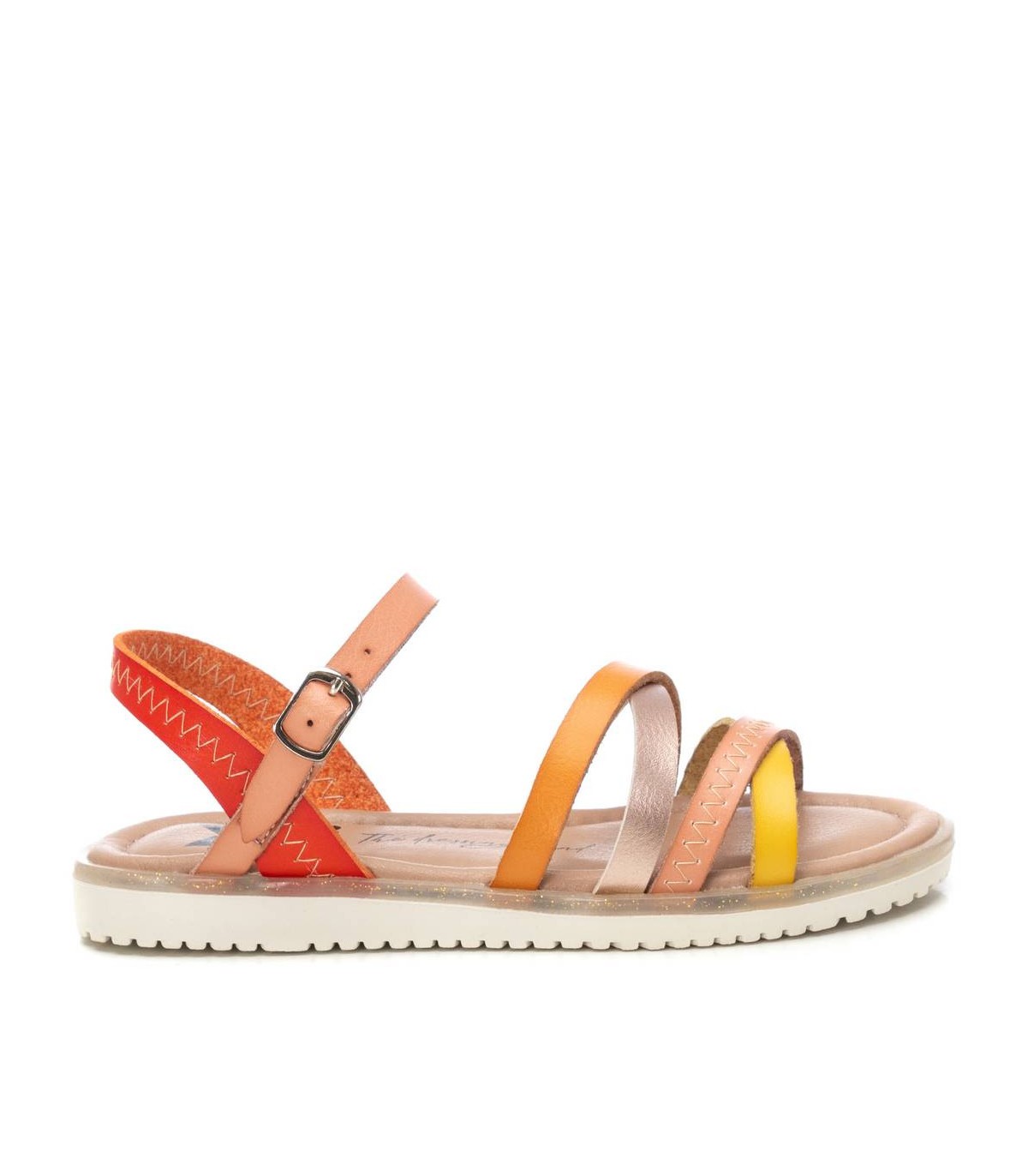 Sandalia de niña, de la marca Xti Kids. Fabricada en material que imita la piel. Cierre mediante hebillas. Cómoda planta y suela de goma antideslizante. Modelo que no puede faltar este verano. Este modelo ha obtenido el certificado vegano por la organización mundial PETA (Organización de los derechos de los animales).
