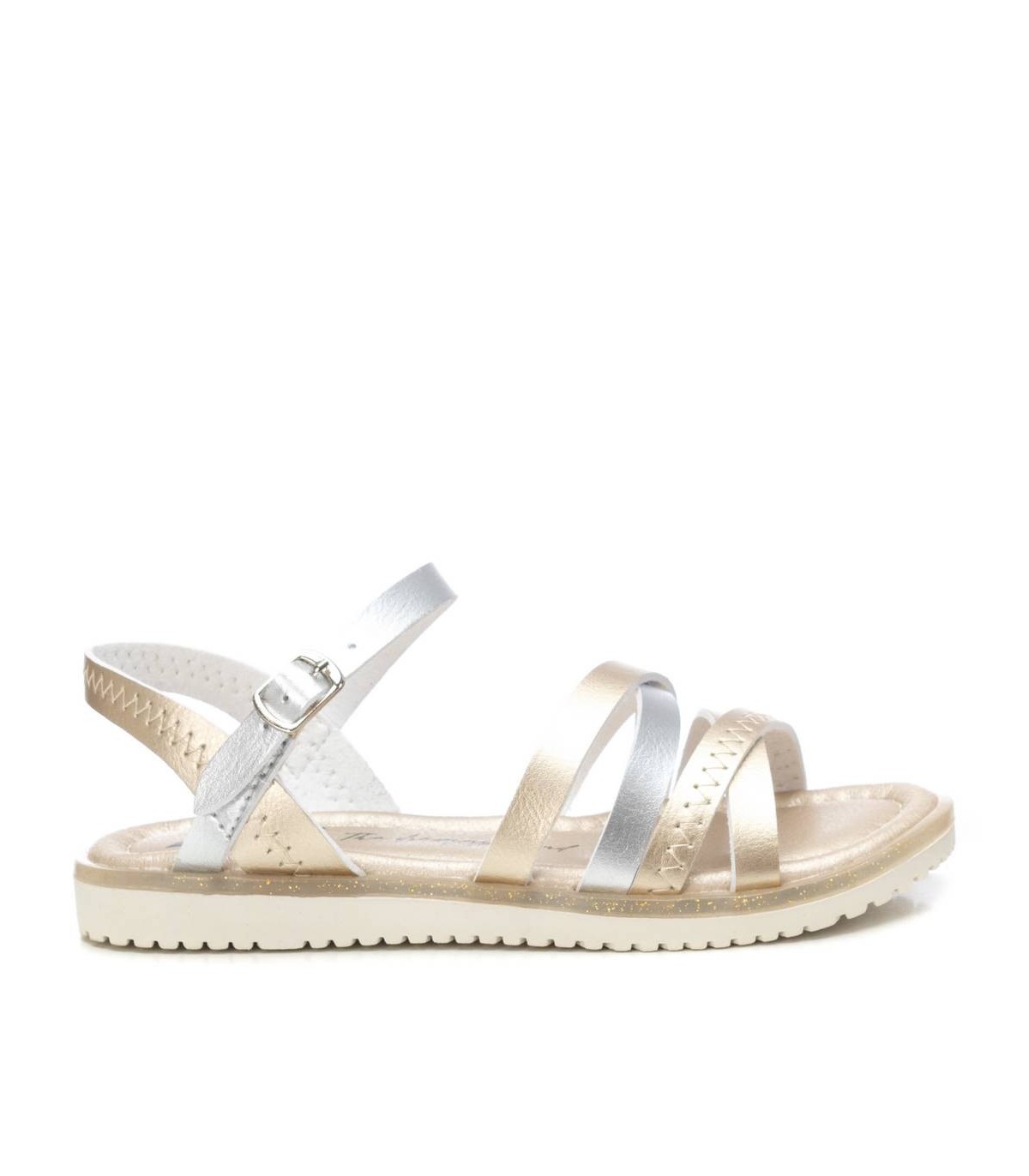 Sandalia de niña, de la marca Xti Kids. Fabricada en material que imita la piel. Cierre mediante hebillas. Cómoda planta y suela de goma antideslizante. Modelo que no puede faltar este verano. Este modelo ha obtenido el certificado vegano por la organización mundial PETA (Organización de los derechos de los animales).