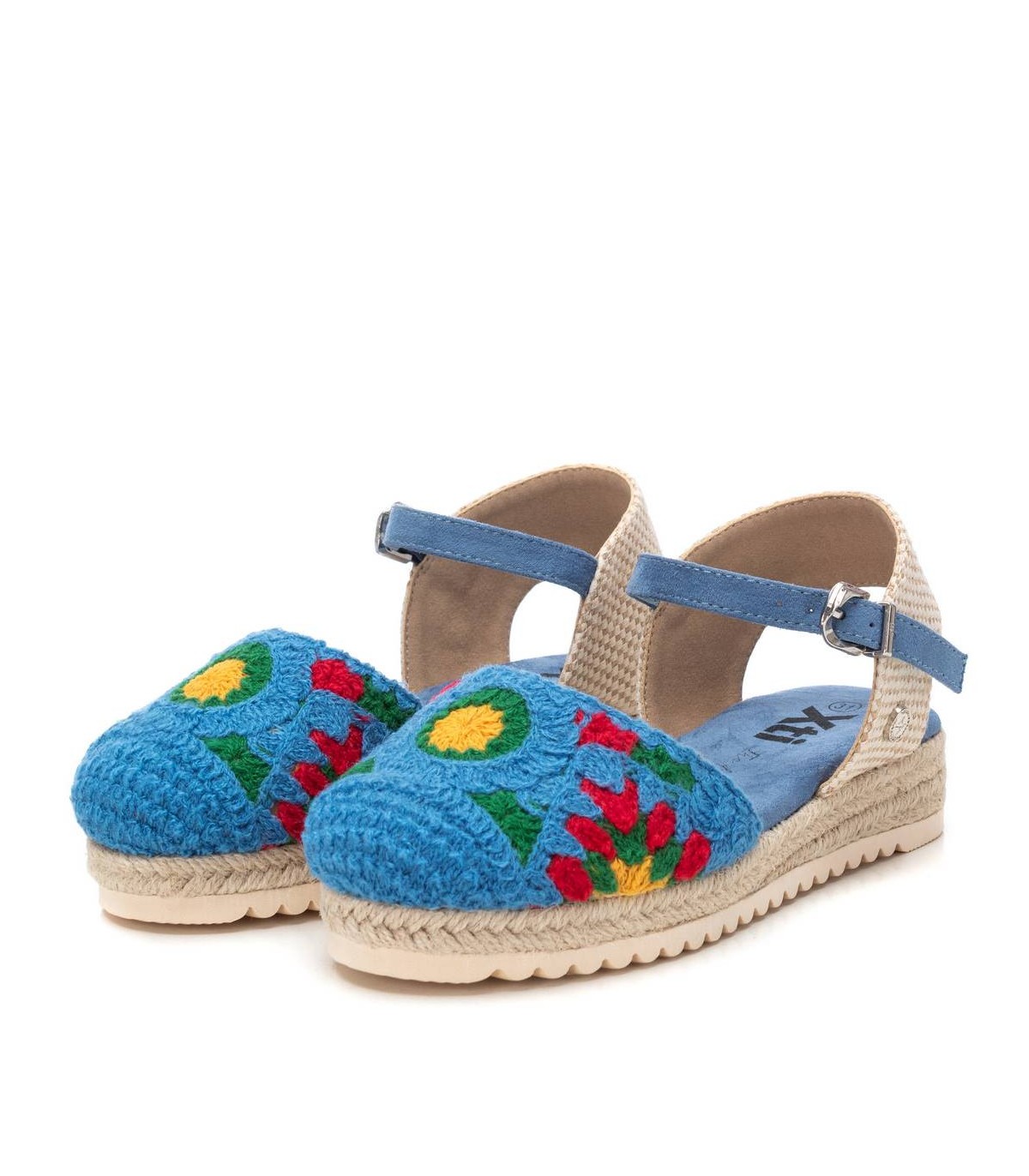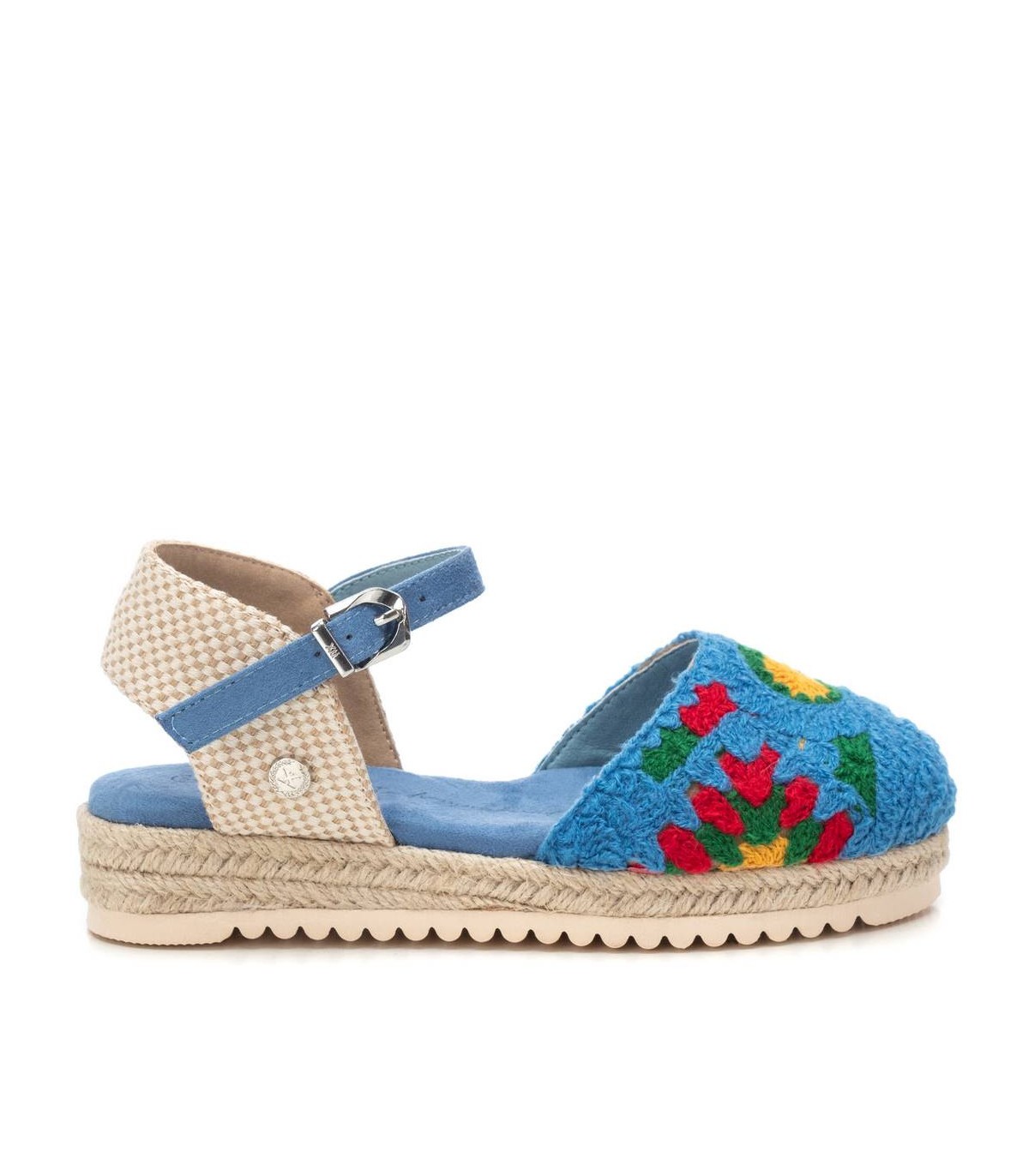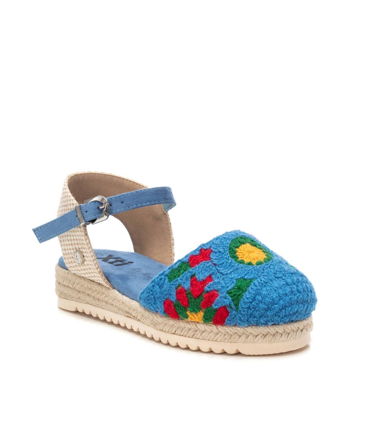 Zapato de niña, de la marca Xti Kids. Fabricada en material textil. Modelo colorido para esta temporada, fácil de combinar. Cierre mediante hebilla. Cómoda planta y suela de goma antideslizante. Este modelo ha obtenido el certificado vegano por la organización mundial PETA (Organización de los derechos de los animales).