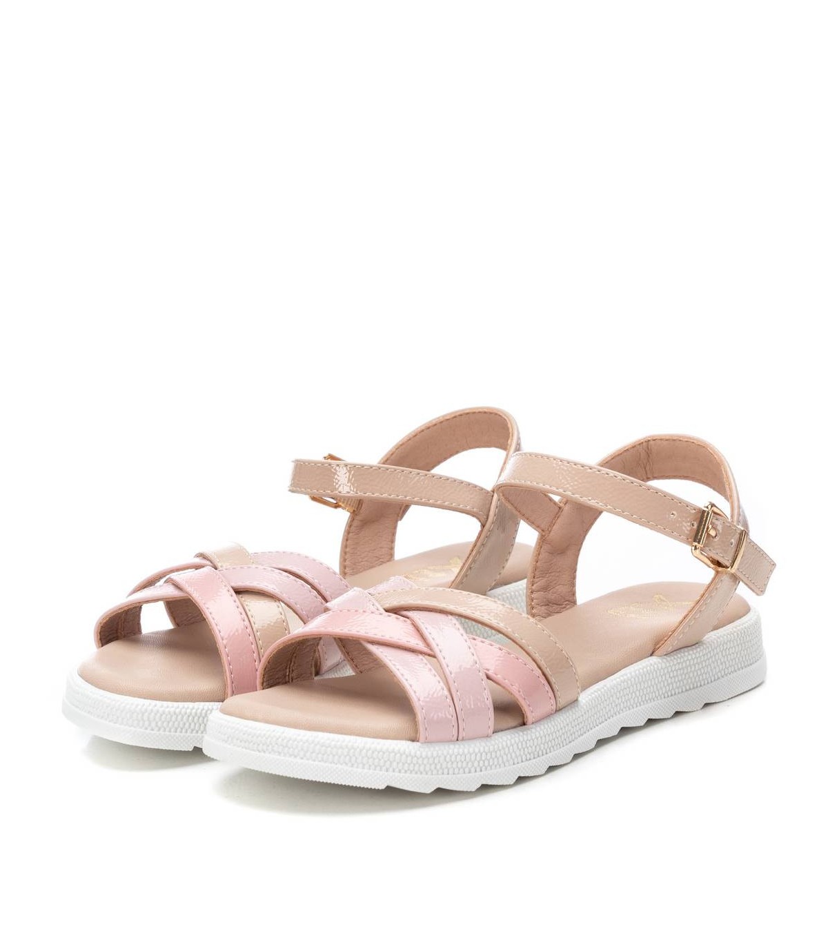 Sandalia de niña, de la marca Xti Kids. Fabricada en charol. Cómoda bonita y clásica, un modelo indispensable para el armario de la peque de casa. Suela de goma antideslizante. Este modelo ha obtenido el certificado vegano por la organización mundial PETA (Organización de los derechos de los animales).