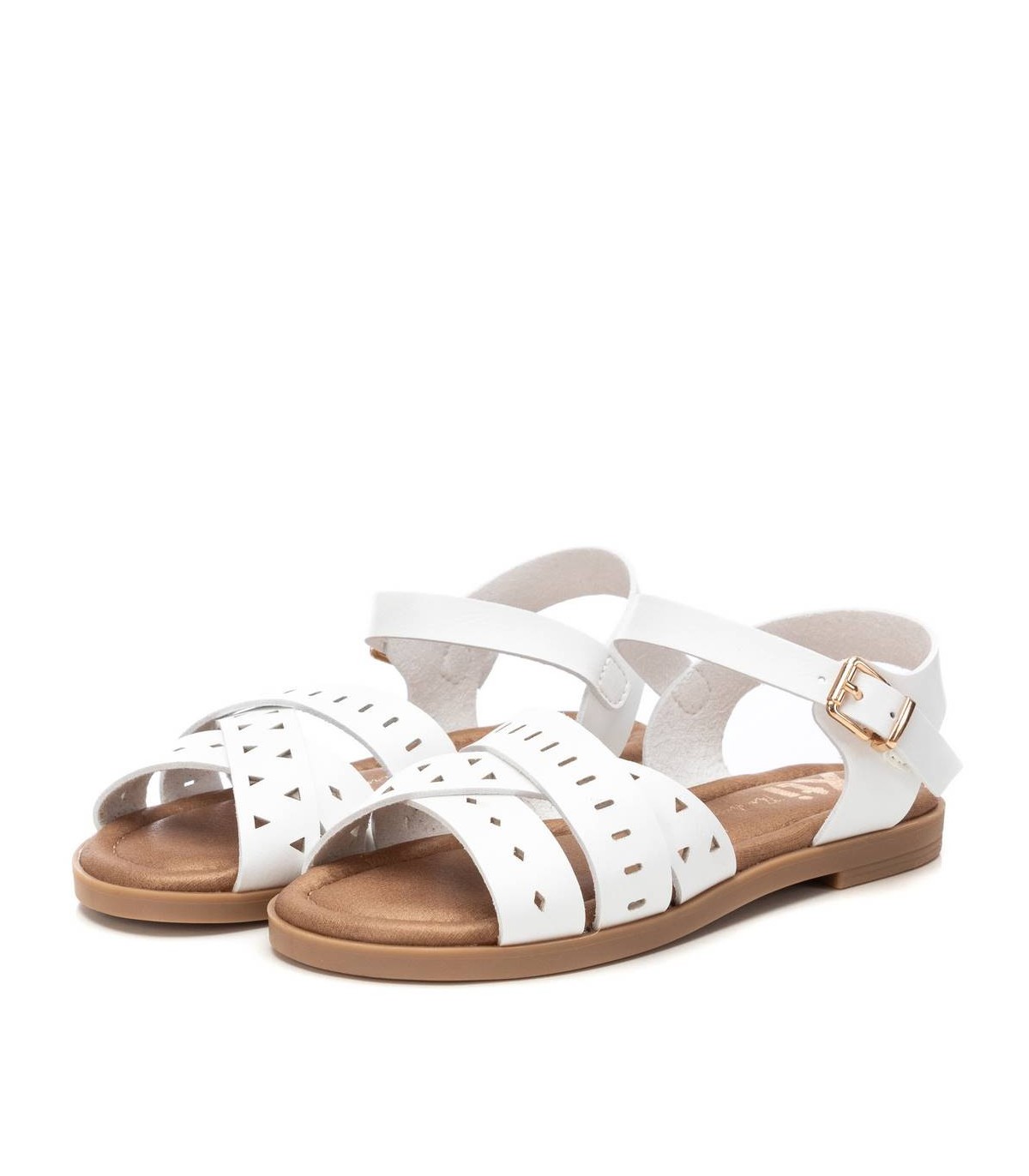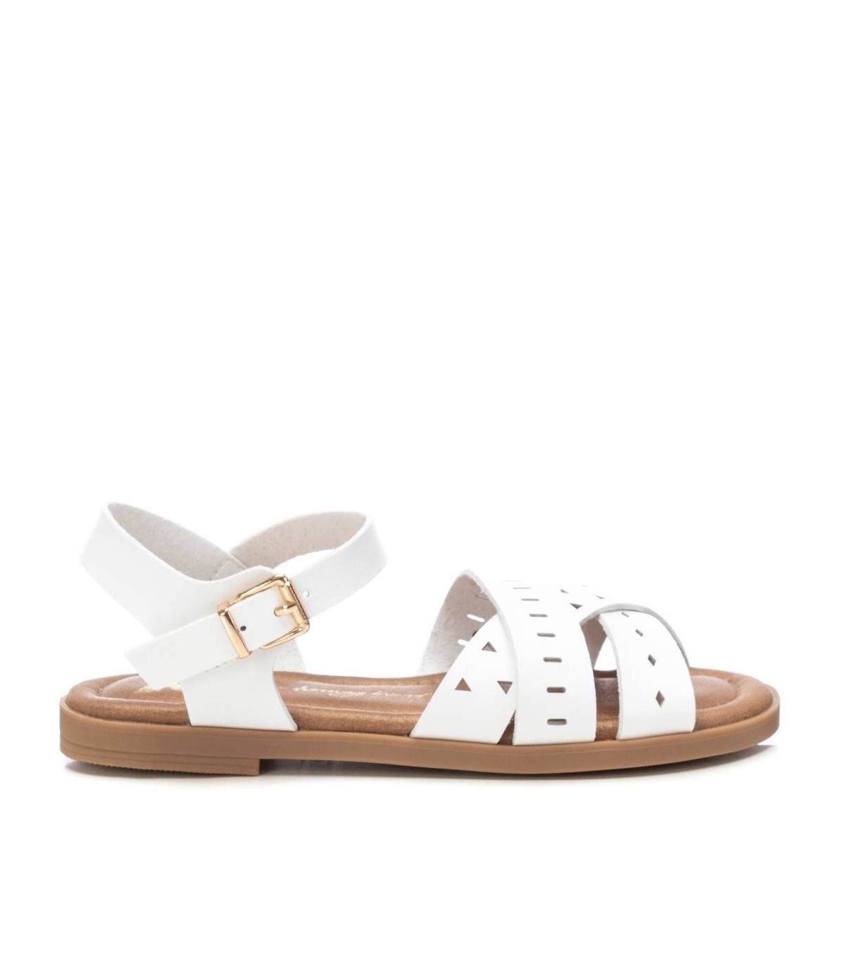 Sandalia de niña, de la marca Xti Kids. Fabricada en material que imita la piel. Con su diseño de pala entrelazada y pulsera al tobillo con hebilla ajustable, se convertirá en un imprescindible de armario de la más peque de la casa, cómoda planta y suela de goma antideslizante. Este modelo ha obtenido el certificado vegano por la organización mundial PETA (Organización de los derechos de los animales).