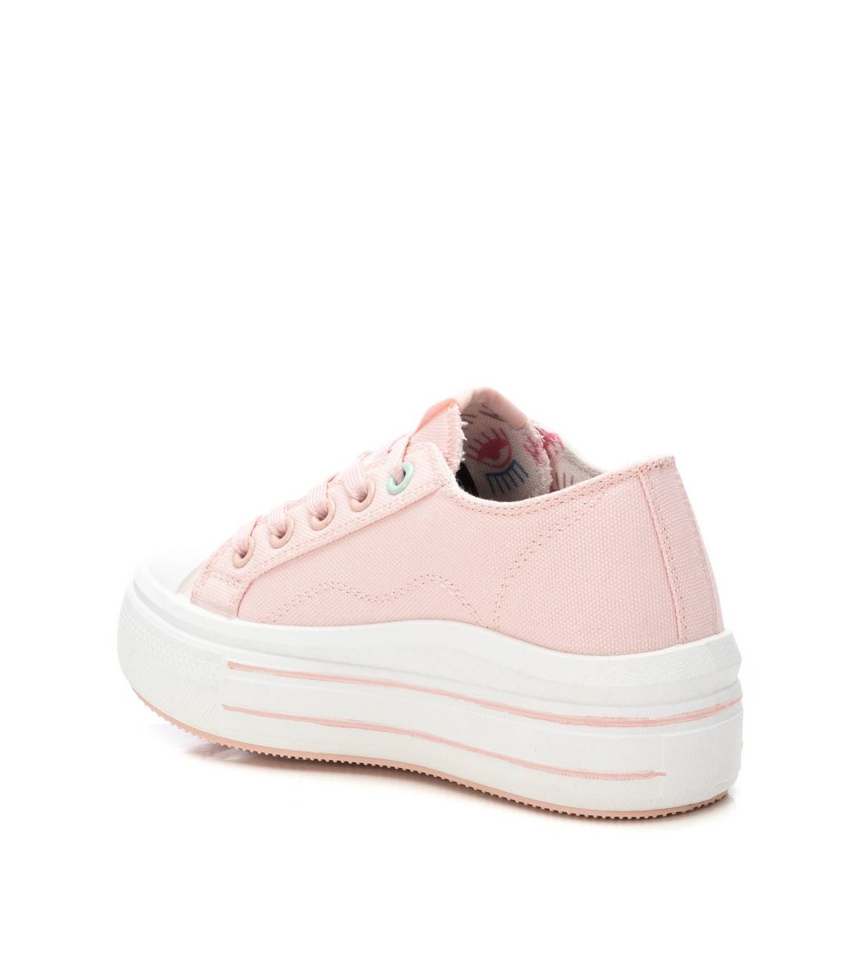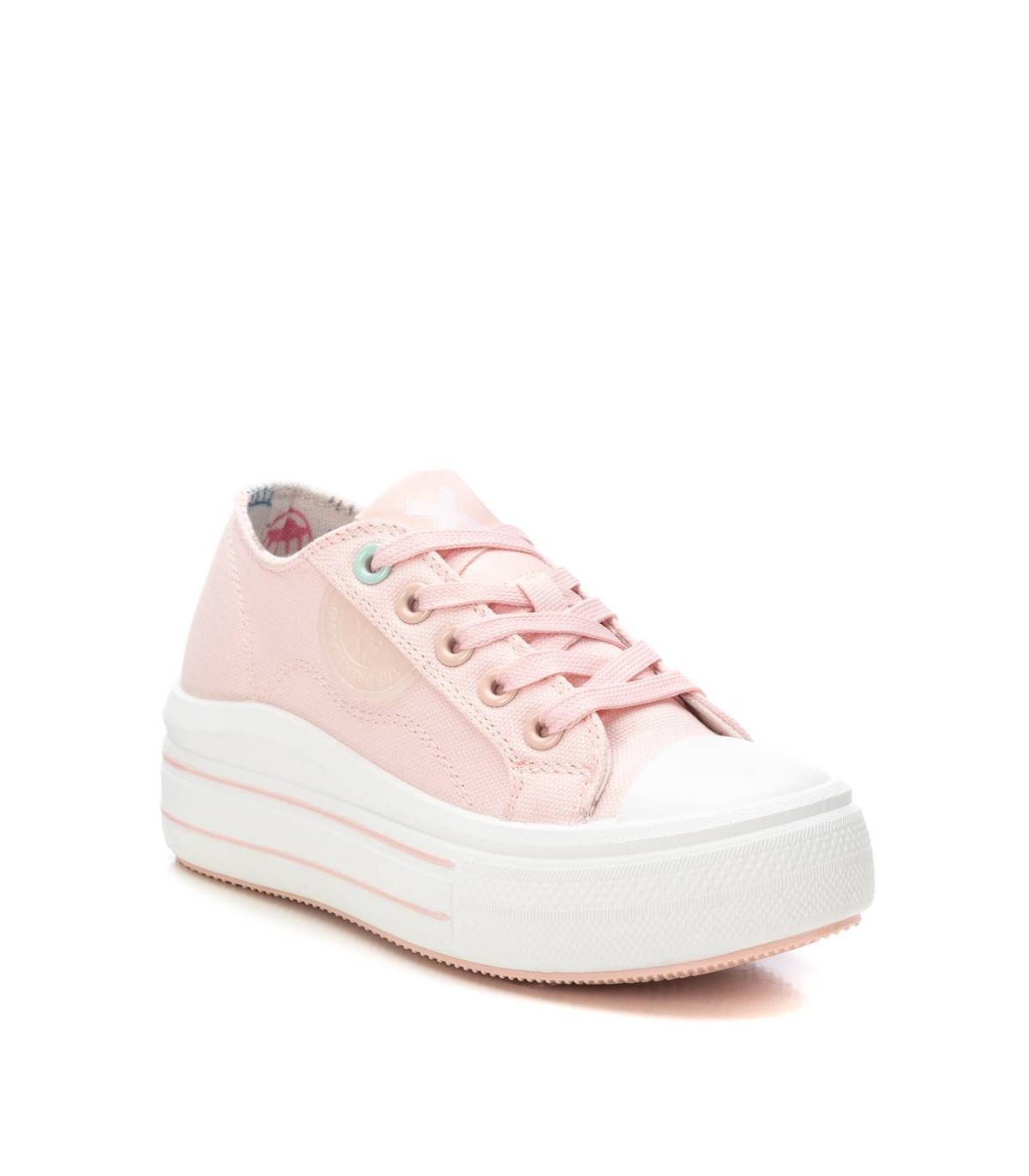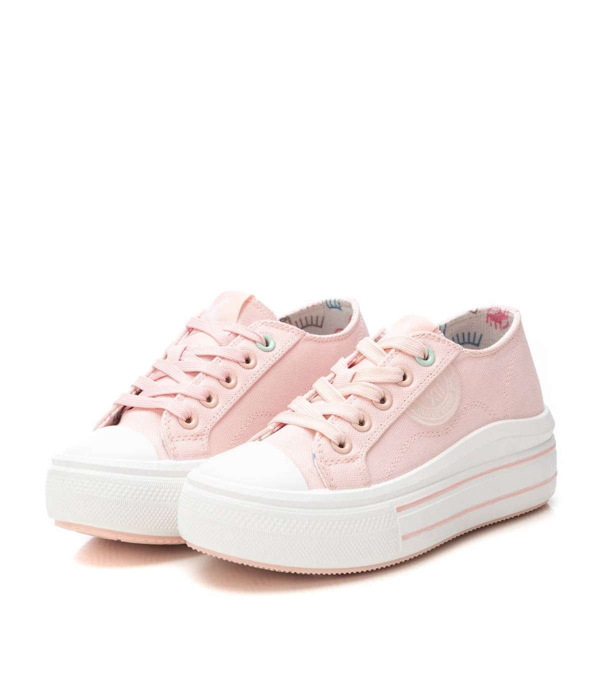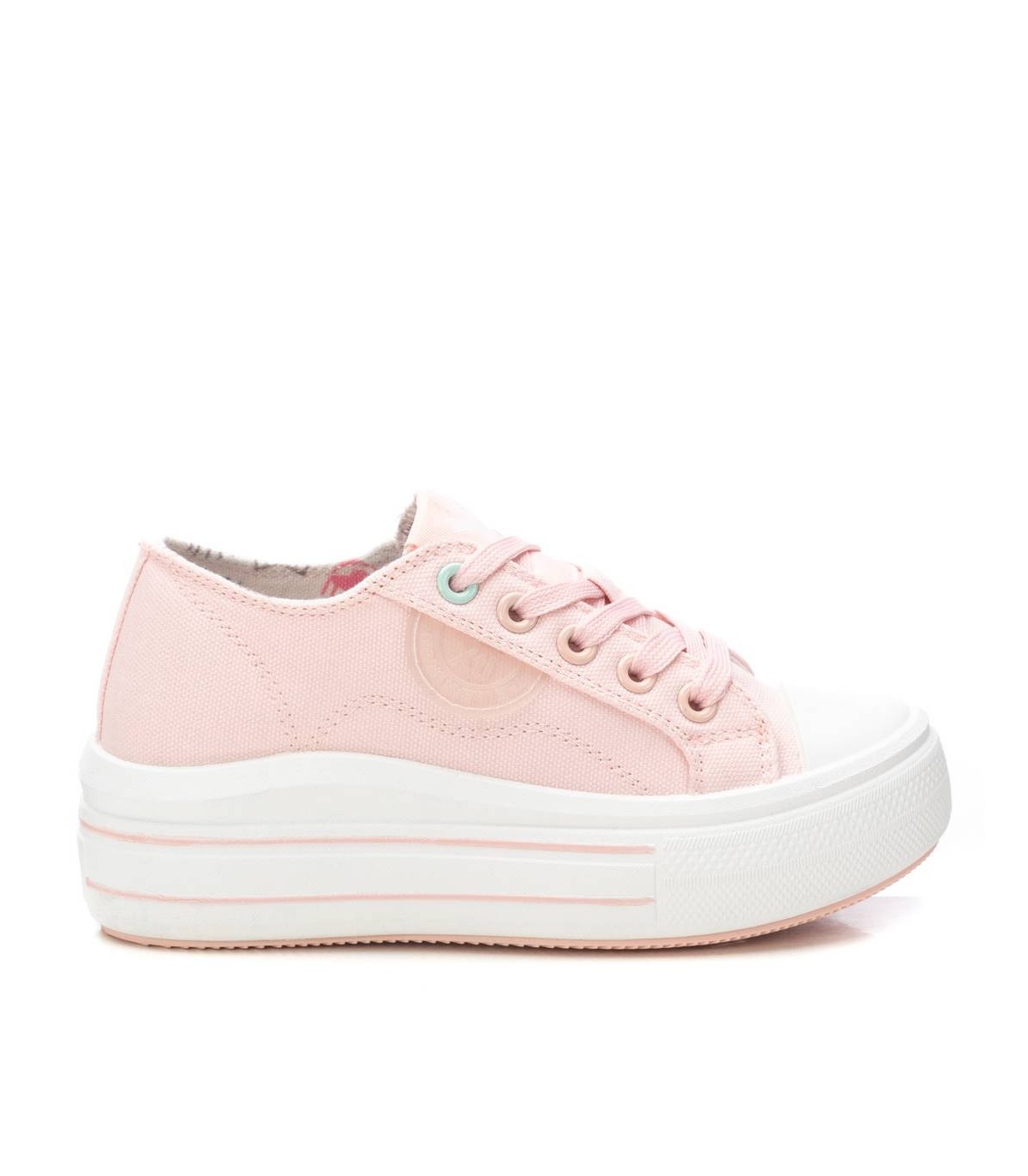 Zapatilla de niña de la marca Xti Kids. Fabricada de lona metalizada. Cierre con cordones ajustables. Diferentes colores para acompañarte esta temporada. Tirador trasero para facilitar la puesta. Piso con volumen, cómoda planta y suela grueso de goma antideslizante. Este modelo ha obtenido el certificado vegano por la organización mundial PETA (Organización de los derechos de los animales).