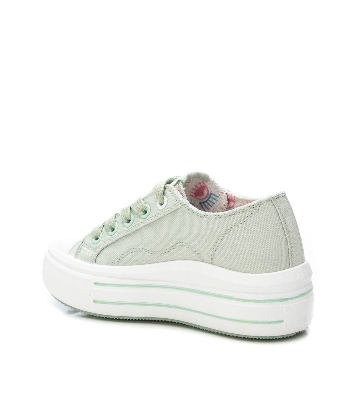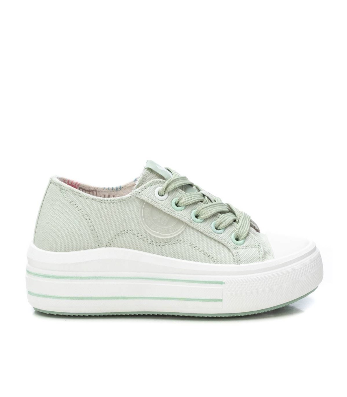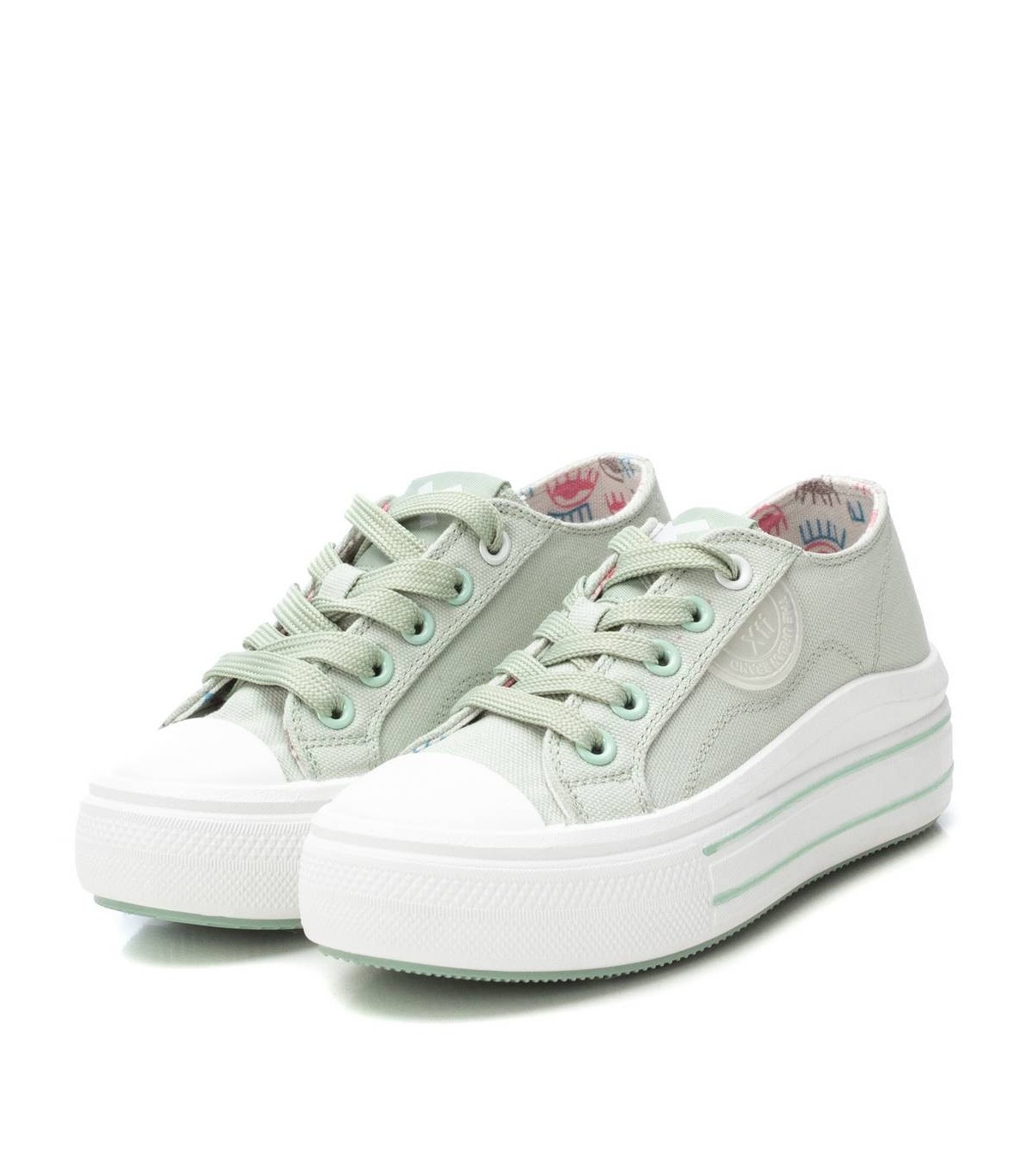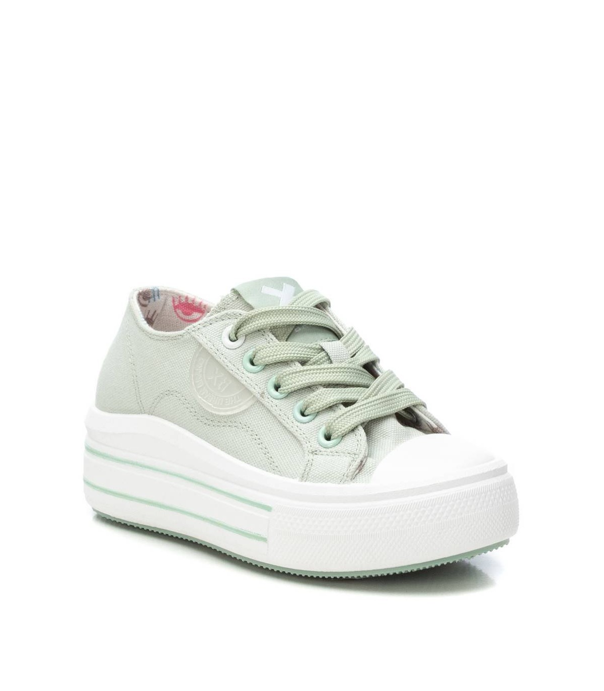 Zapatilla de niña de la marca Xti Kids. Fabricada de lona metalizada. Cierre con cordones ajustables. Diferentes colores para acompañarte esta temporada. Tirador trasero para facilitar la puesta. Piso con volumen, cómoda planta y suela grueso de goma antideslizante. Este modelo ha obtenido el certificado vegano por la organización mundial PETA (Organización de los derechos de los animales).