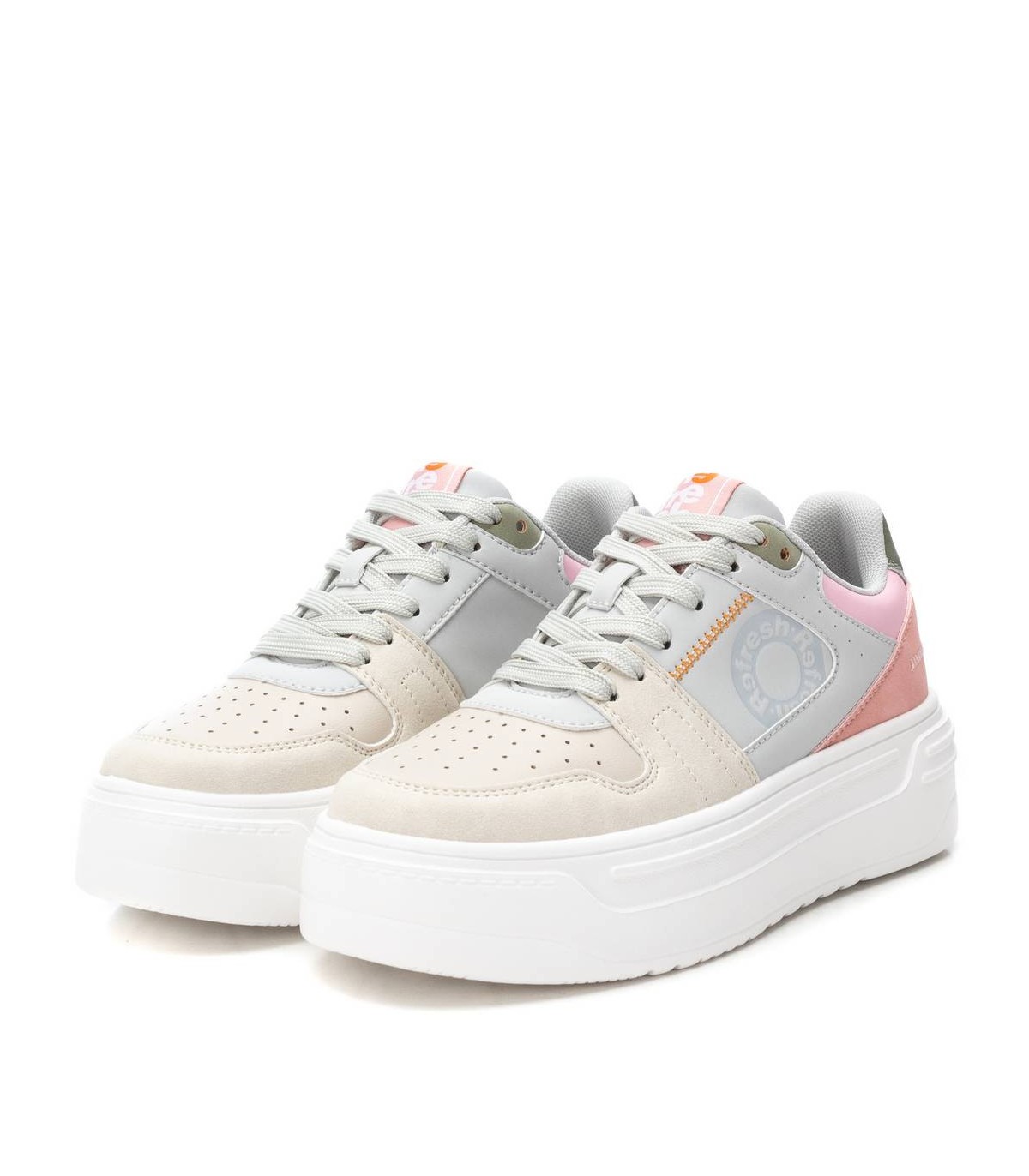 Zapatilla marca Refresh. Fabricada en una combinación de materiales que imitan a la piel. Cierre mediante cordones regulables. Modelo multicolor estilo basket en tendencia esta temporada. Con plantilla extraíble. Cómoda suela volumen de goma antideslizante. Este modelo ha obtenido el certificado vegano por la organización mundial PETA (Organización de los derechos de los animales).