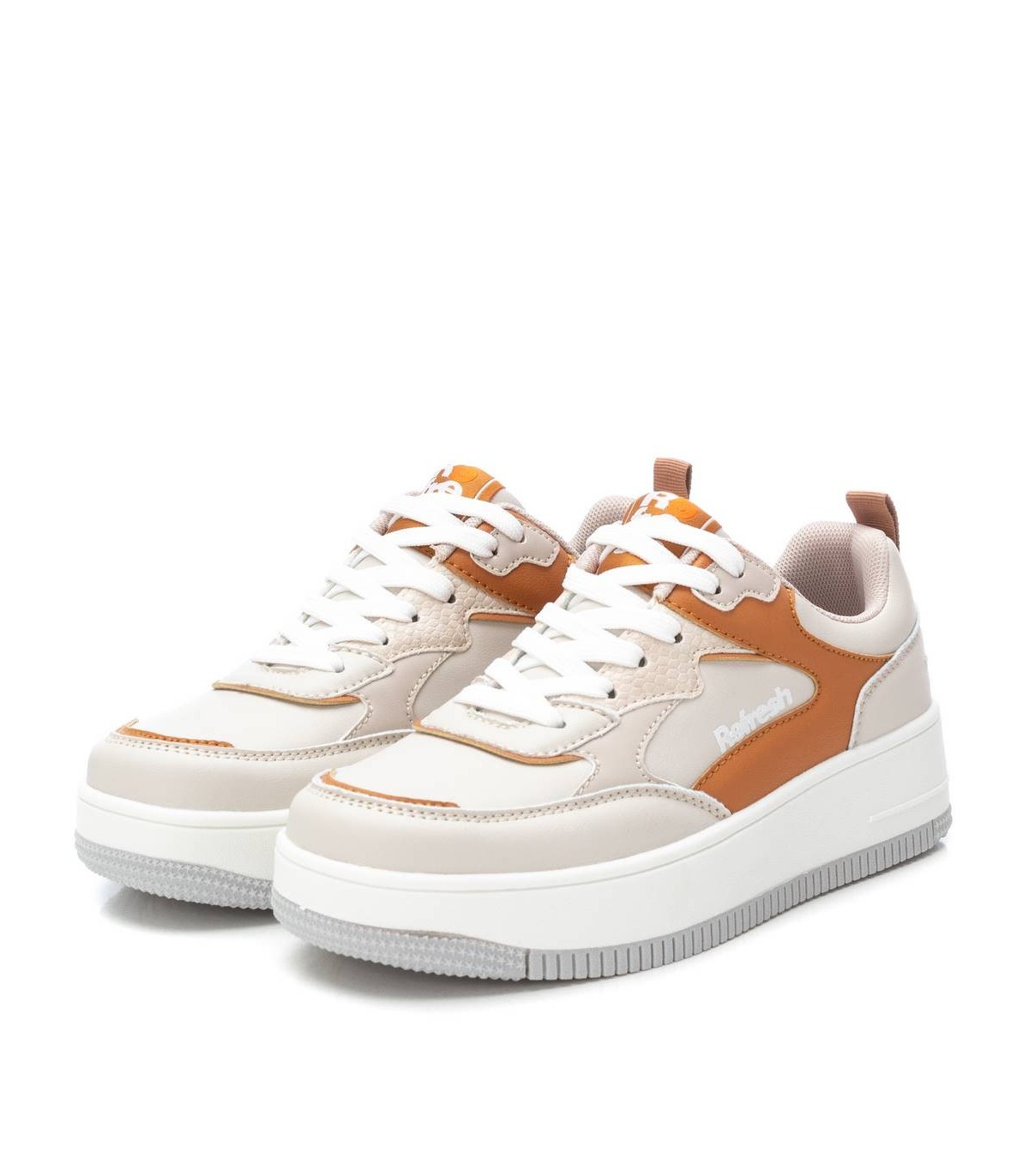 Zapatilla de mujer, de la marca Refresh. Fabricada en material que imita la piel. Cierre mediante cordones ajustables. Tirador trasero para facilitar la puesta. Con plantilla extraíble. Modelo multicolor estilo basket en tendencia esta temporada. Cómoda suela volumen de goma antideslizante. Este modelo ha obtenido el certificado vegano por la organización mundial PETA (Organización de los derechos de los animales).