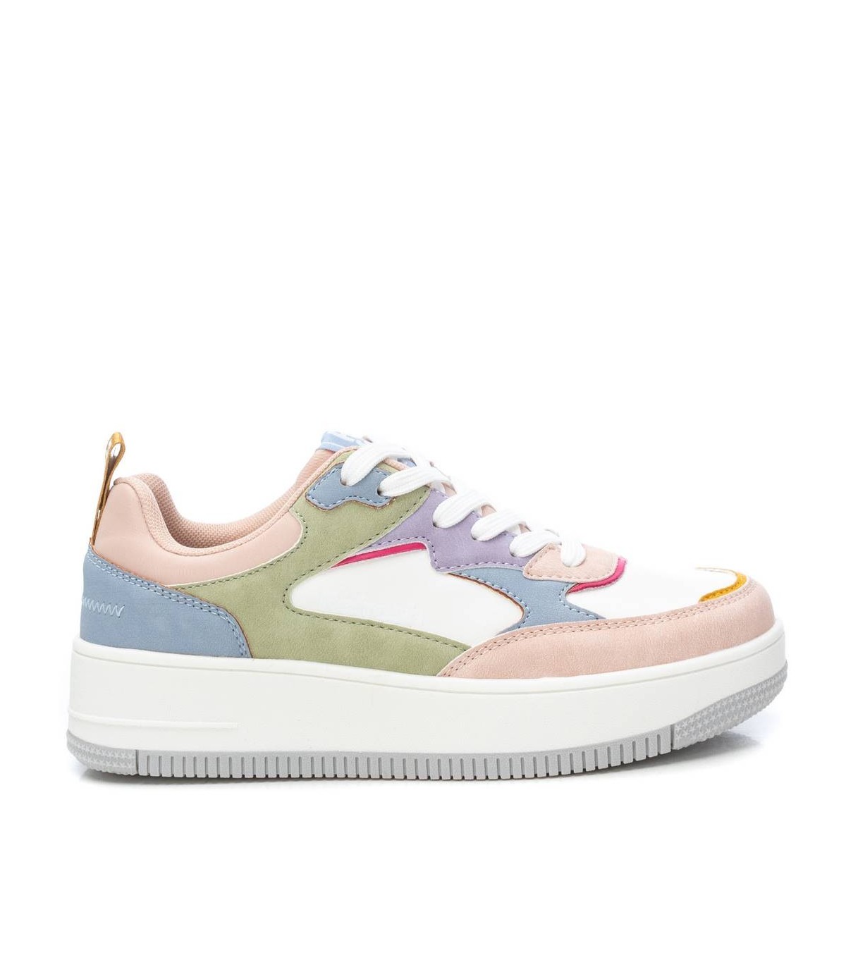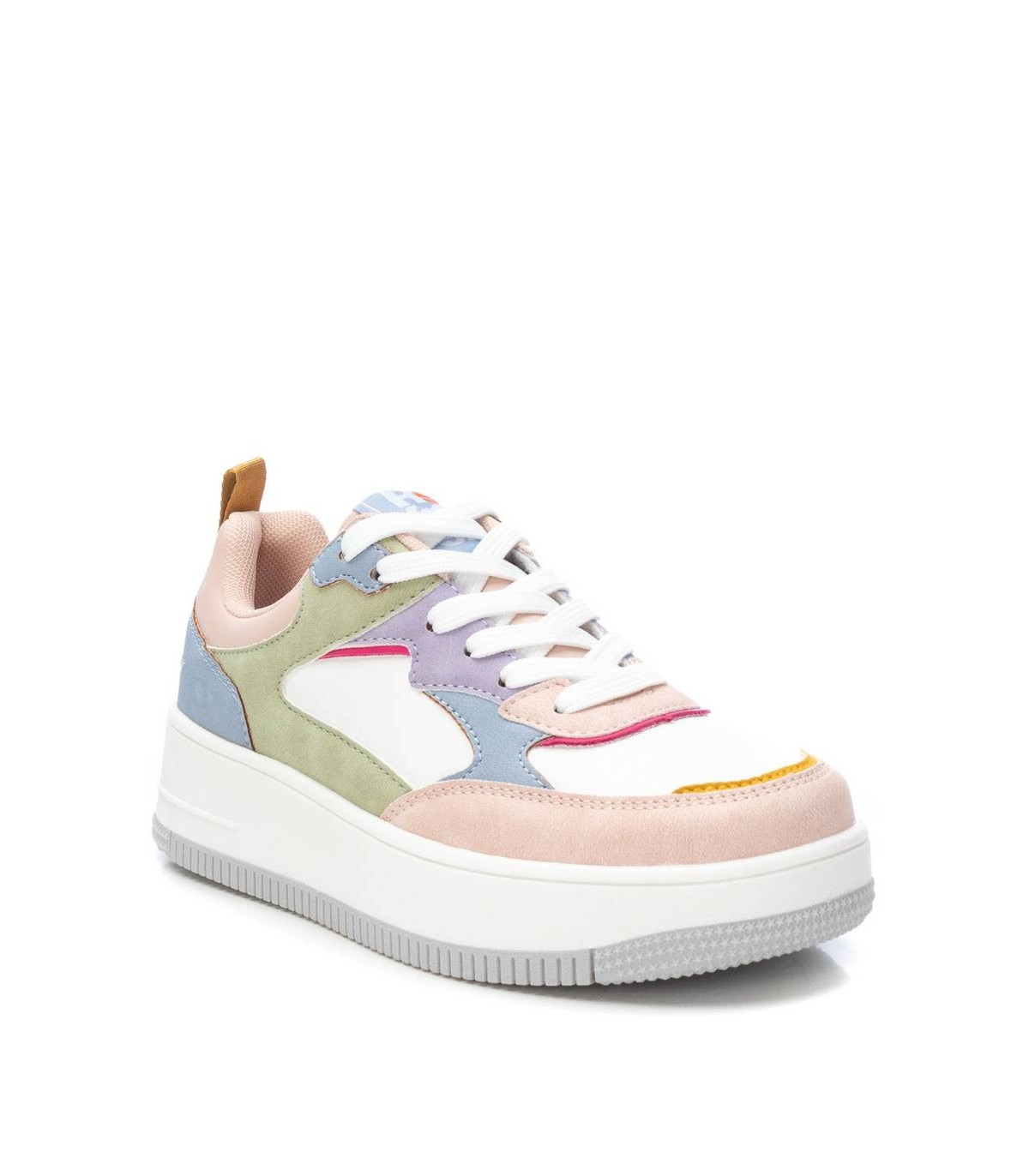 Zapatilla de mujer, de la marca Refresh. Fabricada en material que imita la piel. Cierre mediante cordones ajustables. Tirador trasero para facilitar la puesta. Con plantilla extraíble. Modelo multicolor estilo basket en tendencia esta temporada. Cómoda suela volumen de goma antideslizante. Este modelo ha obtenido el certificado vegano por la organización mundial PETA (Organización de los derechos de los animales).