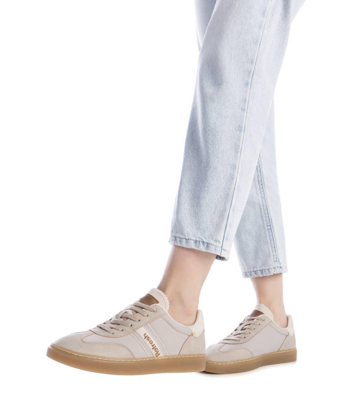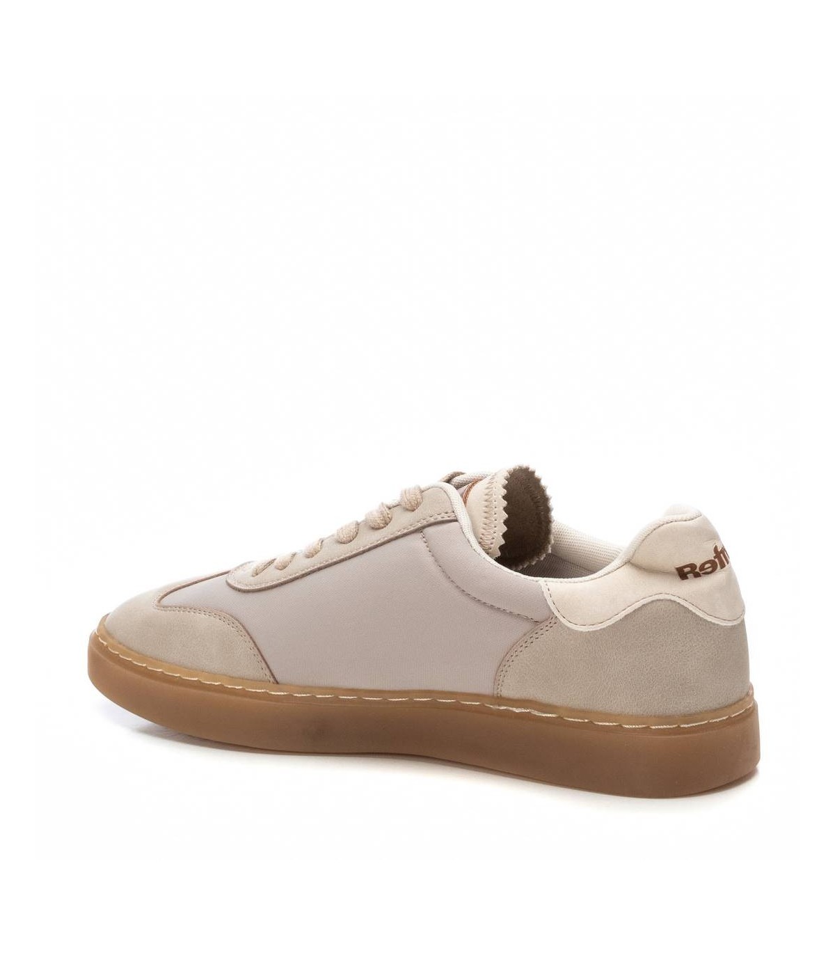 Zapatilla de mujer, de la marca Refresh. Fabricada combinando nylon de alta calidad y material que imita a la piel. Cierre mediante cordones regulables. Con plantilla extraíble. Con suela de goma antideslizante. Este modelo ha obtenido el certificado vegano por la organización mundial PETA (Organización de los derechos de los animales).