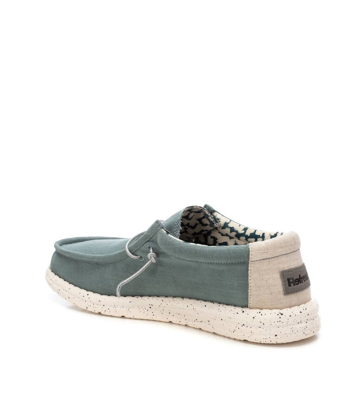 Zapatilla de la marca Refresh. Fabricada en lona con acabado lavado. Ajuste mediante cordones elásticos. Cómoda suela flexible y ligera de goma antideslizante. Con plantilla extraíble. Un modelo imprescindible esta temporada. Este modelo ha obtenido el certificado vegano por la organización mundial PETA (Organización de los derechos de los animales).