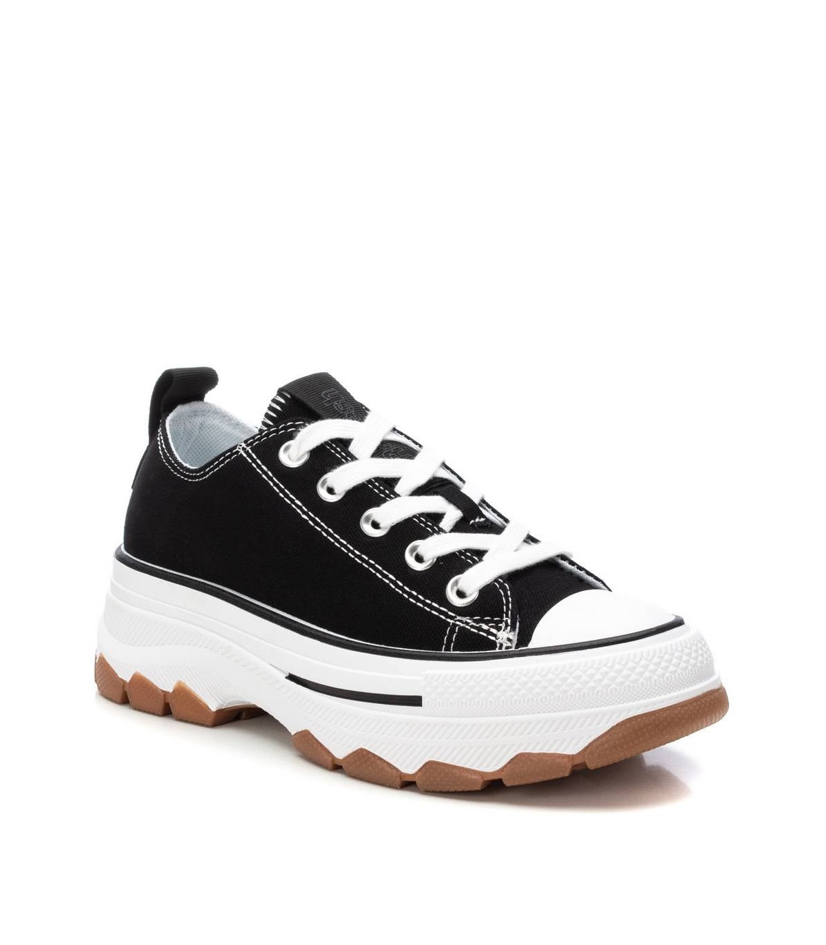 Zapatilla de mujer, de la marca Refresh. Fabricada en lona. Cierre mediante cordones ajustables. Piso volumen con suela dentada de goma antideslizante. Modelo en tendencia esta temporada. Este modelo ha obtenido el certificado vegano por la organización mundial PETA (Organización de los derechos de los animales).