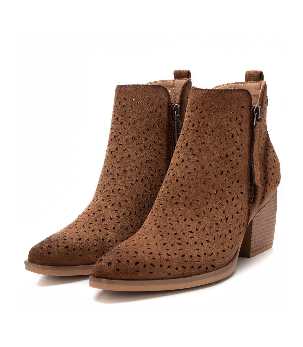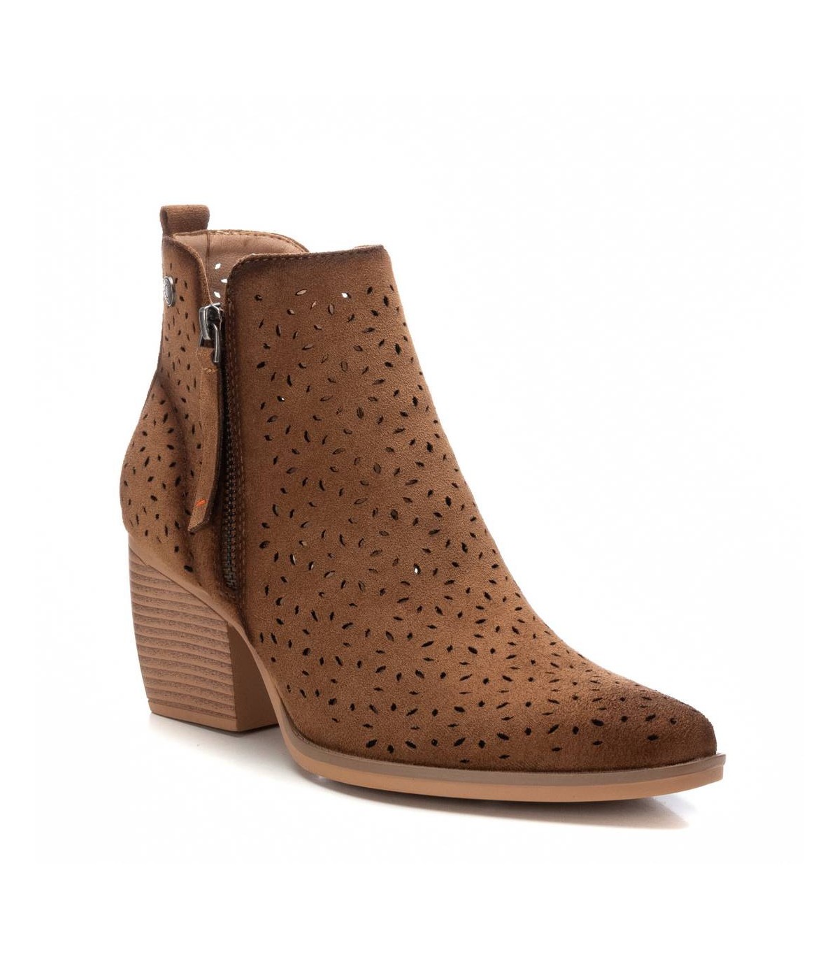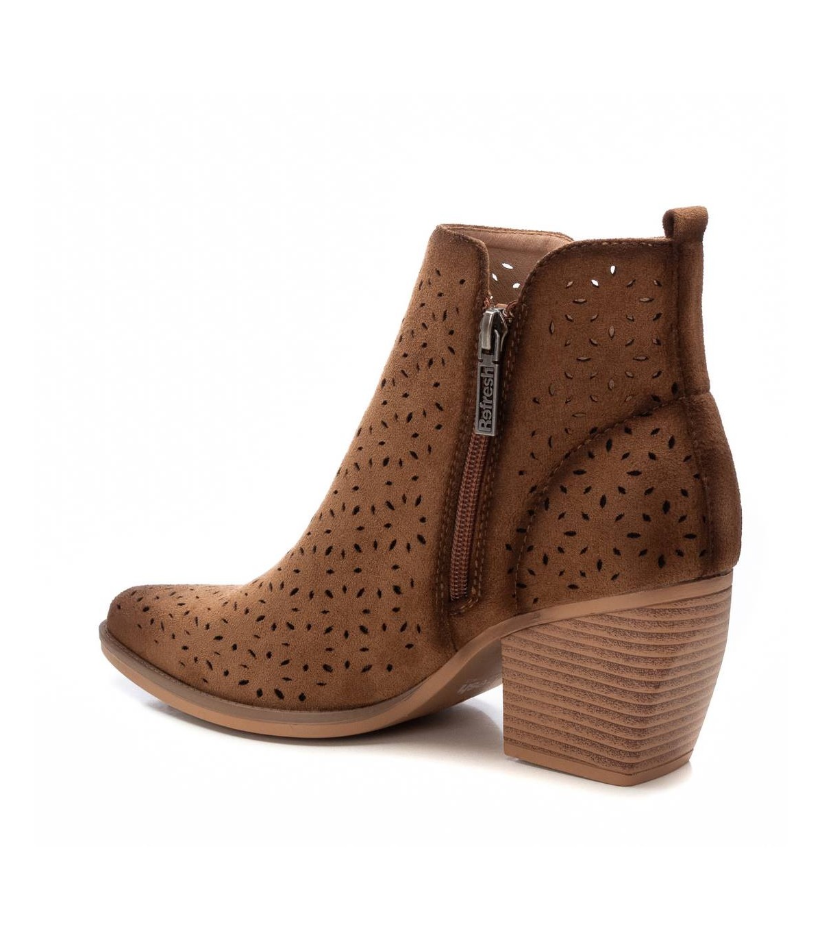 Botín de la marca Refresh. Fabricado en suave antelina troquelada con un suave difumino. Cremallera lateral decorativa. Cierre mediante cremallera interior. Botín con caña de 10 cm y un tacón de 6 cm, perfecta para completar tus mejores looks. Este modelo ha obtenido el certificado vegano por la organización mundial PETA (Organización de los derechos de los animales).