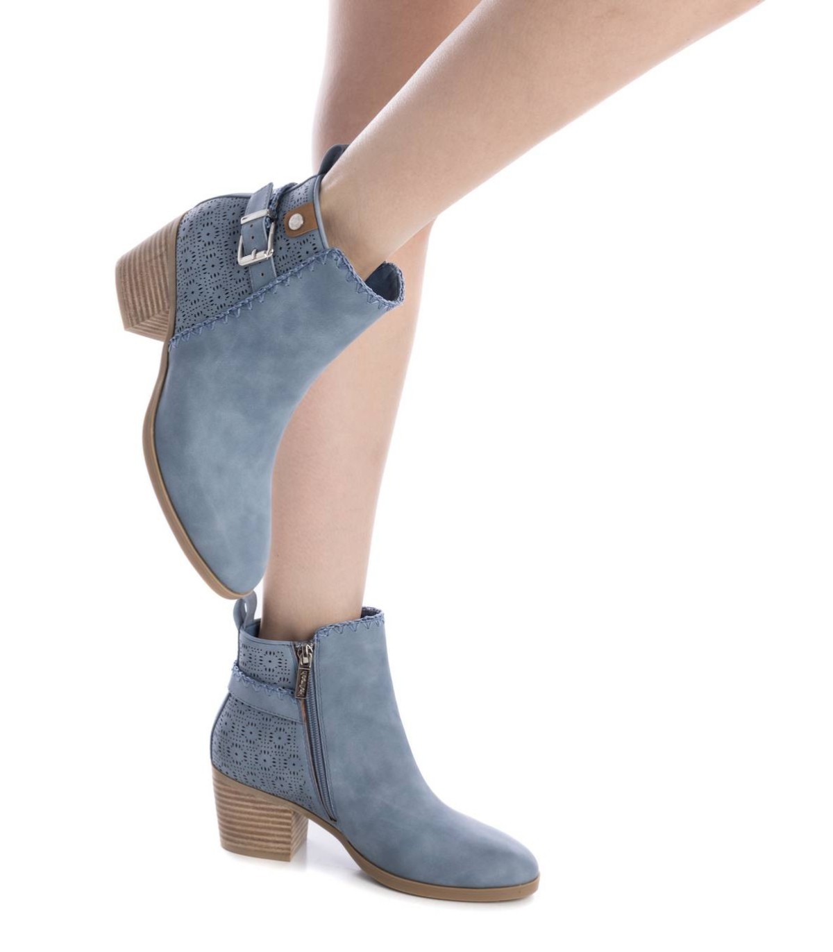 Botín de mujer, de la marca Refresh. Fabricado en material que imita la piel. Parte trasera troquelada. Correa con hebilla decorativa. Tirador trasero. Cierre mediante cremallera interior. Detalle de correa con hebilla decorativa. Tacón ancho de 5 cm. Suela antideslizante.