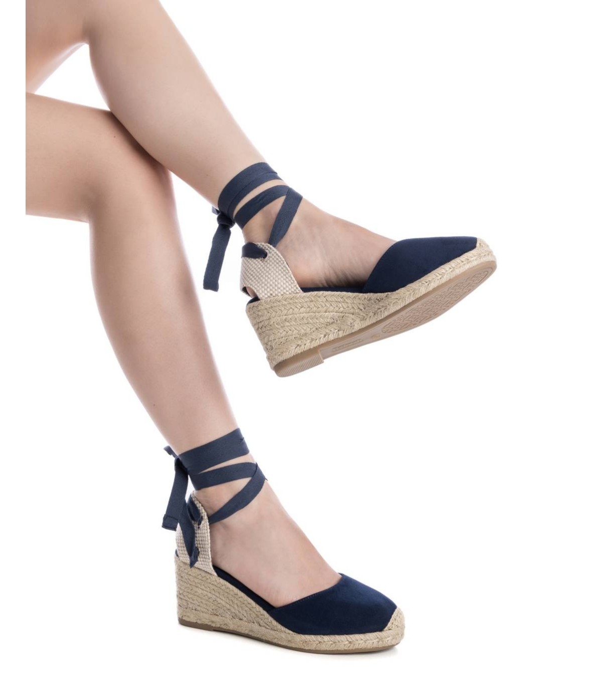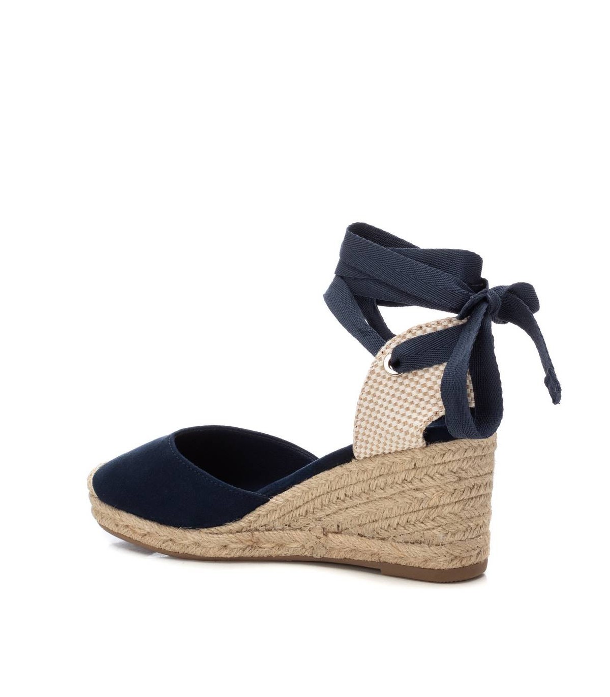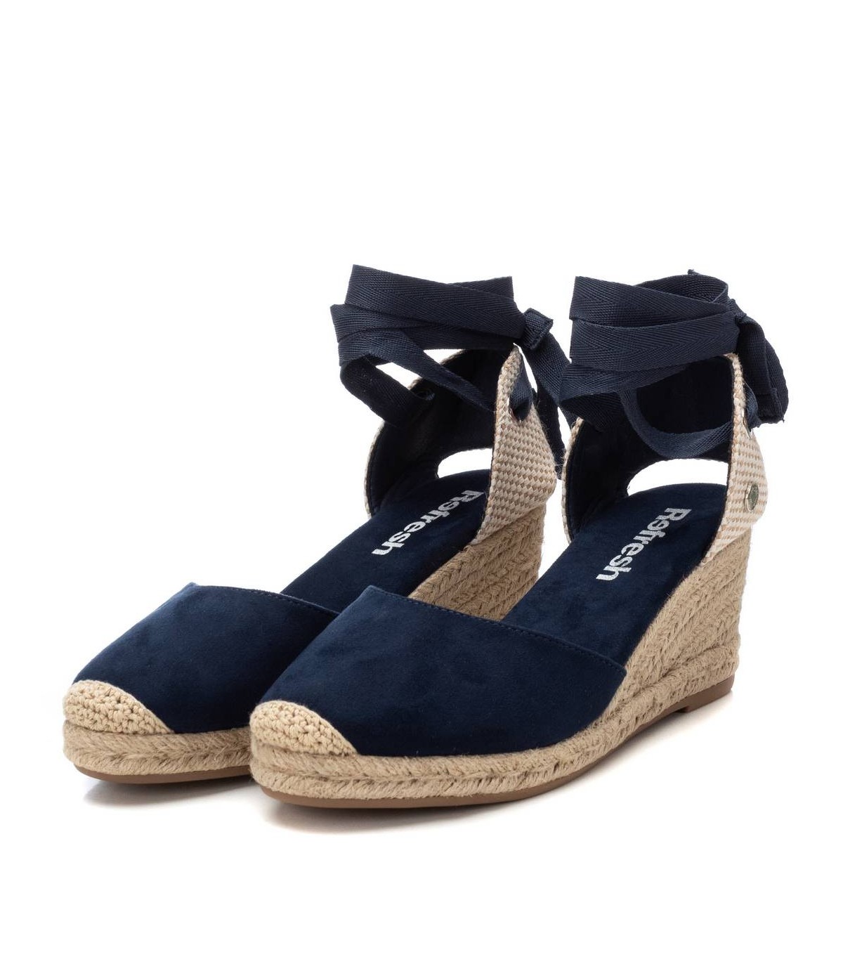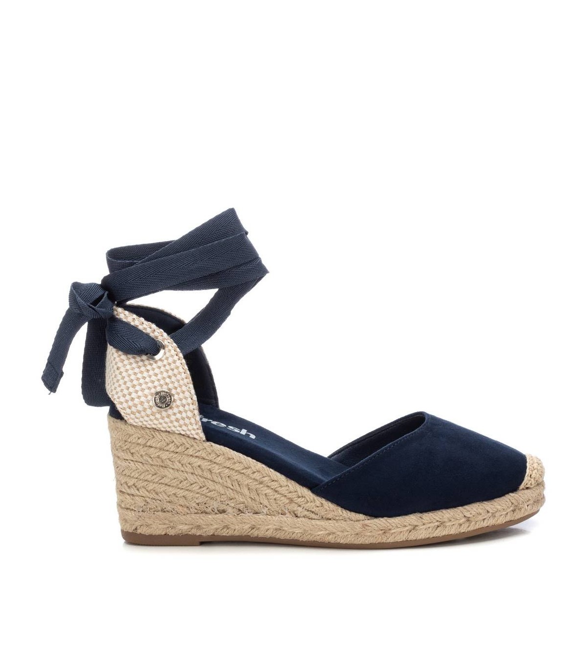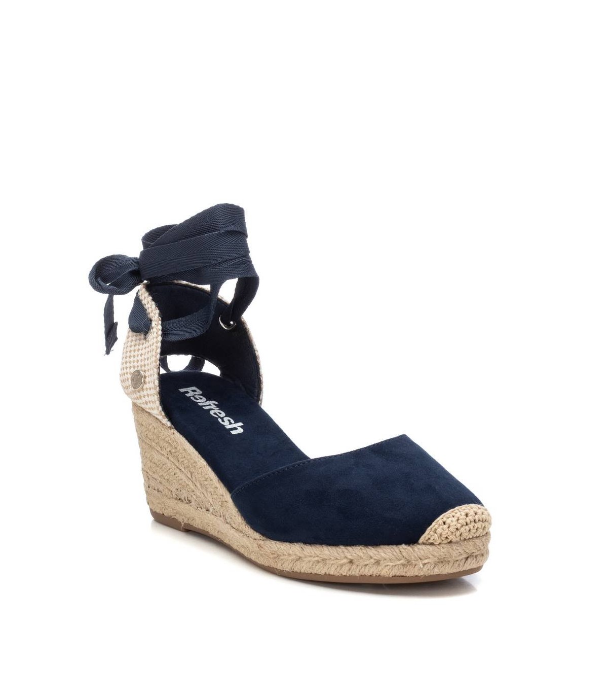 Valenciana de mujer, de la marca Refresh. Fabricada en antelina. Talón destalonado. Tiras para ajustar al tobillo. Cuña de 7 cm en yute. Suela de goma antideslizante. Este modelo ha obtenido el certificado vegano por la organización mundial PETA (Organización de los derechos de los animales).