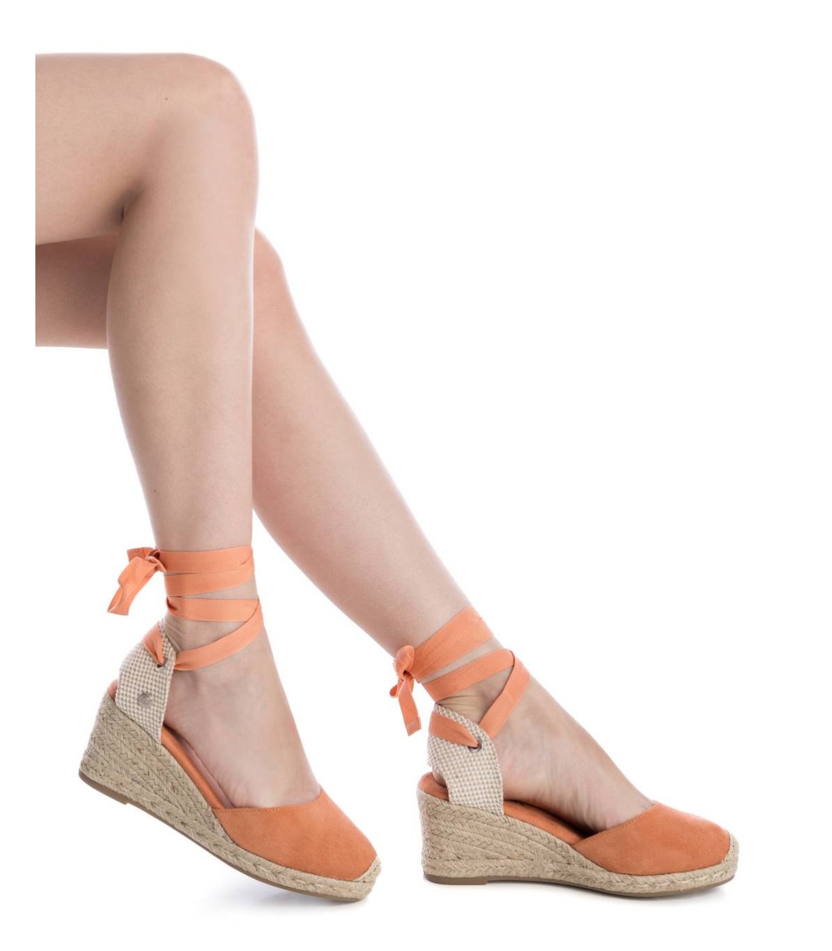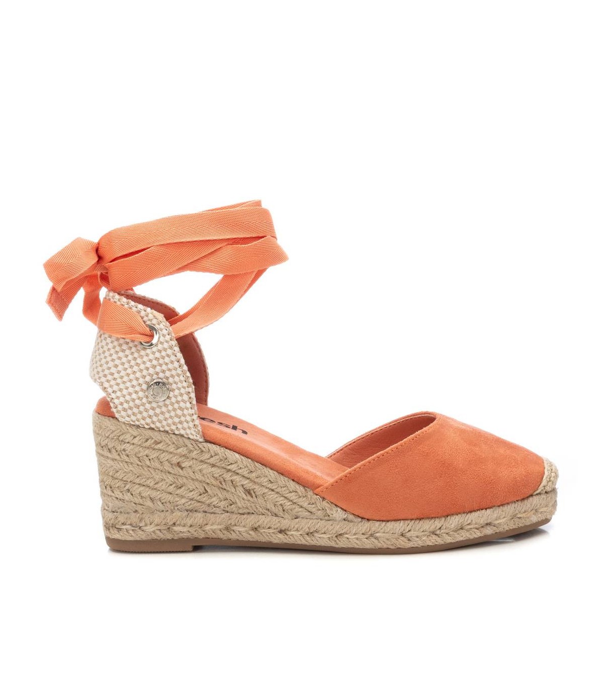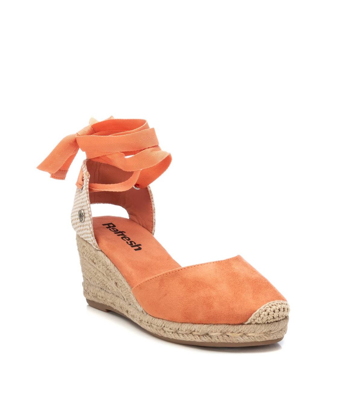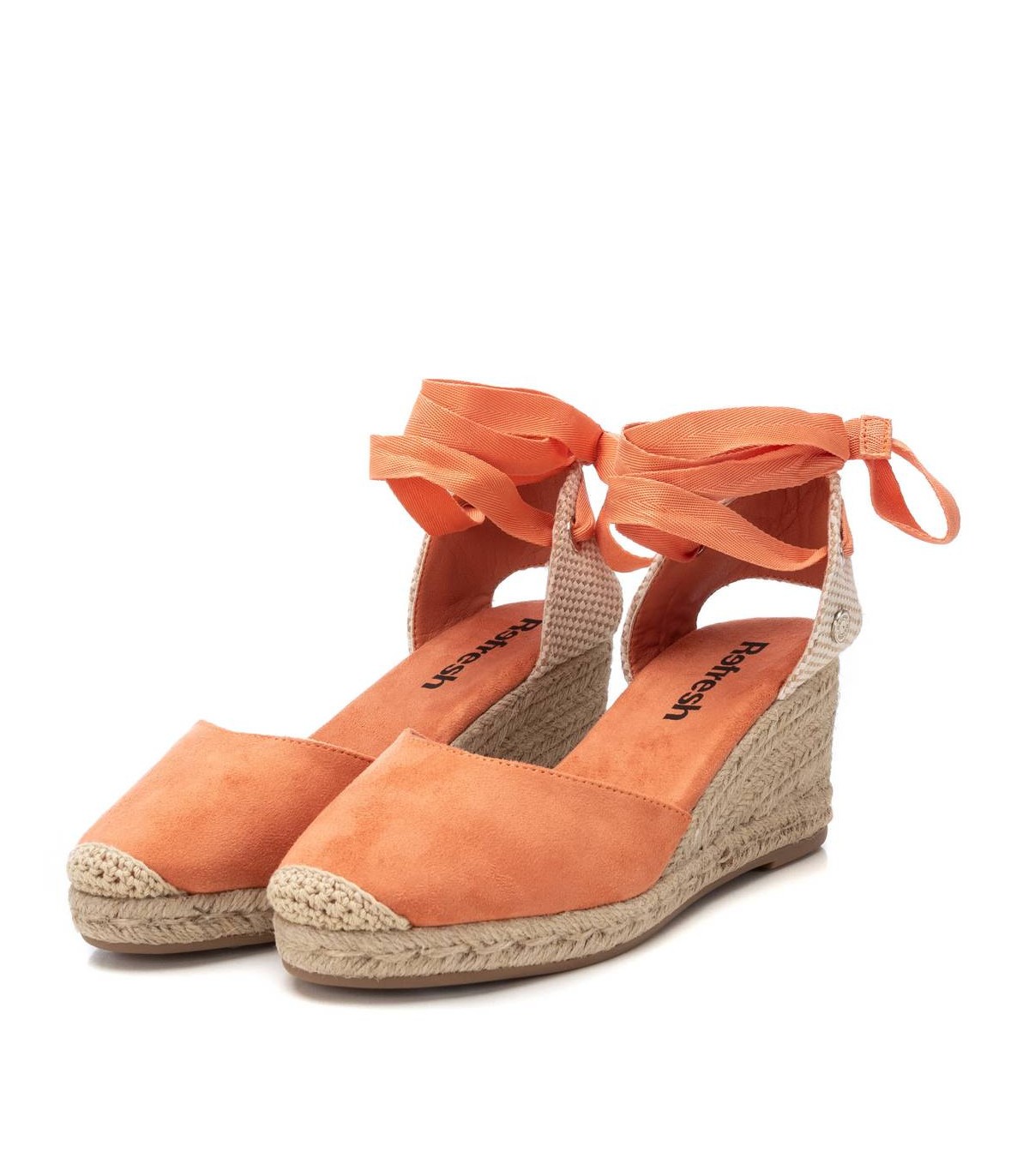 Valenciana de mujer, de la marca Refresh. Fabricada en antelina. Talón destalonado. Tiras para ajustar al tobillo. Cuña de 7 cm en yute. Suela de goma antideslizante. Este modelo ha obtenido el certificado vegano por la organización mundial PETA (Organización de los derechos de los animales).