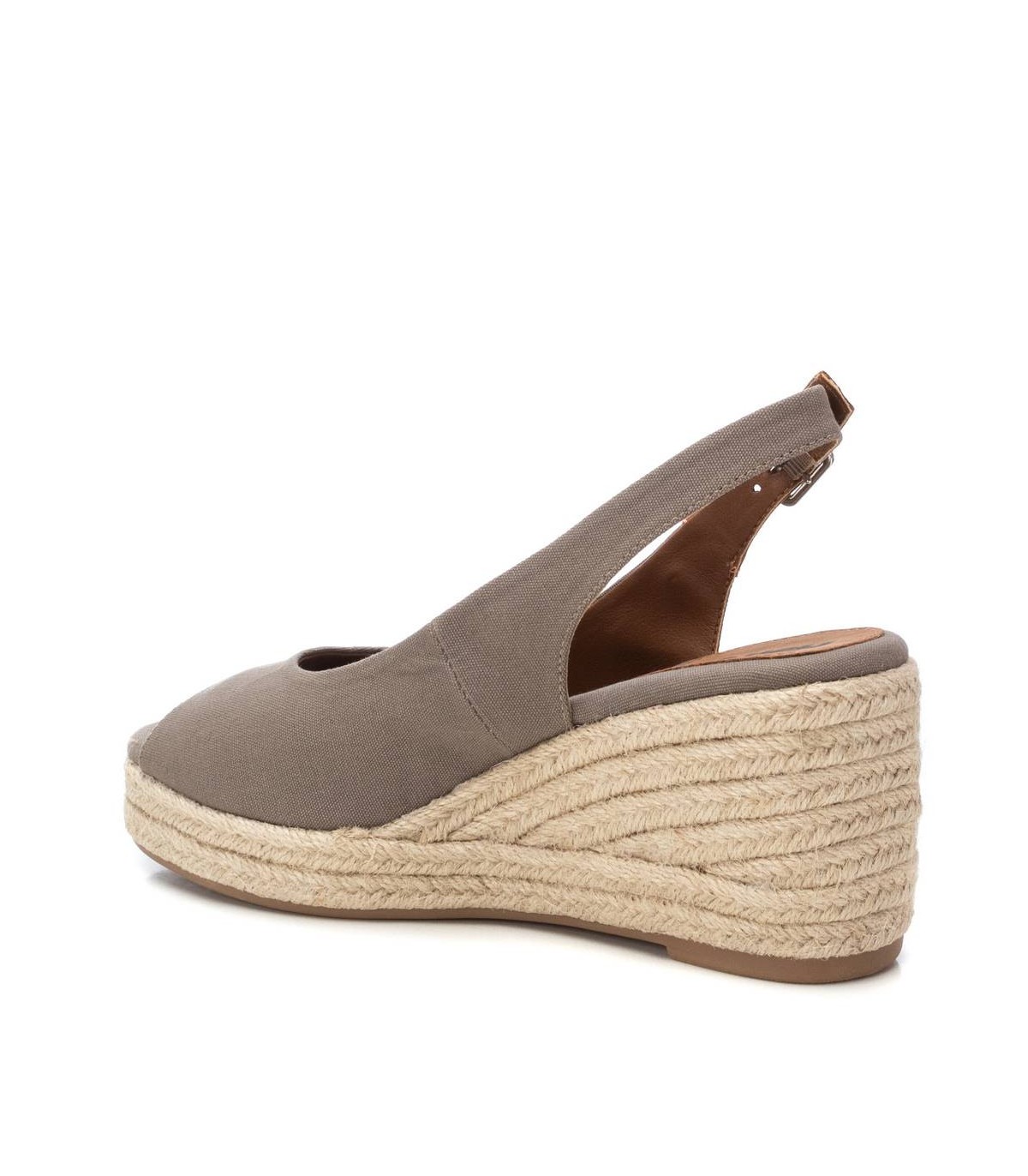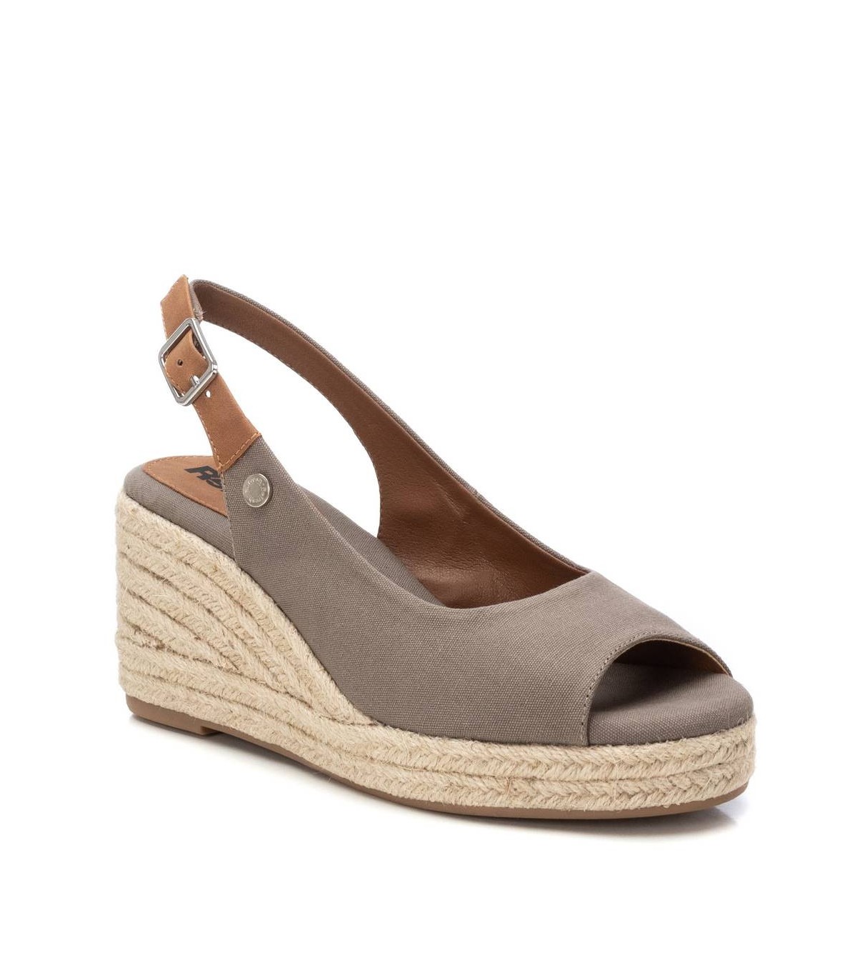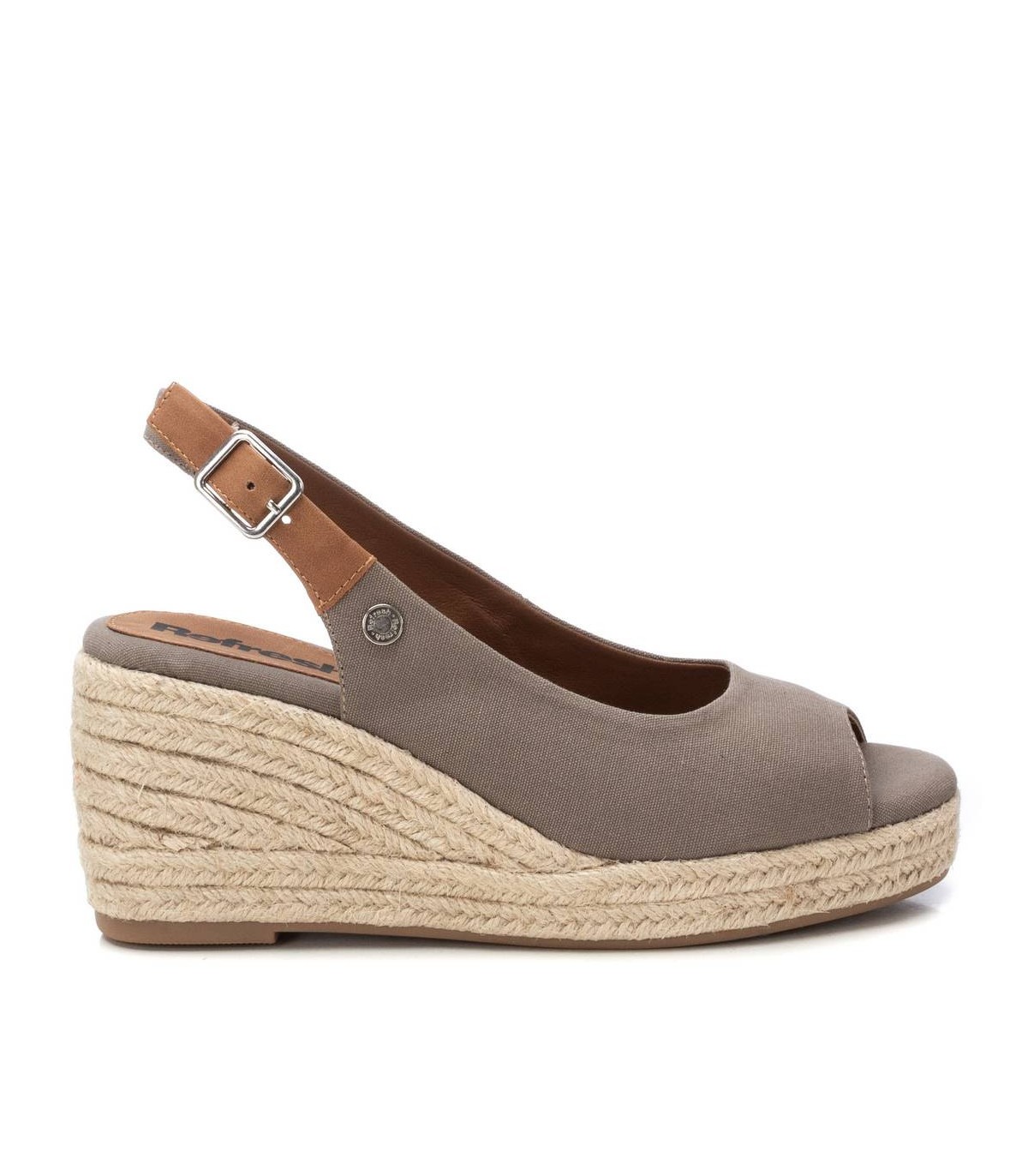 Sandalia de mujer, de la marca Refresh. Fabricada en lona. Modelo con tira en el talón con hebilla. Cuña de 8 cm de yute con suela de goma antideslizante. Un clásico que no puede faltar en el armario de verano. Este modelo ha obtenido el certificado vegano por la organización mundial PETA (Organización de los derechos de los animales).