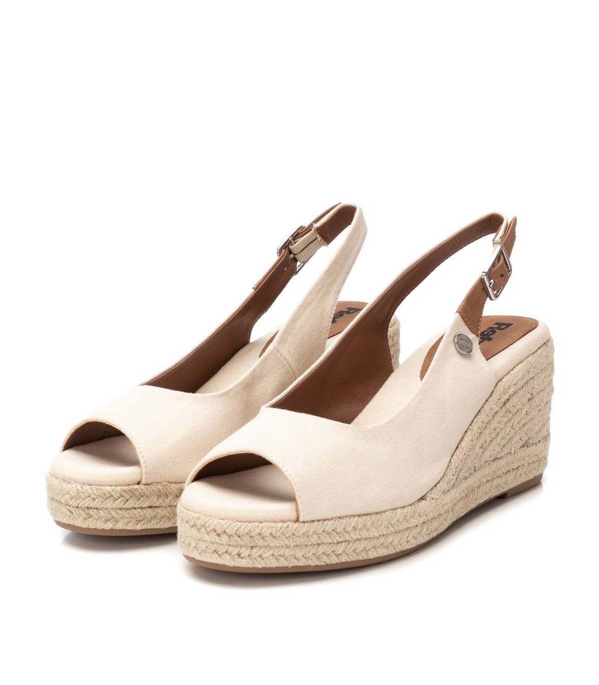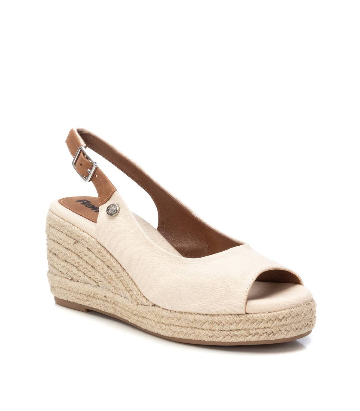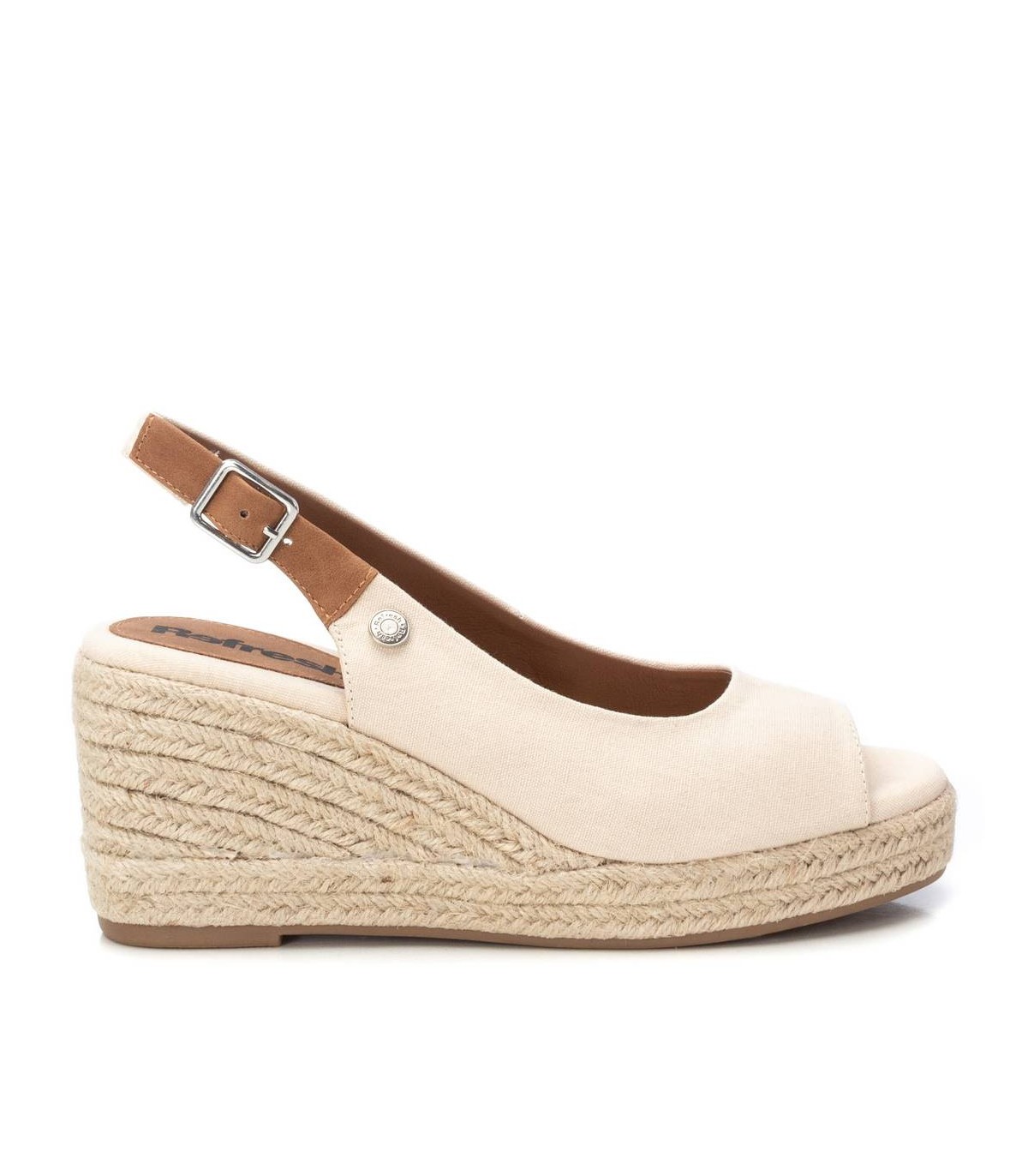 Sandalia de mujer, de la marca Refresh. Fabricada en lona. Modelo con tira en el talón con hebilla. Cuña de 8 cm de yute con suela de goma antideslizante. Un clásico que no puede faltar en el armario de verano. Este modelo ha obtenido el certificado vegano por la organización mundial PETA (Organización de los derechos de los animales).