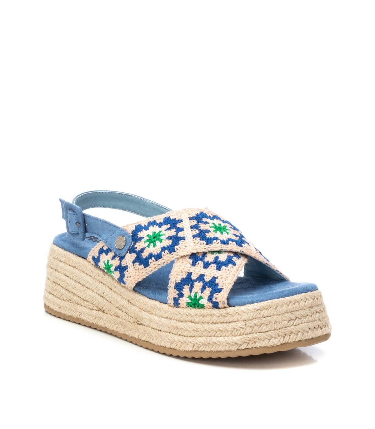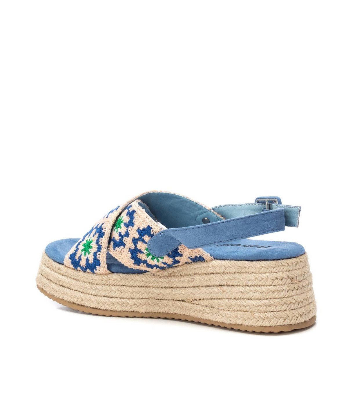 Sandalia de mujer, de la marca Refresh. Fabricada en crochet. Doble pala cruza con pulsera en antelina para ajustar al tobillo. Cuña de 6 cm forrada en yute. Suela de goma antideslizante. Un modelo que combinará a la perfección con tus looks de esta temporada. Este modelo ha obtenido el certificado vegano por la organización mundial PETA (Organización de los derechos de los animales).