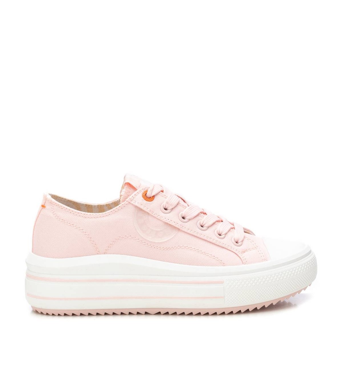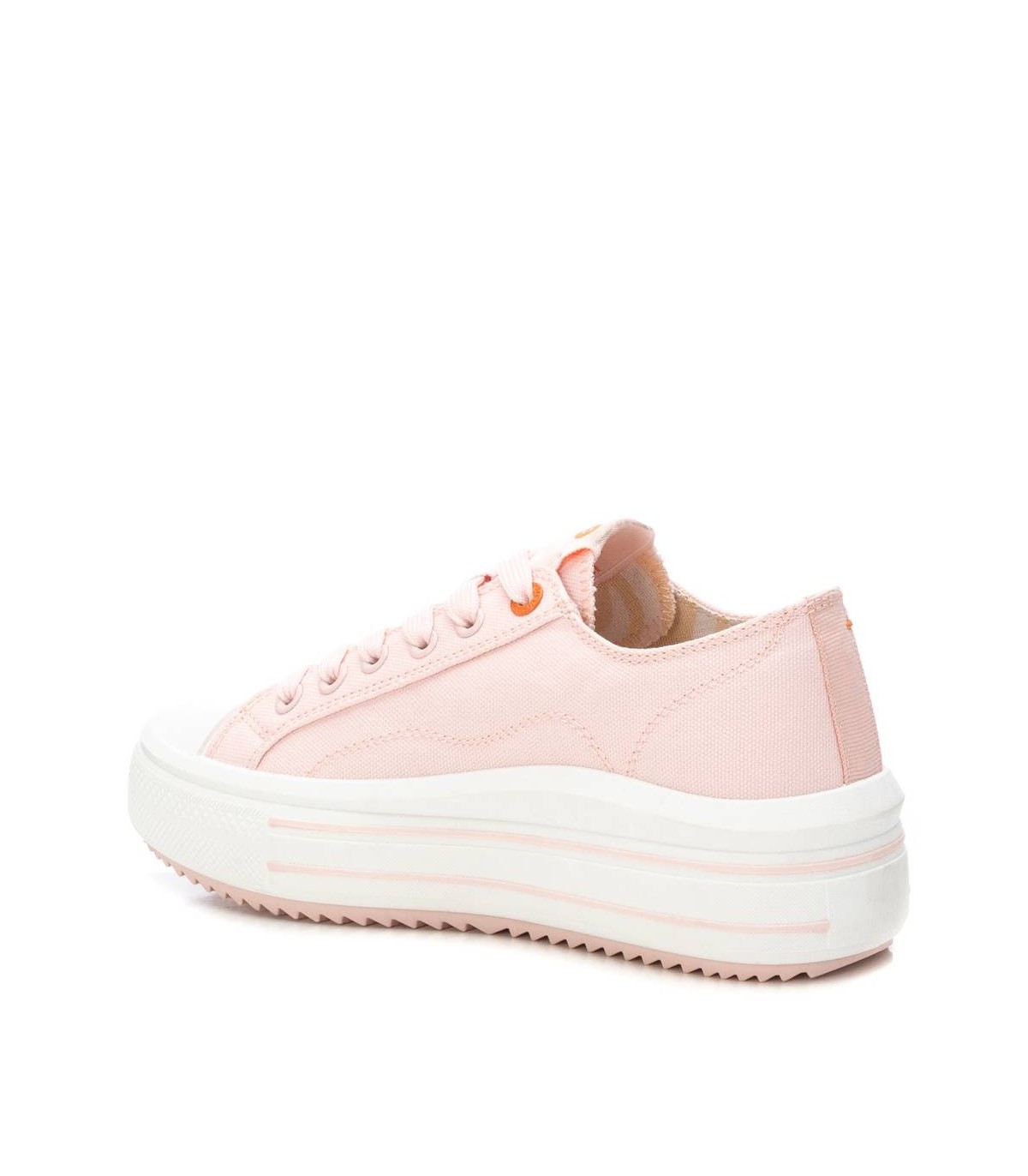 Zapatilla de mujer, de la marca Refresh. Fabricada en lona. Forro decorativo con animal print. Primer ojete con el color representativo de la marca. Cierre mediante cordones. Piso volumen con suela canalada de goma antideslizante. Con plantilla extraíble. Este modelo ha obtenido el certificado vegano por la organización mundial PETA (Organización de los derechos de los animales).