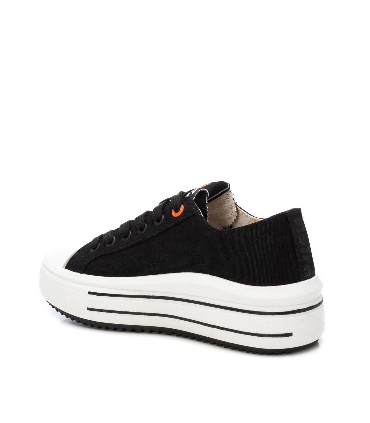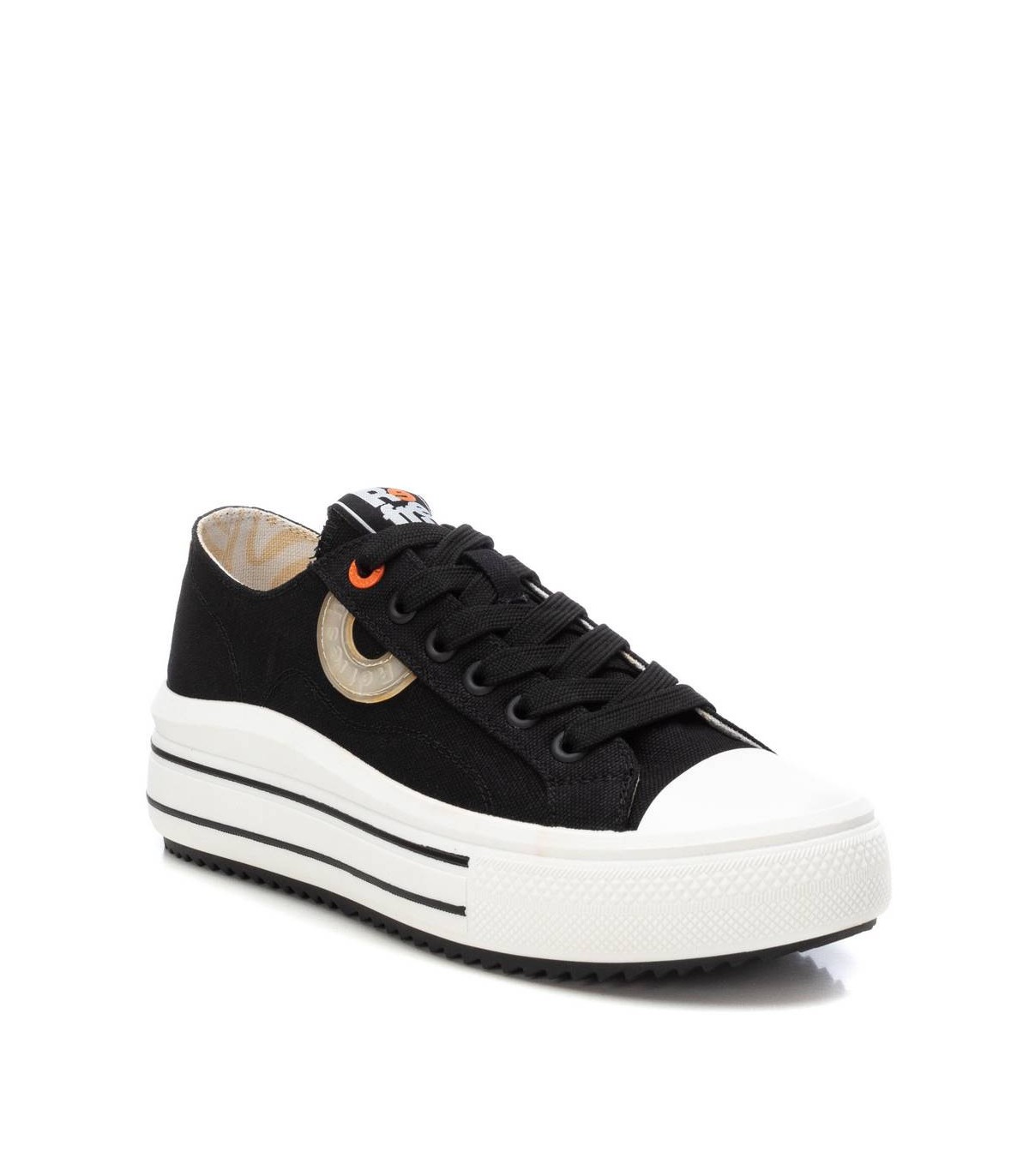 Zapatilla de mujer, de la marca Refresh. Fabricada en lona. Forro decorativo con animal print. Primer ojete con el color representativo de la marca. Cierre mediante cordones. Piso volumen con suela canalada de goma antideslizante. Con plantilla extraíble. Este modelo ha obtenido el certificado vegano por la organización mundial PETA (Organización de los derechos de los animales).