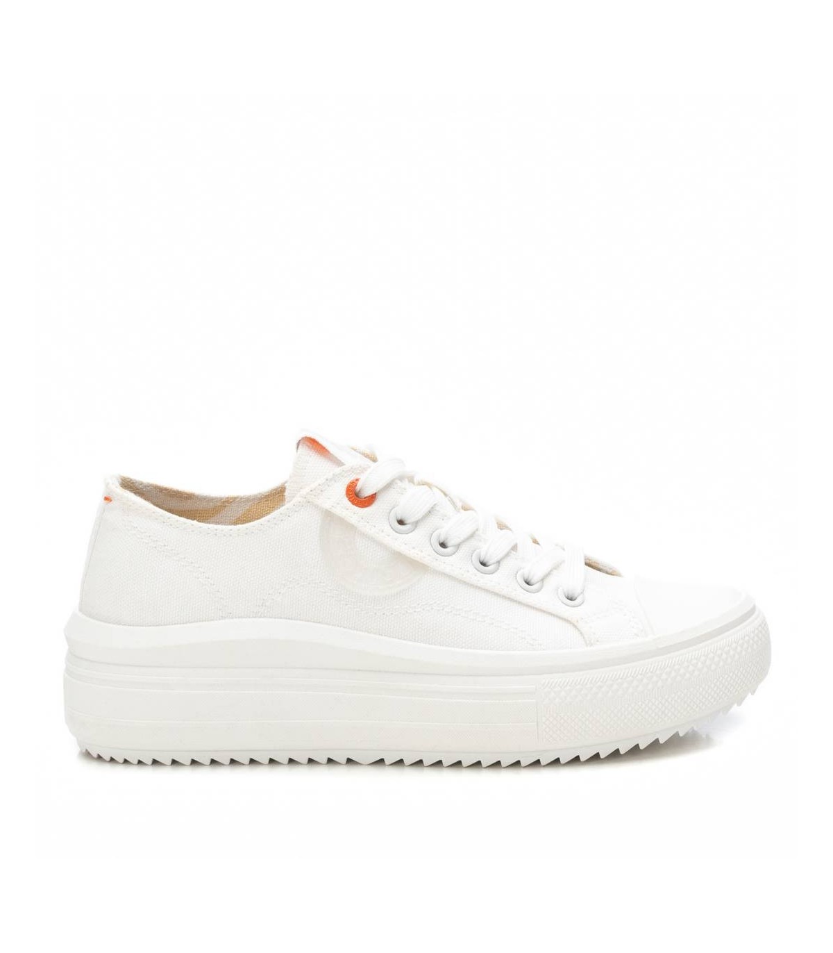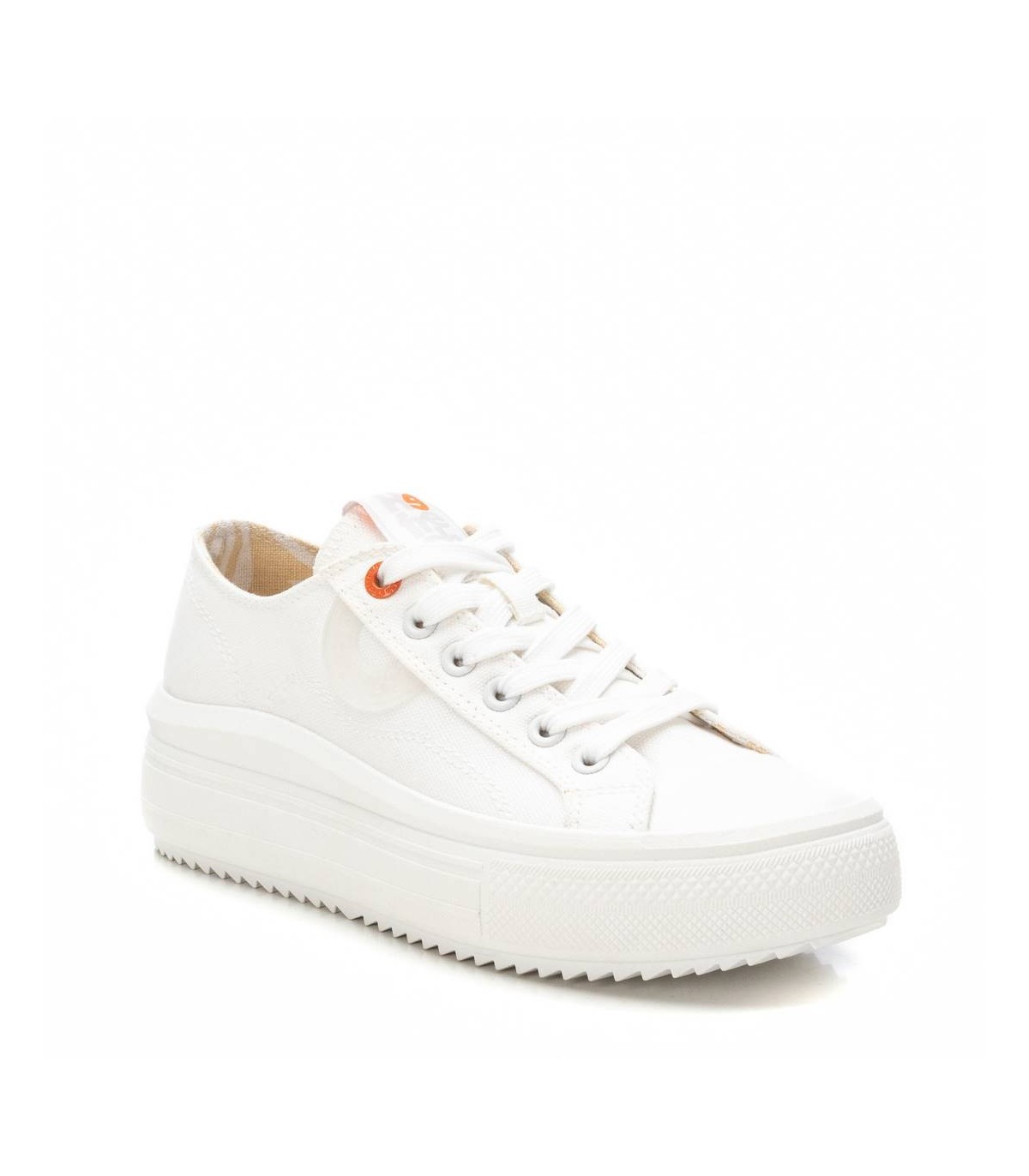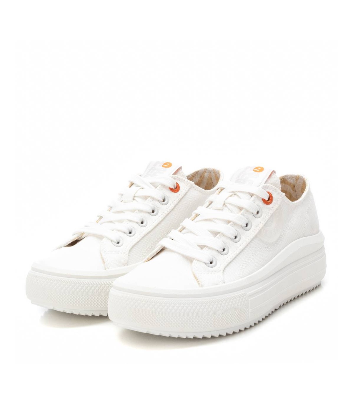 Zapatilla de mujer, de la marca Refresh. Fabricada en lona. Forro decorativo con animal print. Primer ojete con el color representativo de la marca. Cierre mediante cordones. Piso volumen con suela canalada de goma antideslizante. Con plantilla extraíble. Este modelo ha obtenido el certificado vegano por la organización mundial PETA (Organización de los derechos de los animales).
