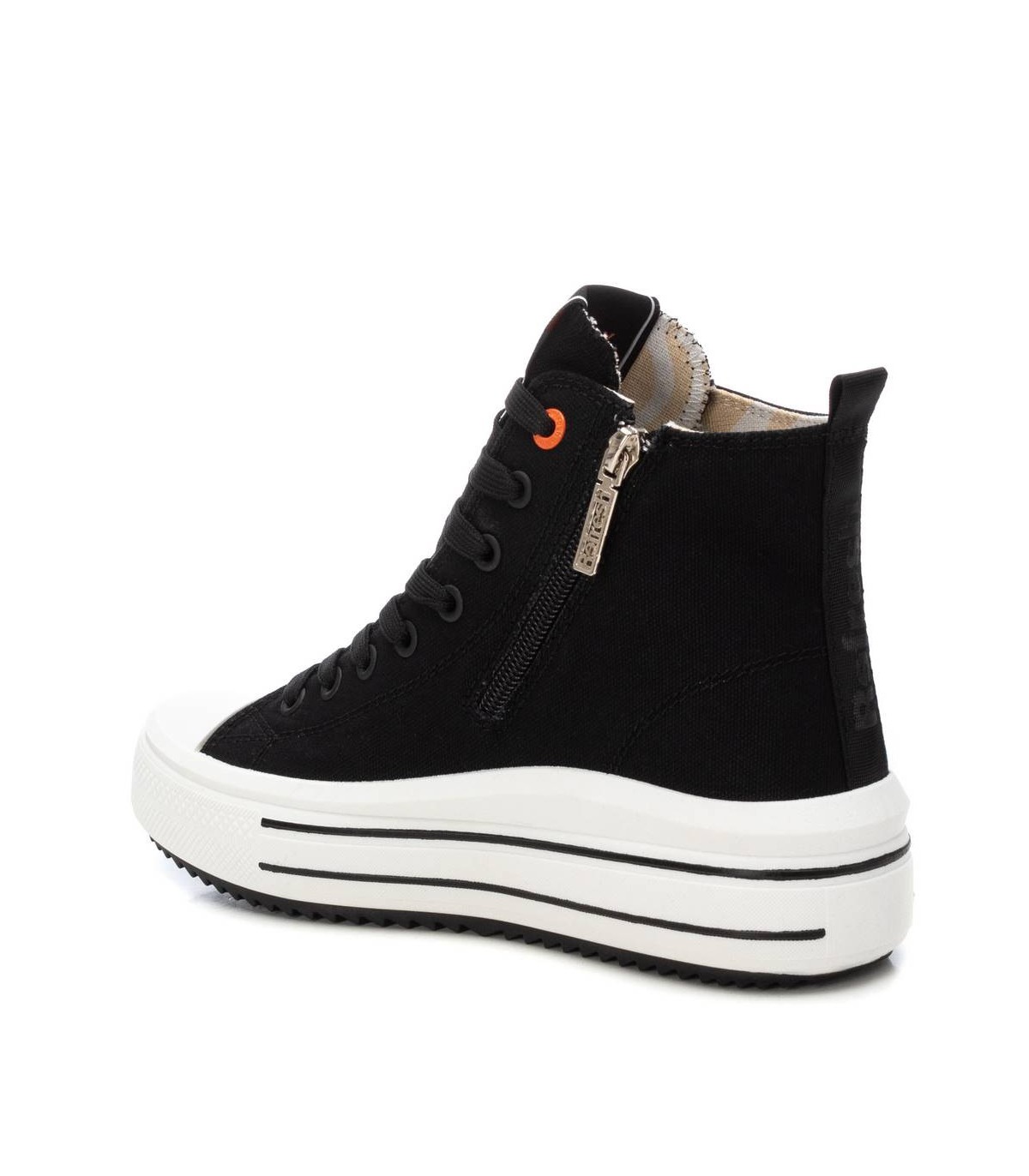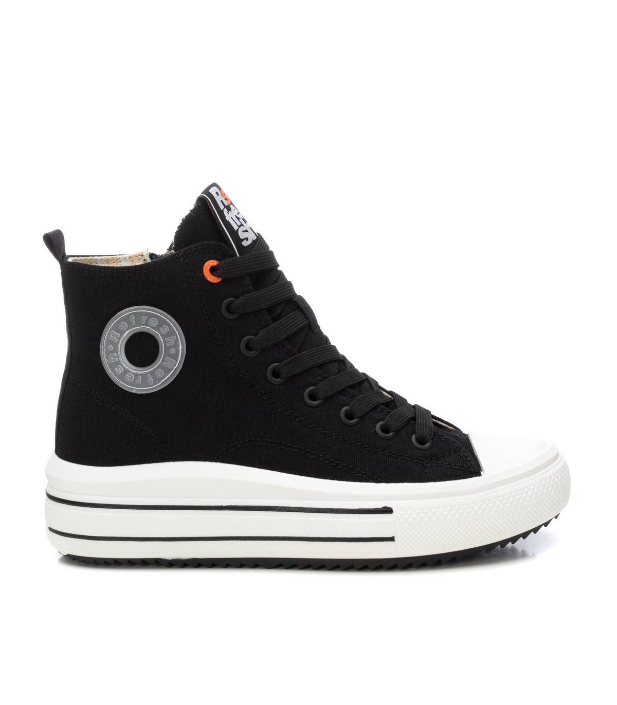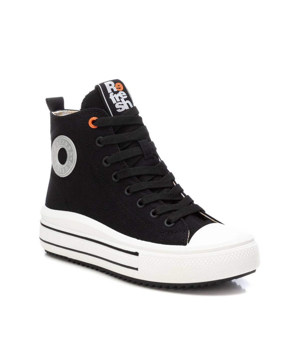 Zapatilla abotinada marca Refresh. Fabricada en lona. Cierre mediante cremallera interior con cordones regulables. Tirador trasero para facilitar la puesta. Suela volumen de goma antideslizante. Un básico que no puede faltar esta temporada. Con plantilla extraíble. Este modelo ha obtenido el certificado vegano por la organización mundial PETA (Organización de los derechos de los animales).